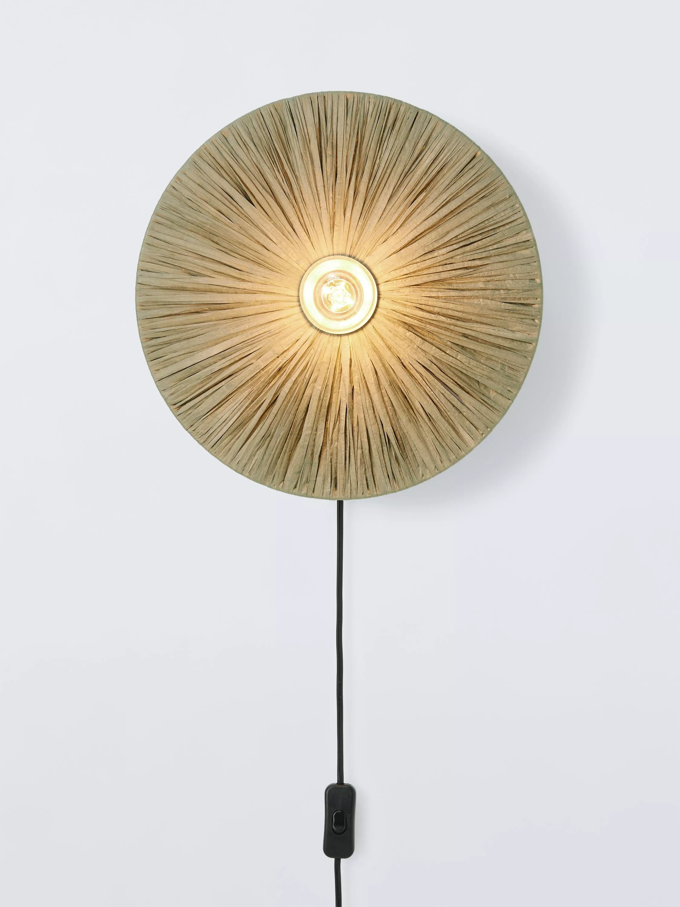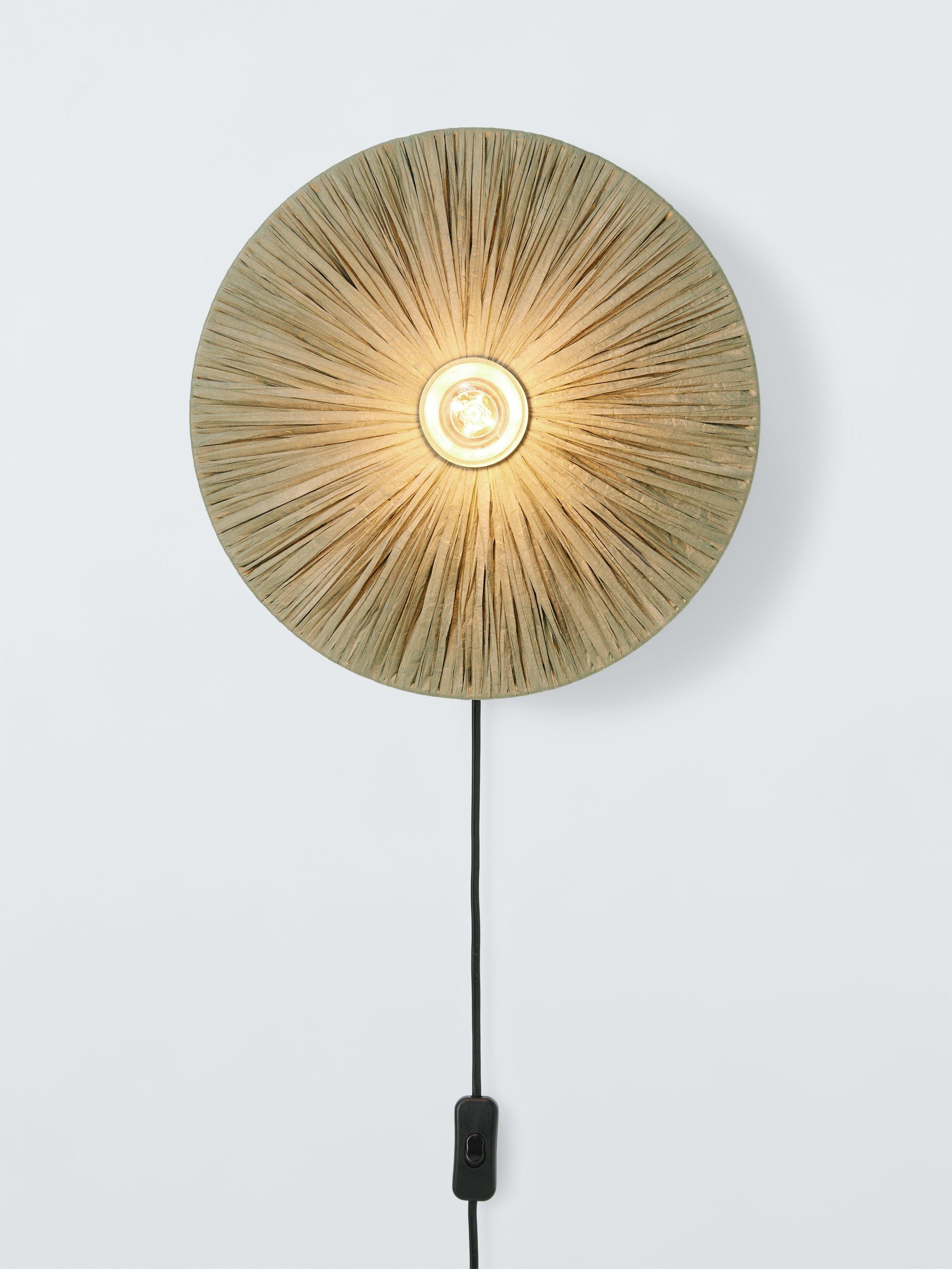 This wall-mounted plug-in light doesn't need to be wired in, so it's ideal for making a statement without the fuss. The large handcrafted raffia shade is guaranteed to be an eye-catching addition to your home and there is an on/off switch located on the cable for easy use.