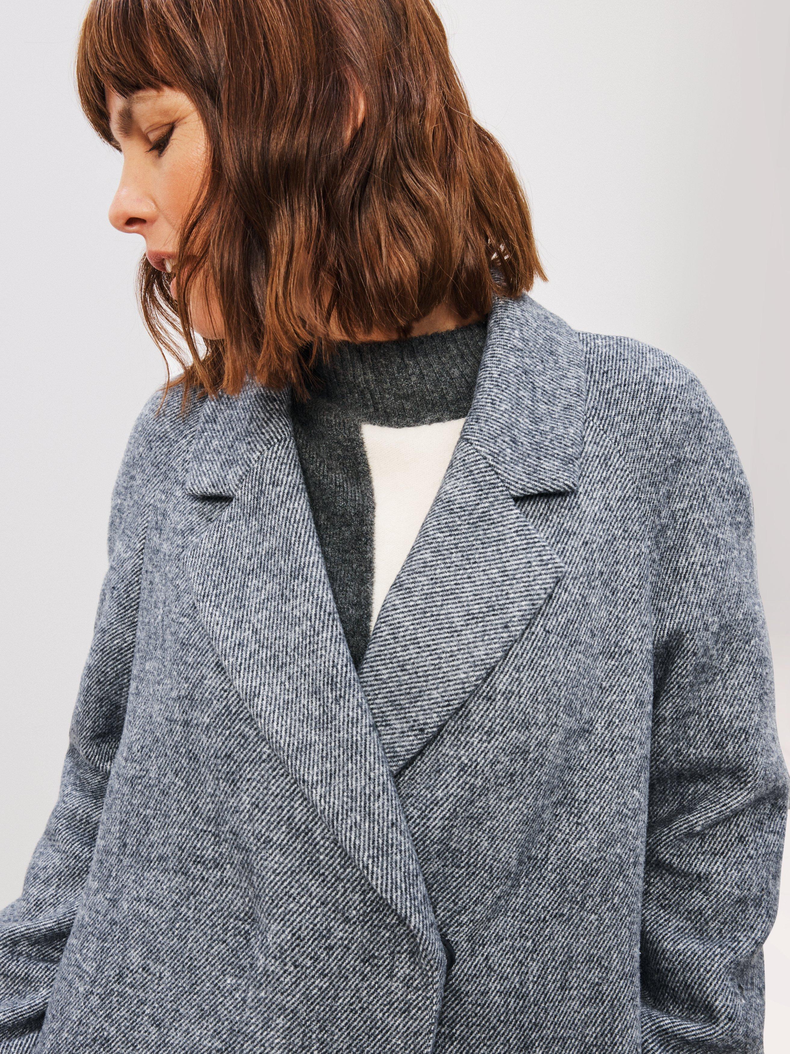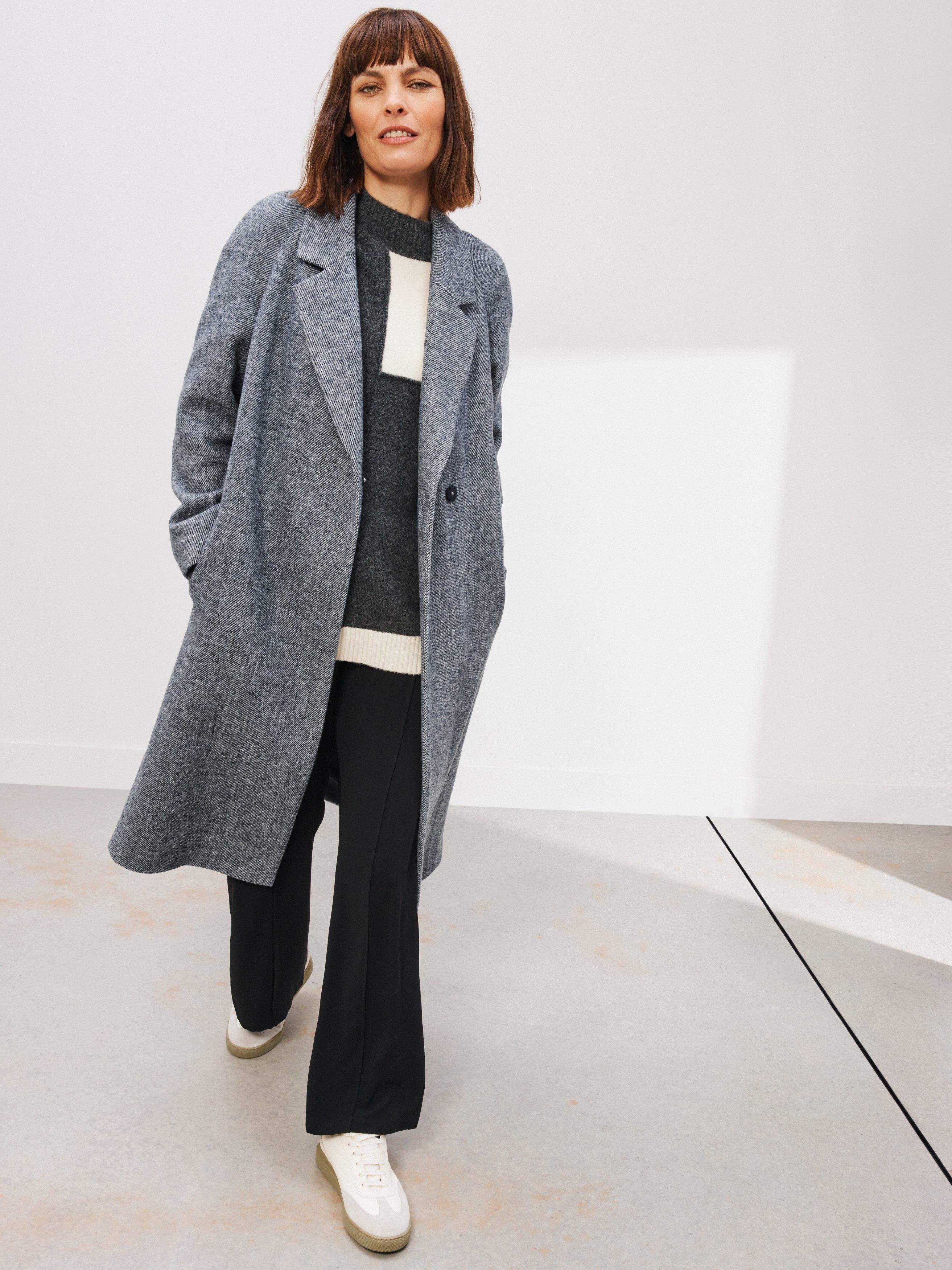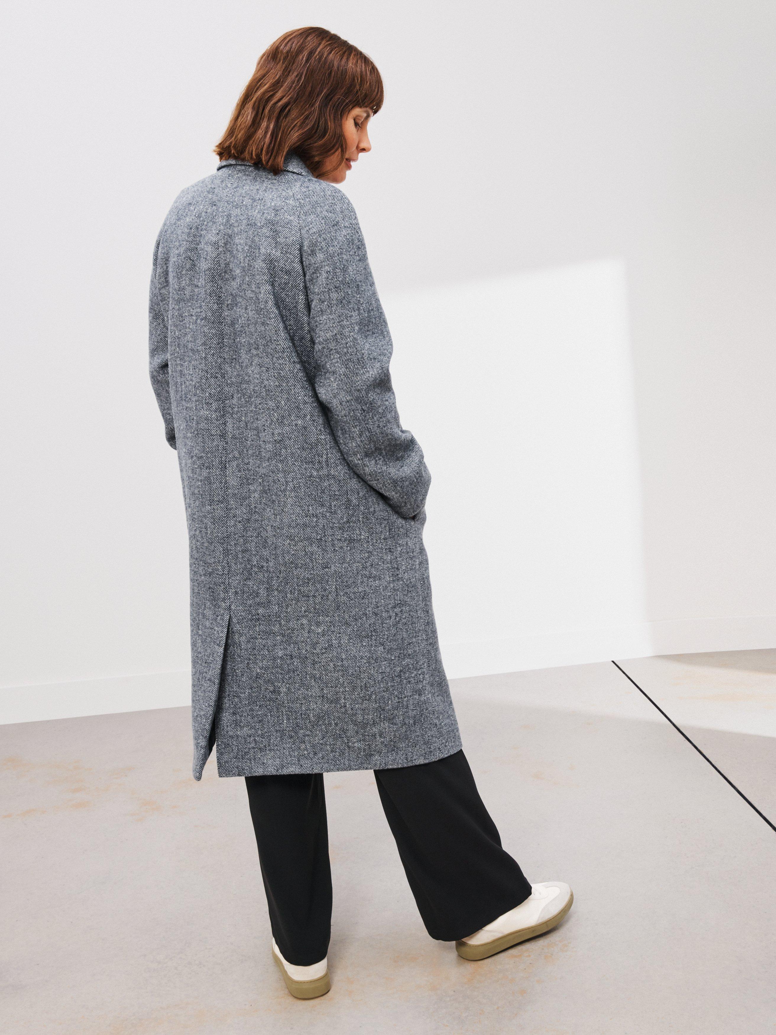Everyone needs a sweeping long coat for extra coverage through autumn and into the winter. Modern at heart, this coat features a buttonless front for a clean finish and is designed with a neat collar and raglan sleeve framing. Ideal for wintery commutes to coffee shop dashes and everything in between.
