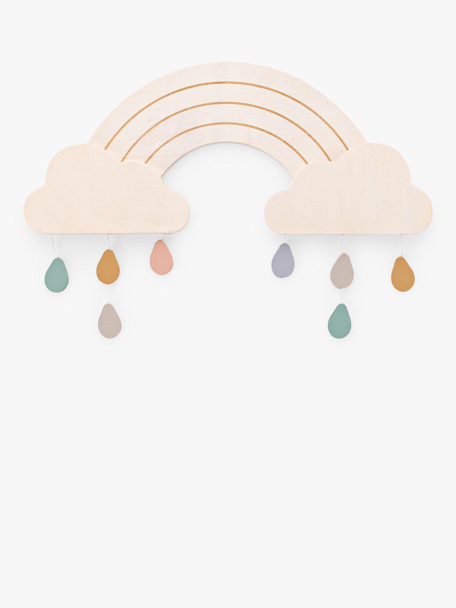 Add that extra special touch to your baby's nursery with this wall hanging from our collection. Made from plywood, the simple design features a rainbow emerging from two clouds that rains drops of colour. Simply hang the plaque on a wall in your baby's room to add an instant uplifting touch.