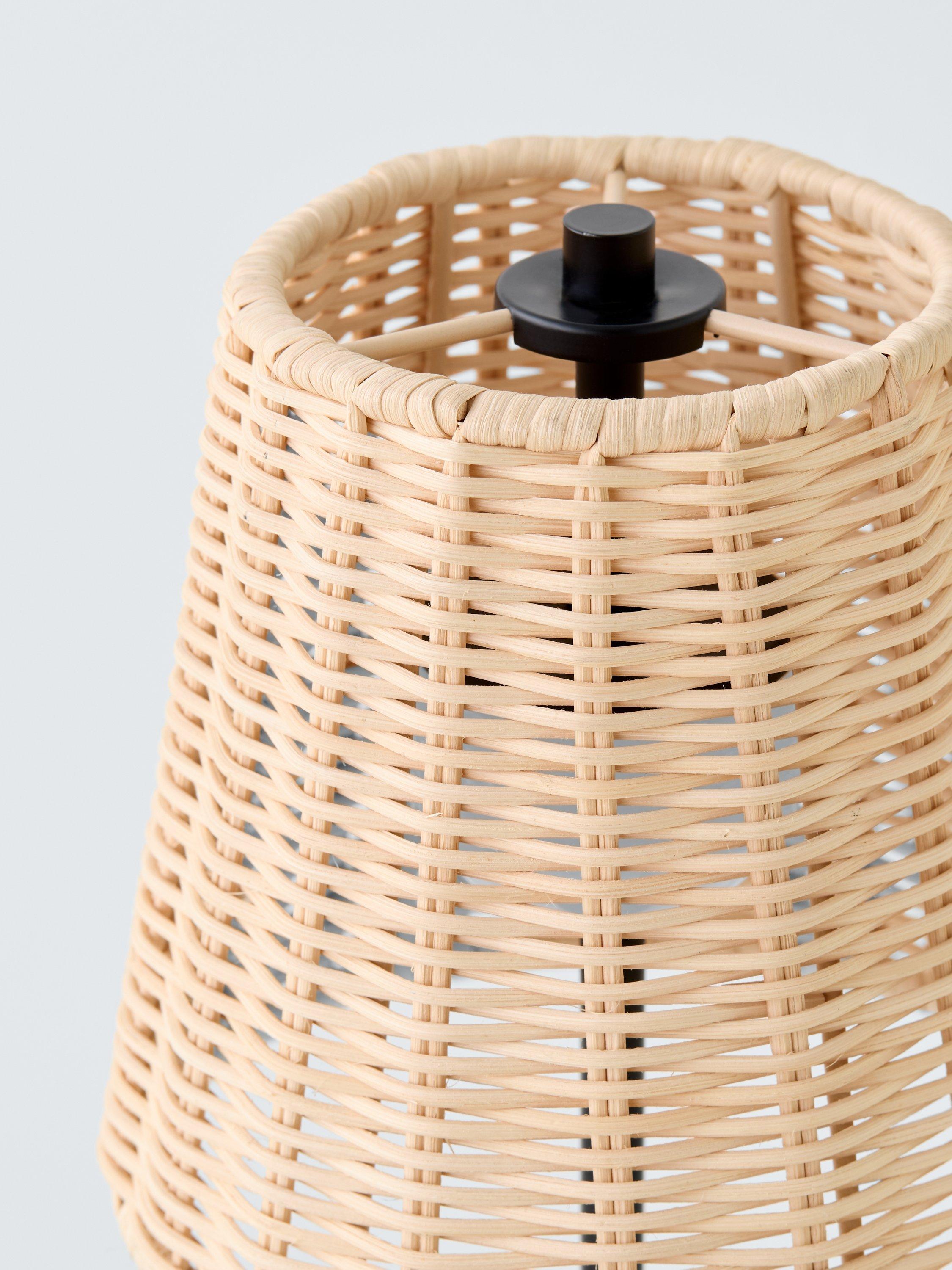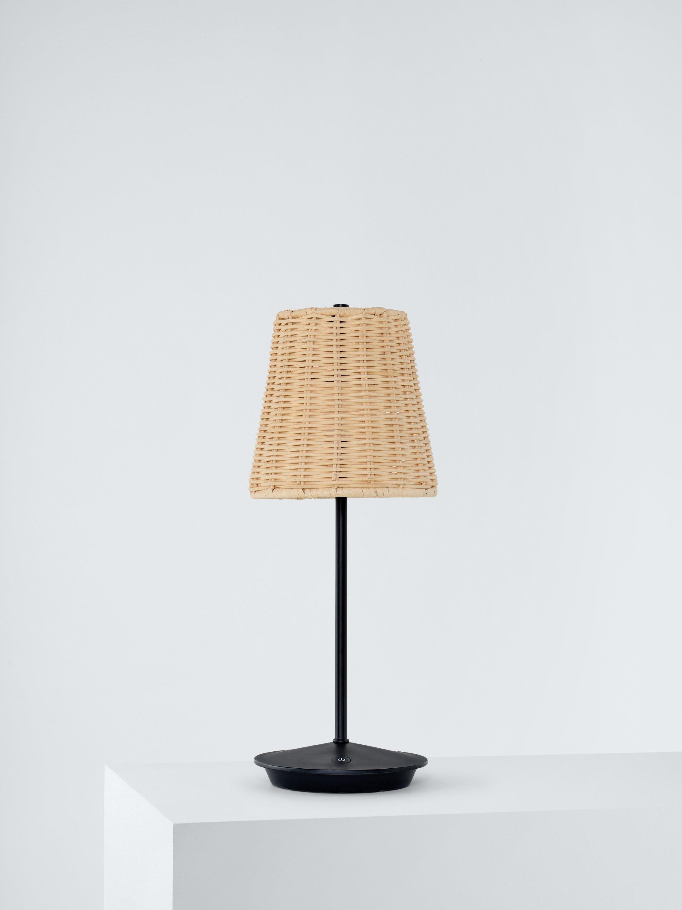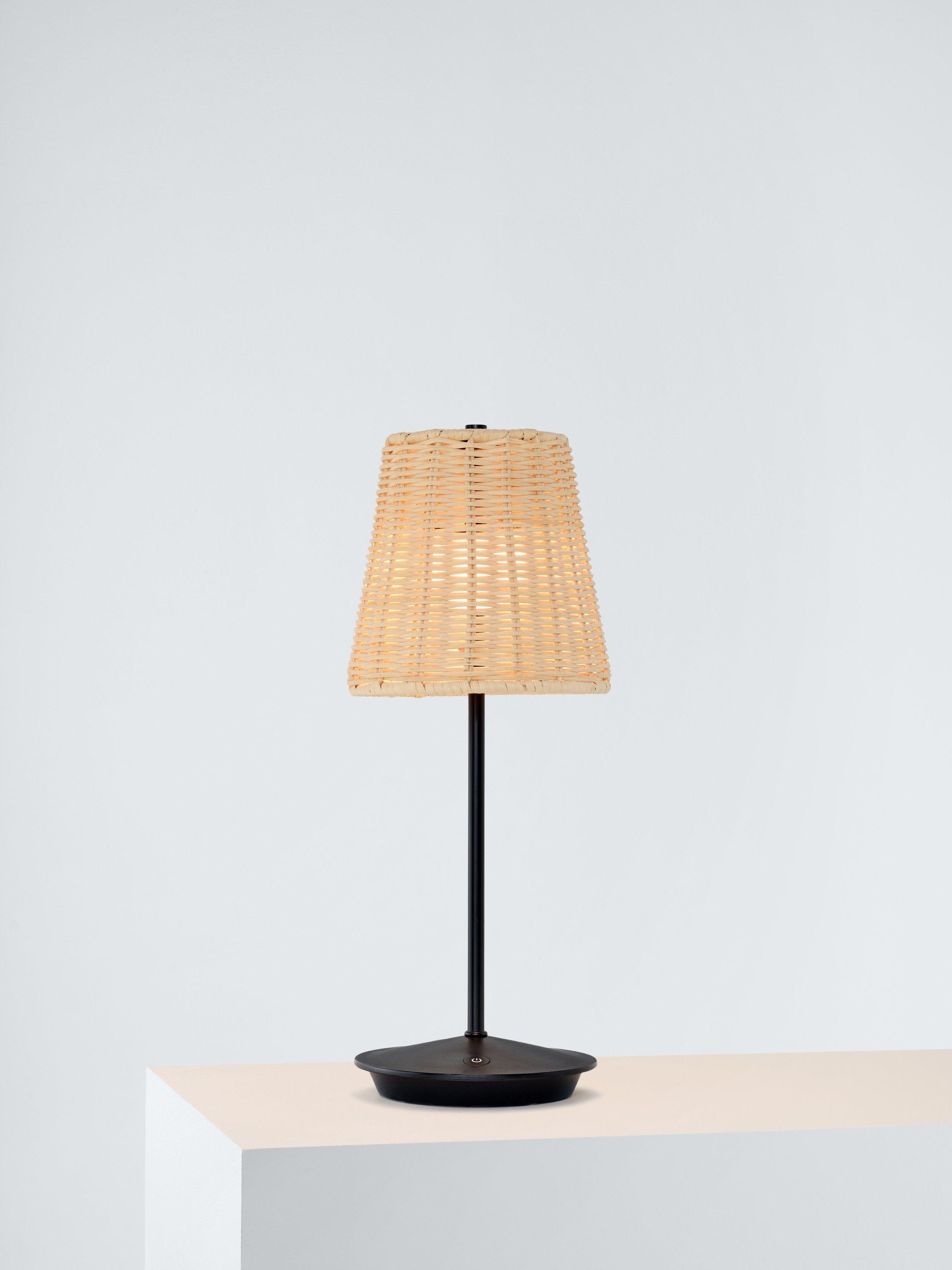 An updated take on rattan, this small table lamp is a versatile lighting solution designed to enhance both indoor and outdoor spaces. With a contemporary black finish and a stylish plastic rattan shade, this lamp complements any decor style.