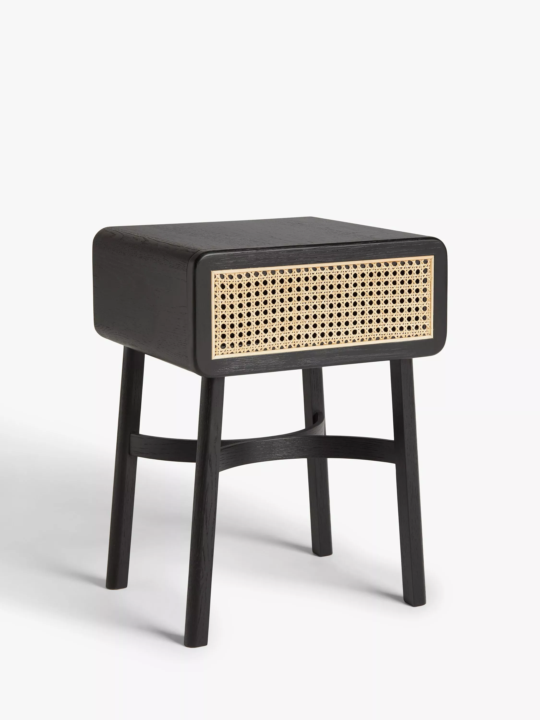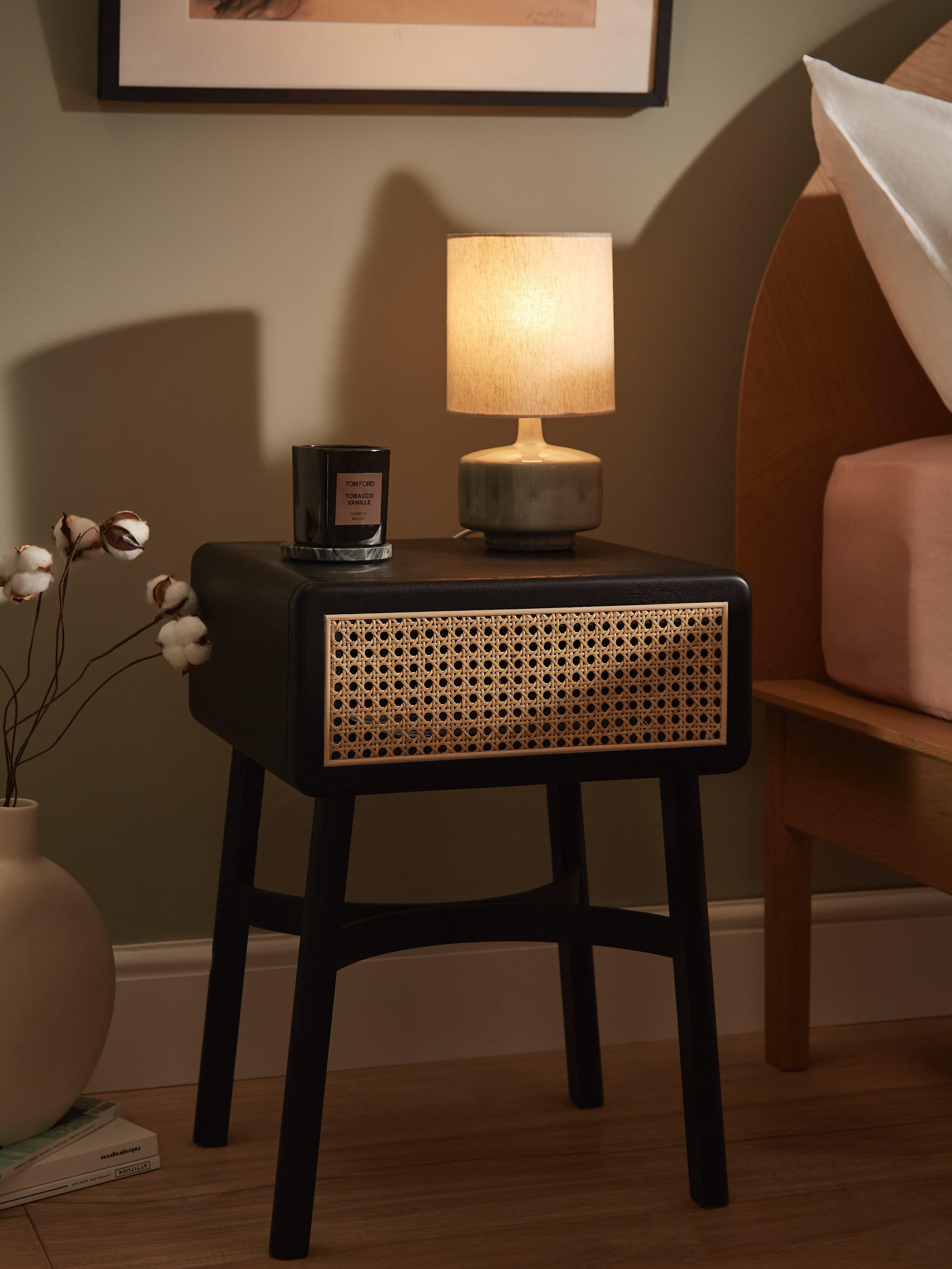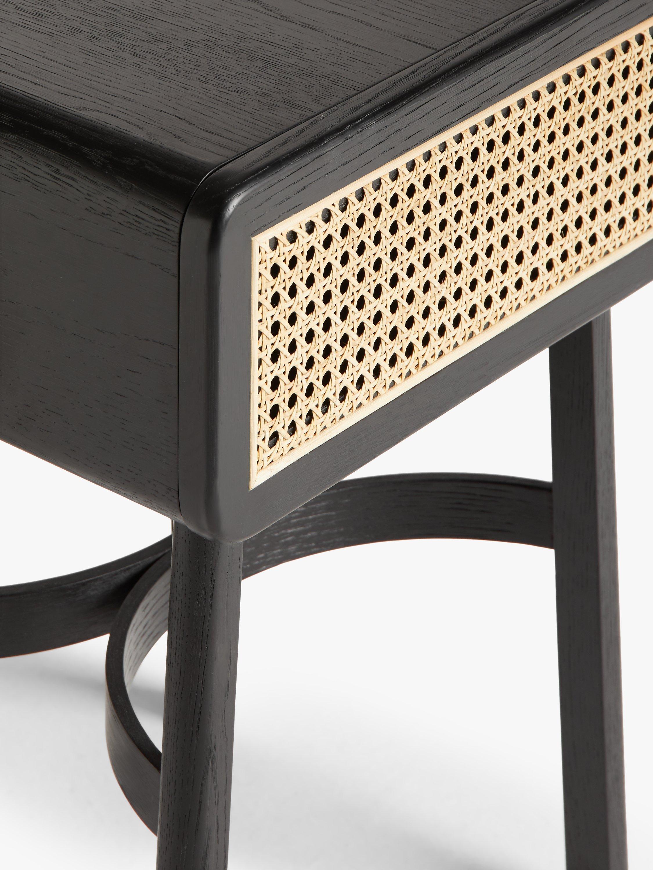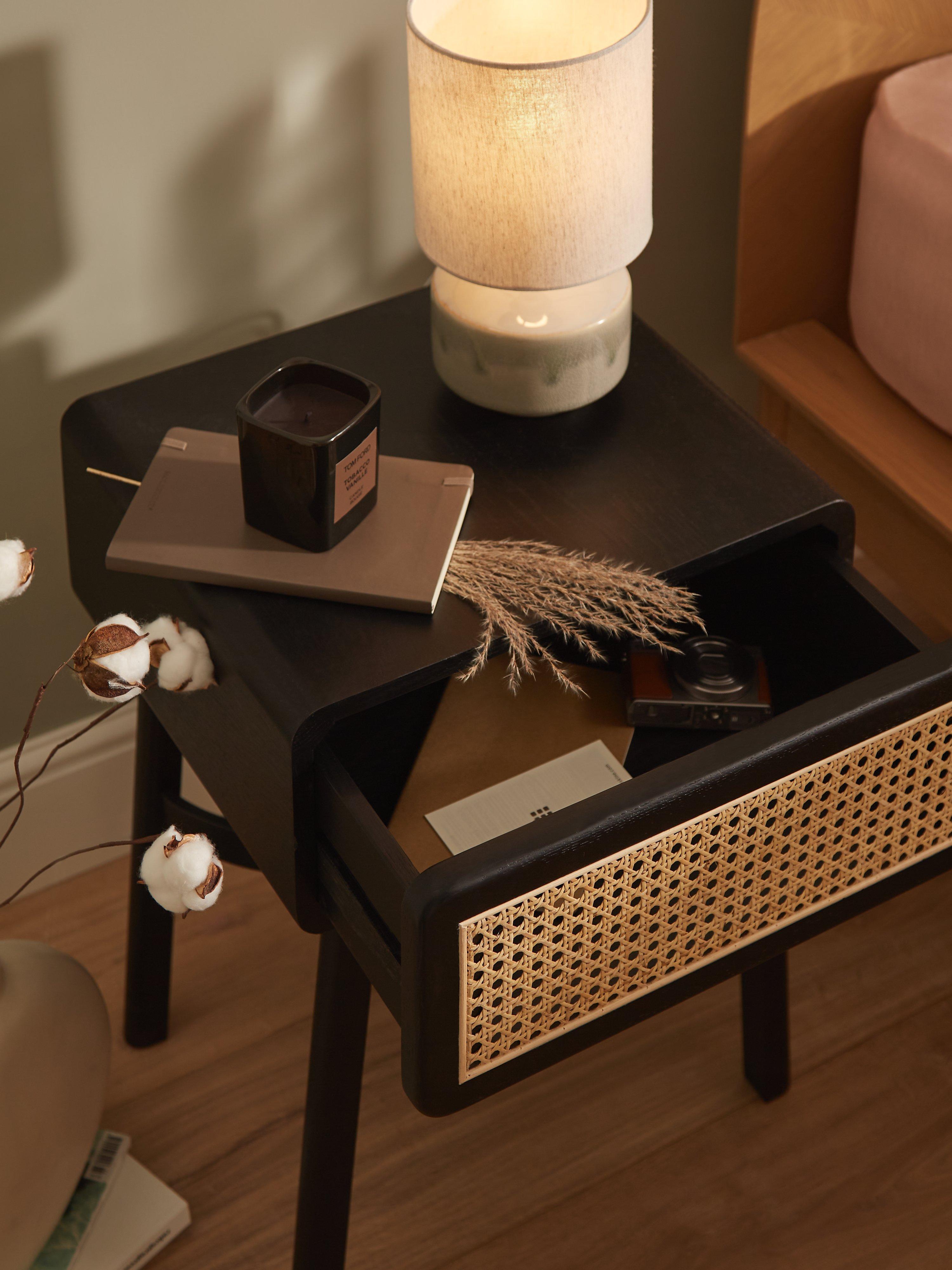 Solid oak and natural cane form this bedside table, which offers a Nordic-inspired approach to functional bedroom furniture. The smooth, round edges and steam-bent wooden frame help to create a softer look in your space, and the concealed drawer is ideal for keeping your sleep sanctuary uncluttered. Available in a painted or natural finish and best styled with cosy textiles and accessories.
