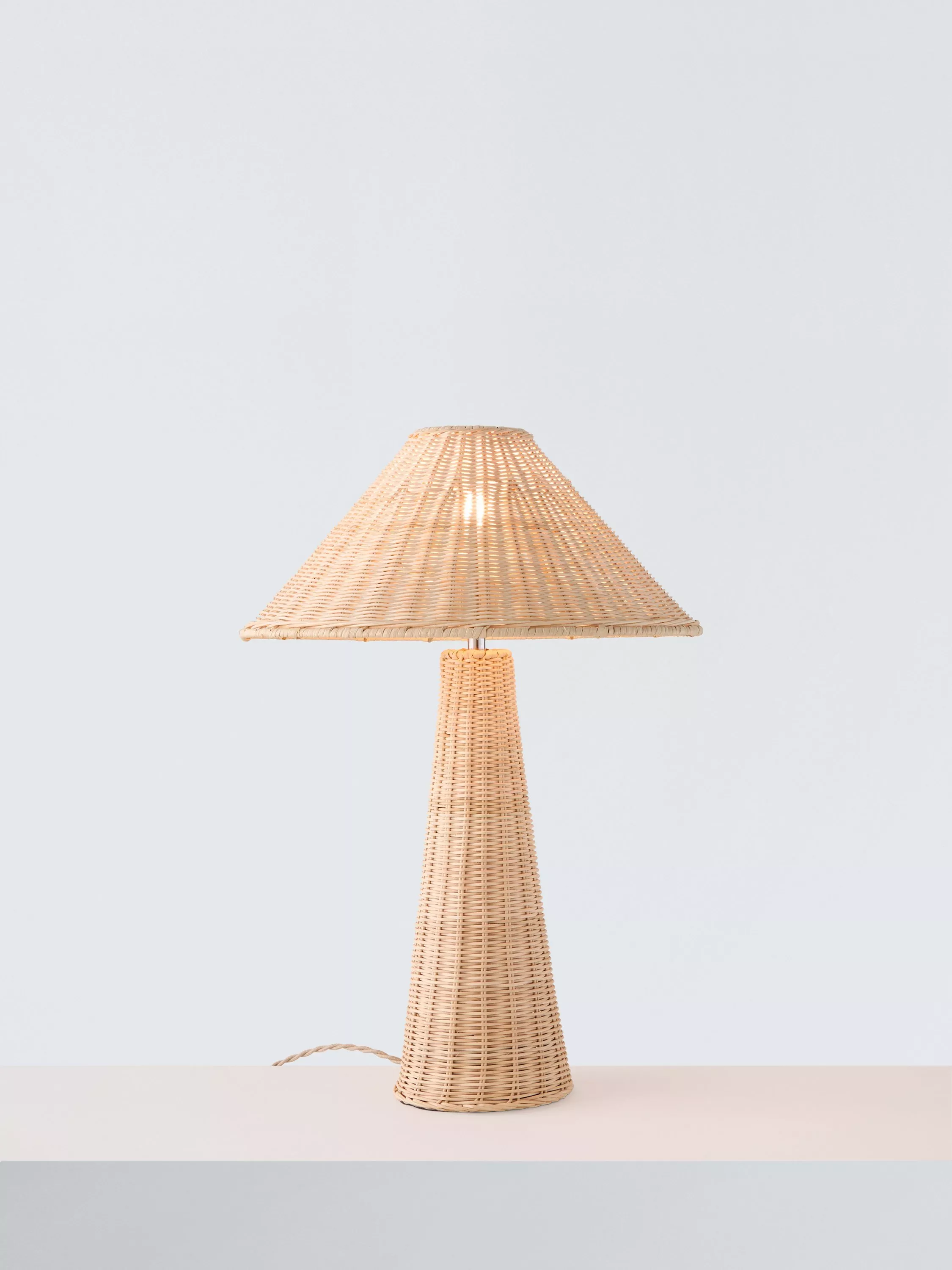 Elevate your home with our stunning woven rattan table lamp in a natural hue. With its intricate weave and tall base, standing at 59cm, this table lamp is guaranteed to make a statement. Finished off perfectly with a matching tapered rattan shade, the neutral tone and natural materials makes this an easy styling piece for any home.