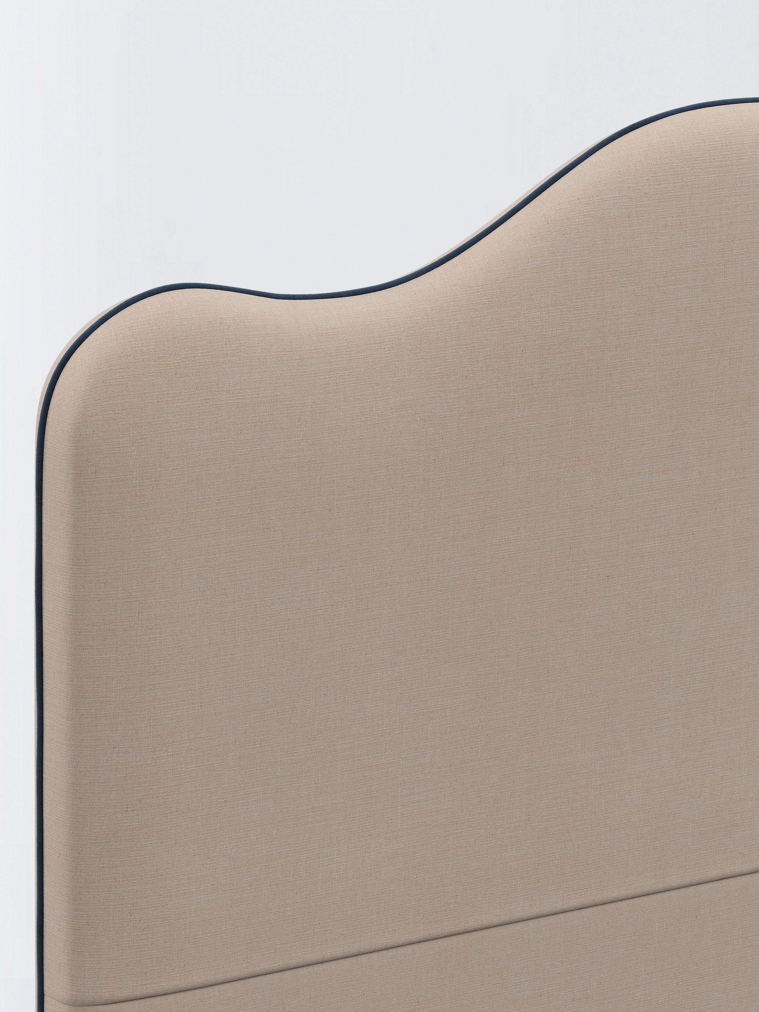 Upgrade your divan base with our Ravine headboard. It has a statement curved shape with a feature, contrast piped edge. Simple, yet so elegant, it's a full-depth fitting with standard fixings on either side, so it's easy to slot into the back of your divan base.
