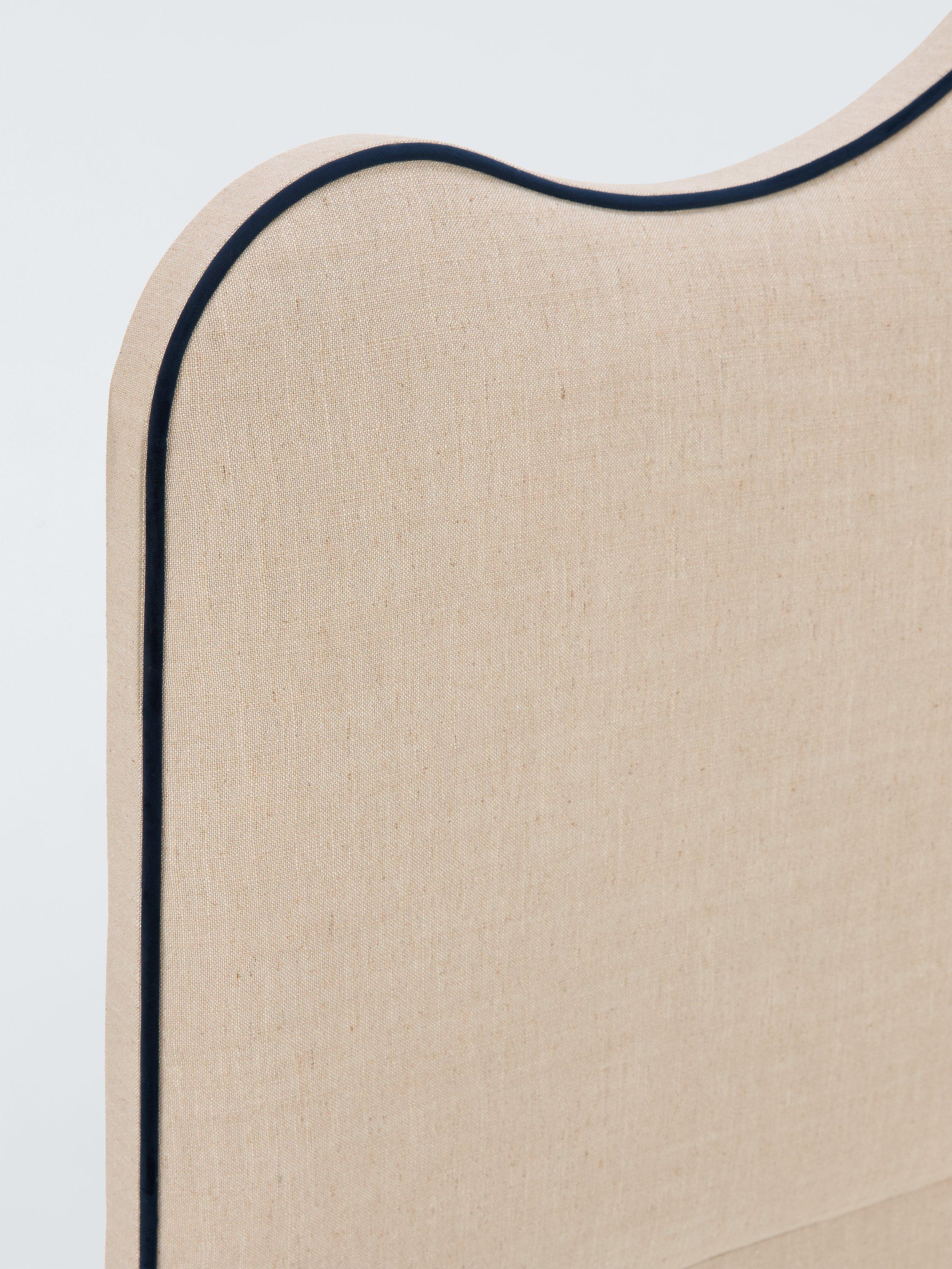Upgrade your divan base with our Ravine headboard. It has a statement curved shape with a feature, contrast piped edge. Simple, yet so elegant, it's a full-depth fitting with standard fixings on either side, so it's easy to slot into the back of your divan base.