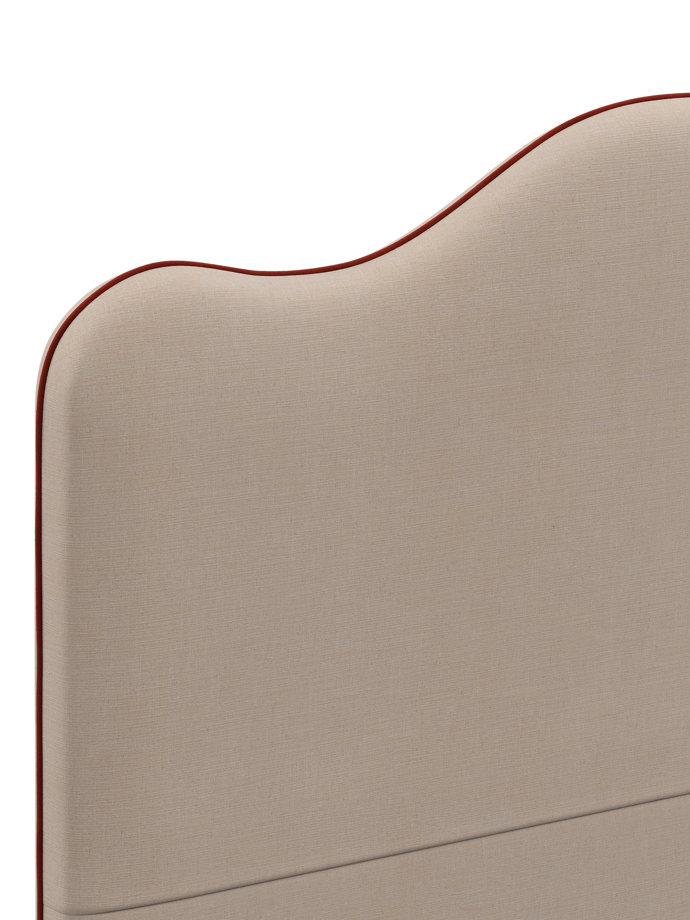 Upgrade your divan base with our Ravine headboard. It has a statement curved shape with a feature, contrast piped edge. Simple, yet so elegant, it's a full-depth fitting with standard fixings on either side, so it's easy to slot into the back of your divan base.