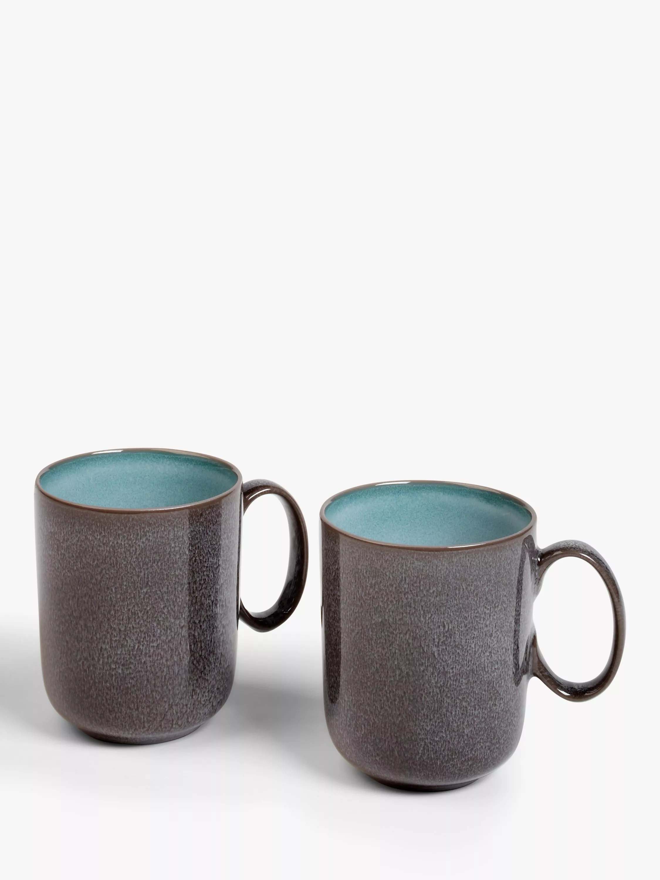One of a kind, each mug in this pair has a reactive glaze applied by hand. This creates subtle variations from item to item, making each piece unique. Made of stoneware, the mugs are dishwasher and microwave-safe for everyday use.