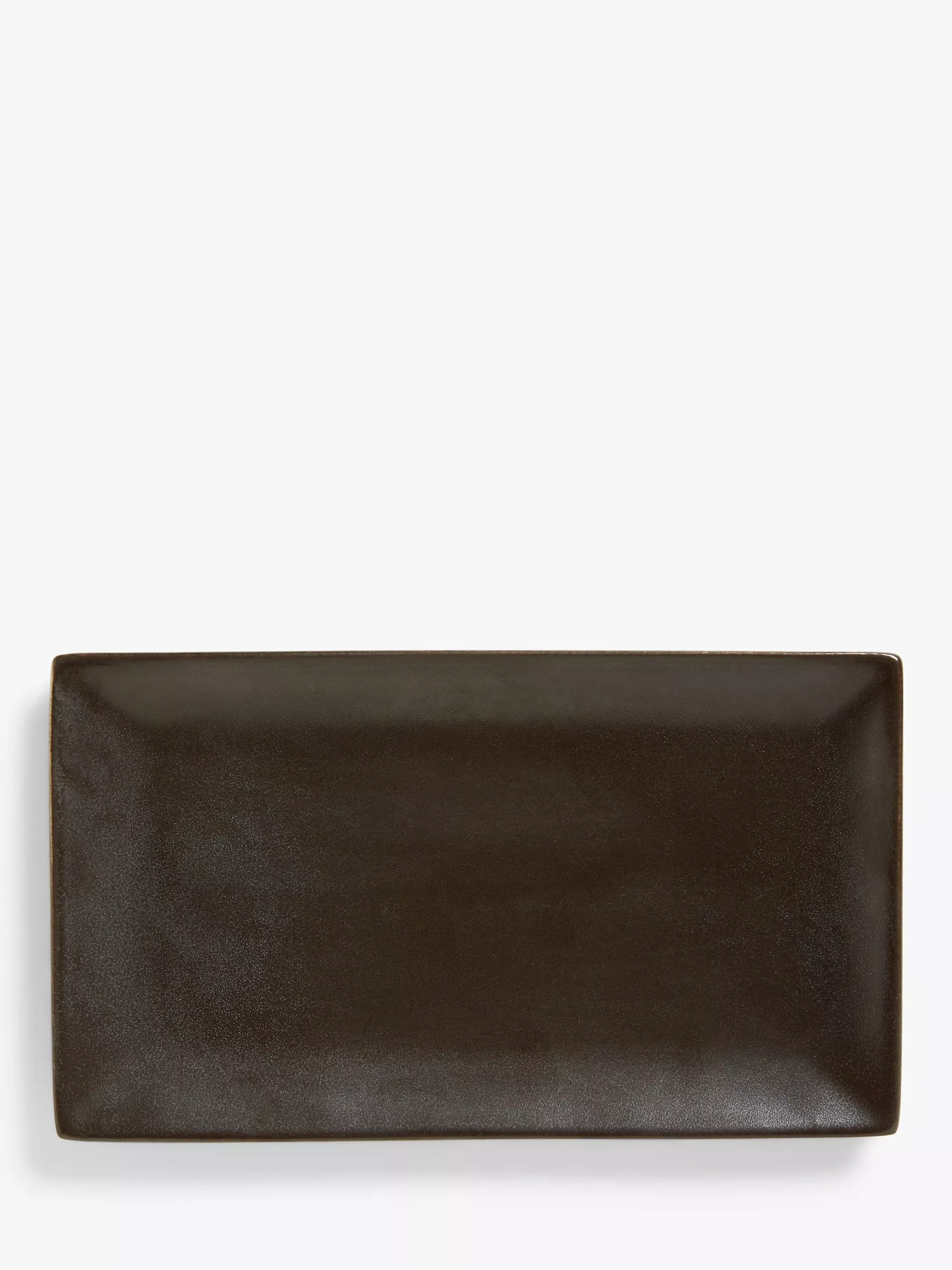 John LewisReactive Glaze Stoneware Rectangular Platter, 23cm, Black