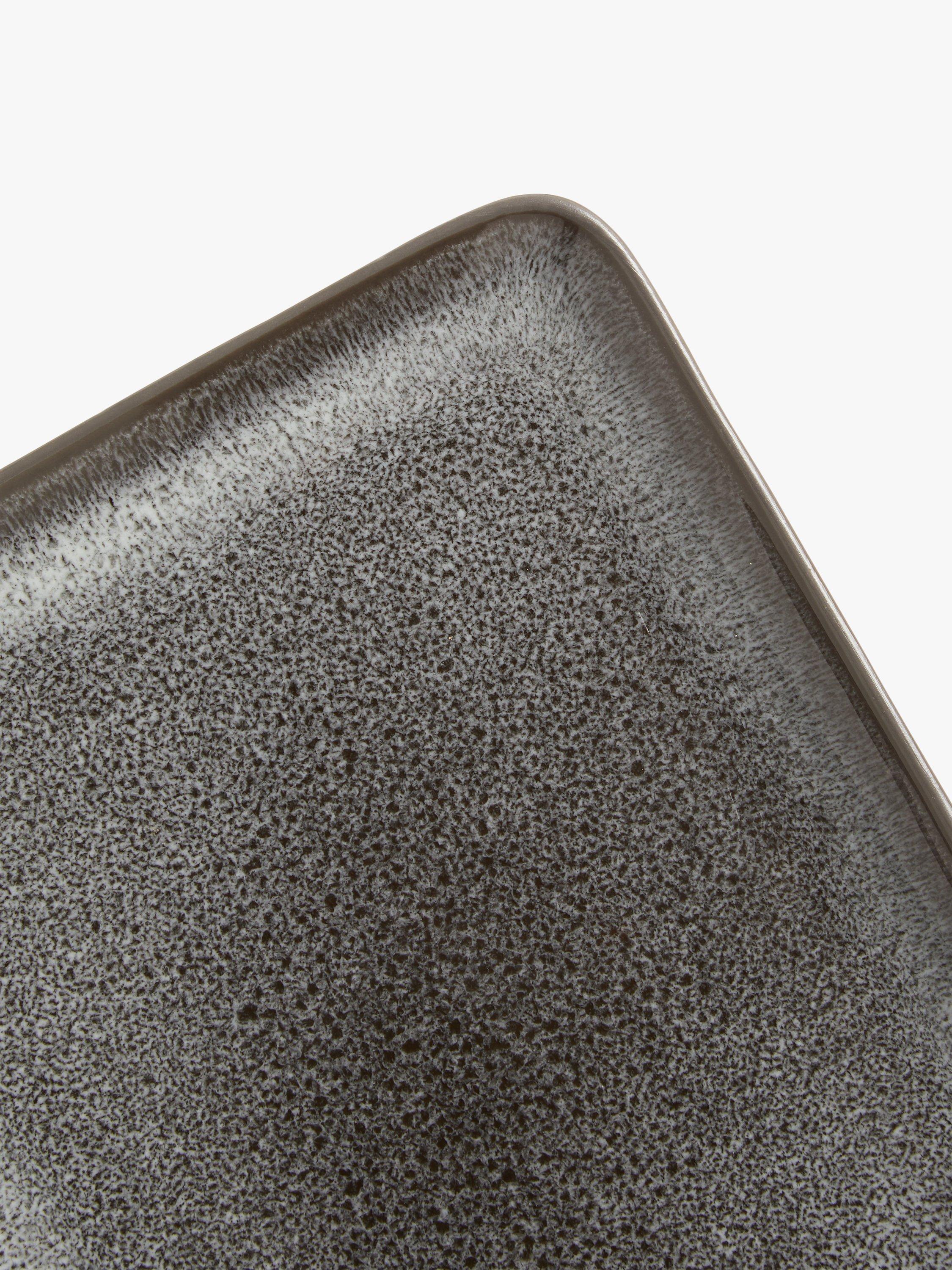 One of a kind, this ceramic rectangular platter has a reactive glaze applied by hand. This creates subtle variations from item to item, making each piece unique. Made of stoneware, it's dishwasher and microwave safe for everyday use.