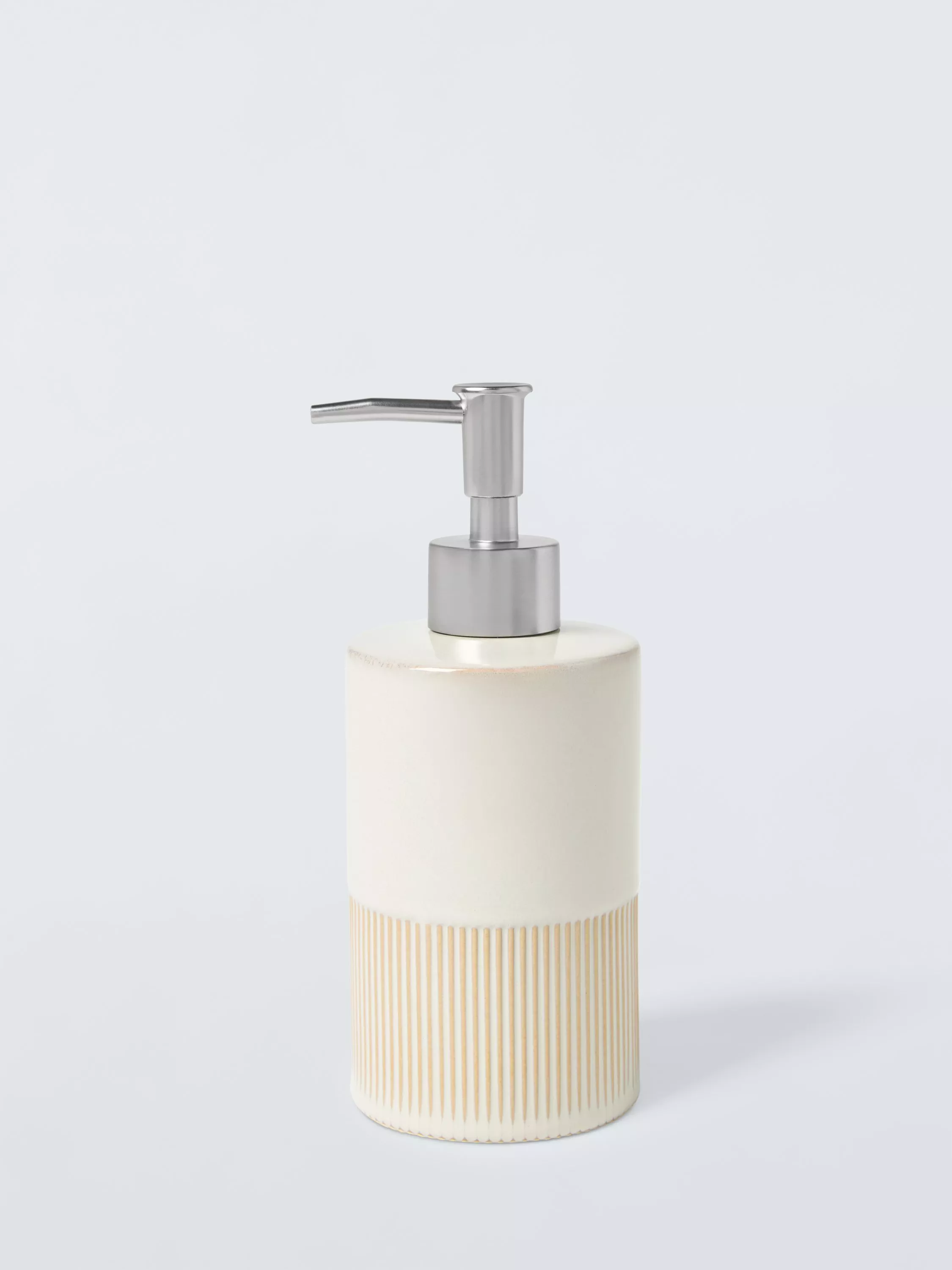 Give your bathroom a relaxed, spa-like ambience with this beautifully glazed, ribbed soap dispenser in natural tones.