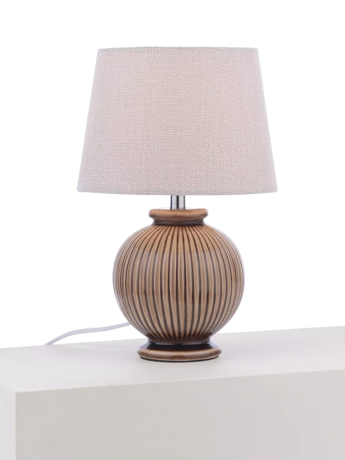 A timeless ceramic table lamp in a glossy coloured glaze. Shaded with a beautiful rolled edge lampshade made with a textural cotton mix which looks fantastic when the light is both on or off.