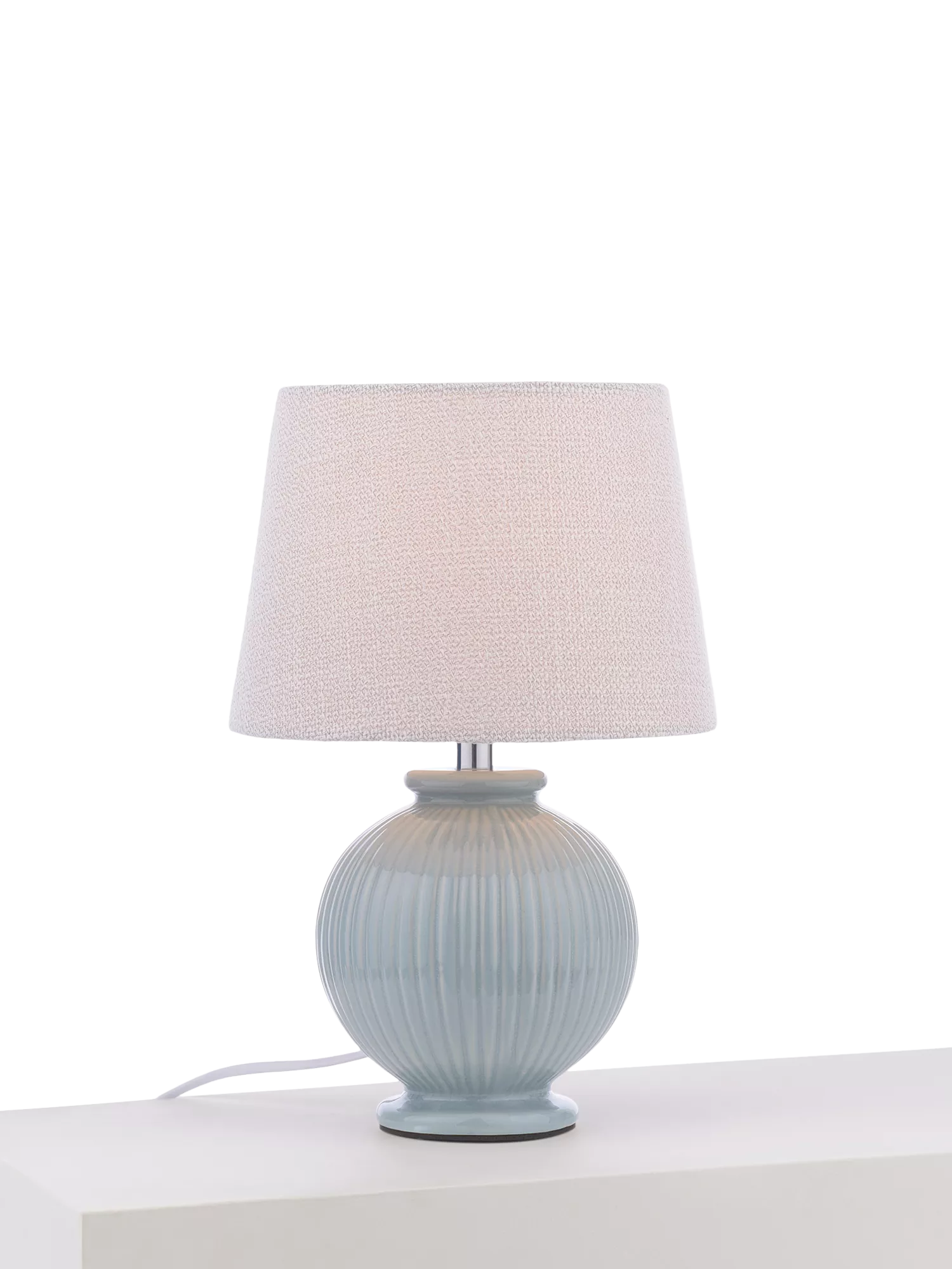 A timeless ceramic table lamp in a glossy coloured glaze. Shaded with a beautiful rolled edge lampshade made with a textural cotton mix which looks fantastic when the light is both on or off.