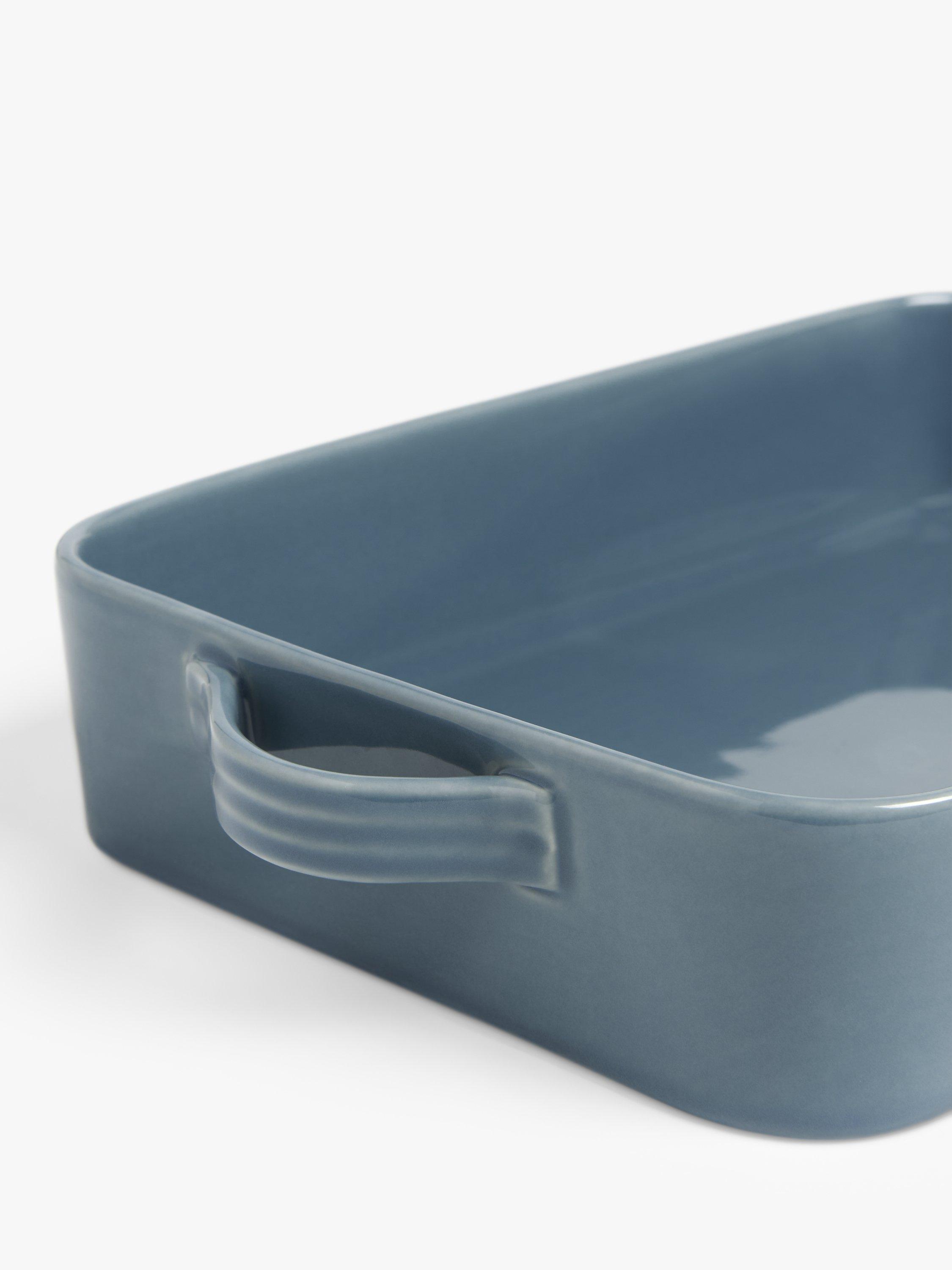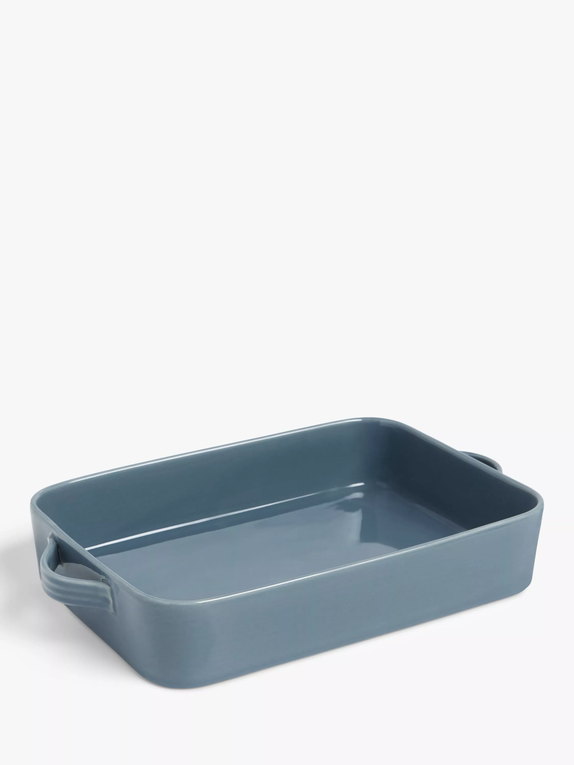 Rectangular stoneware roaster with twin handles for oven-to-table use. Dishwasher and microwave safe, as well as oven safe up to 250°C.