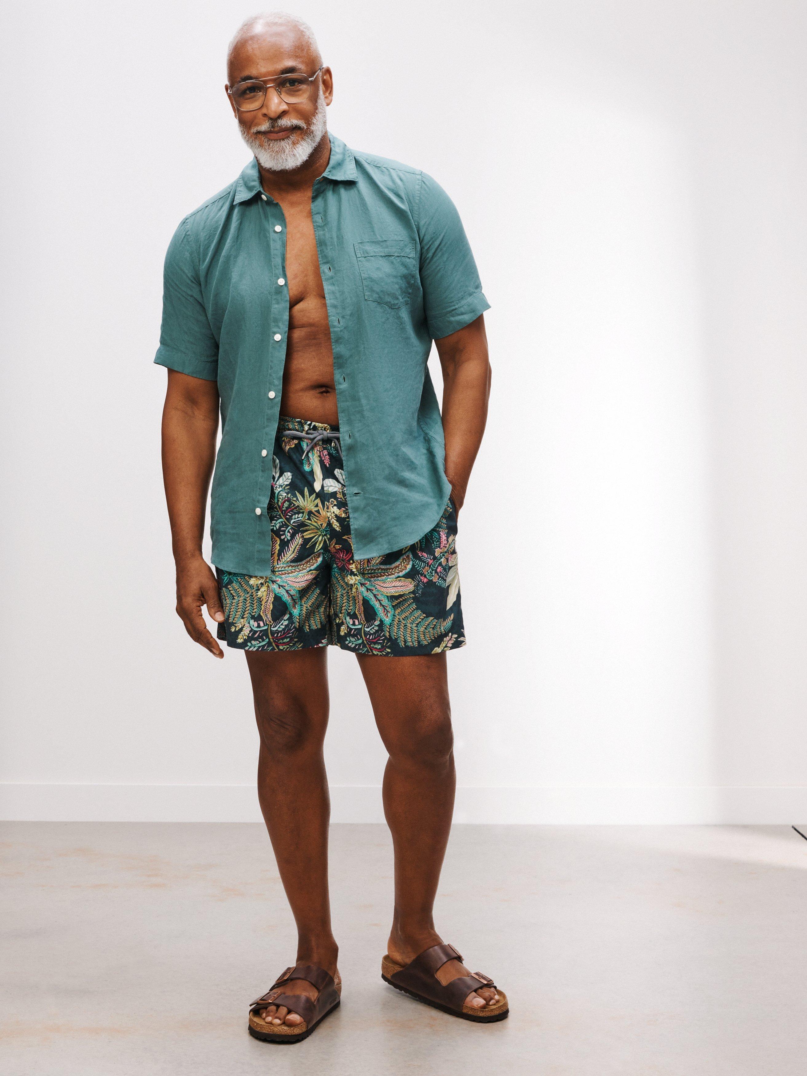 Start packing your holiday wardrobe and don't forget your swim shorts! We've made these from lightweight and fast-drying polyester and you'll stand out poolside thanks to their fun tropical palm print. Complete with a mesh lining, drawstring elasticated waistband and side pockets, we've also added a handy locker loop at the back so you can easily hang them to dry.