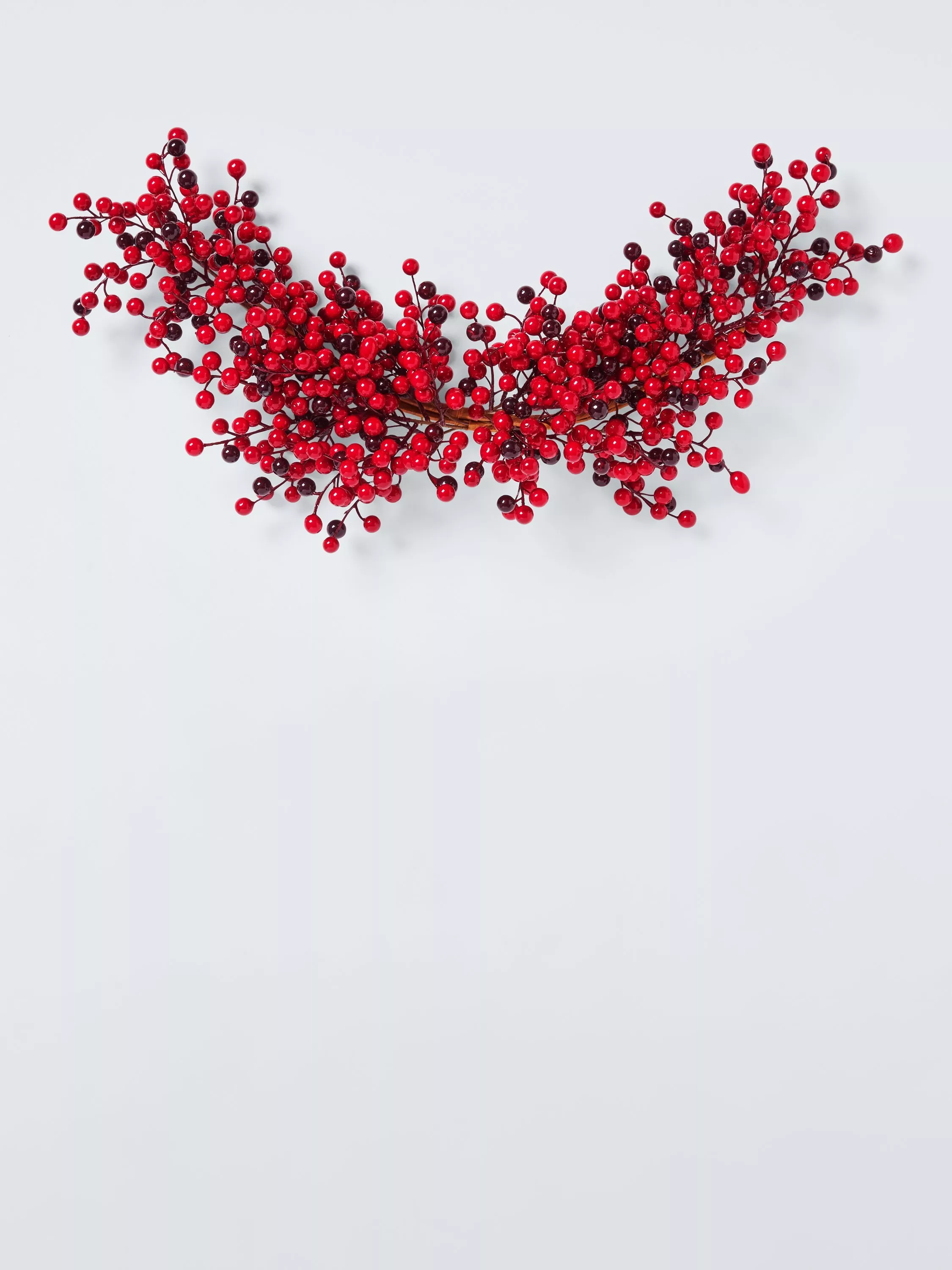 This simple swag is festooned with hundreds of berries in bright and deep shades of red.