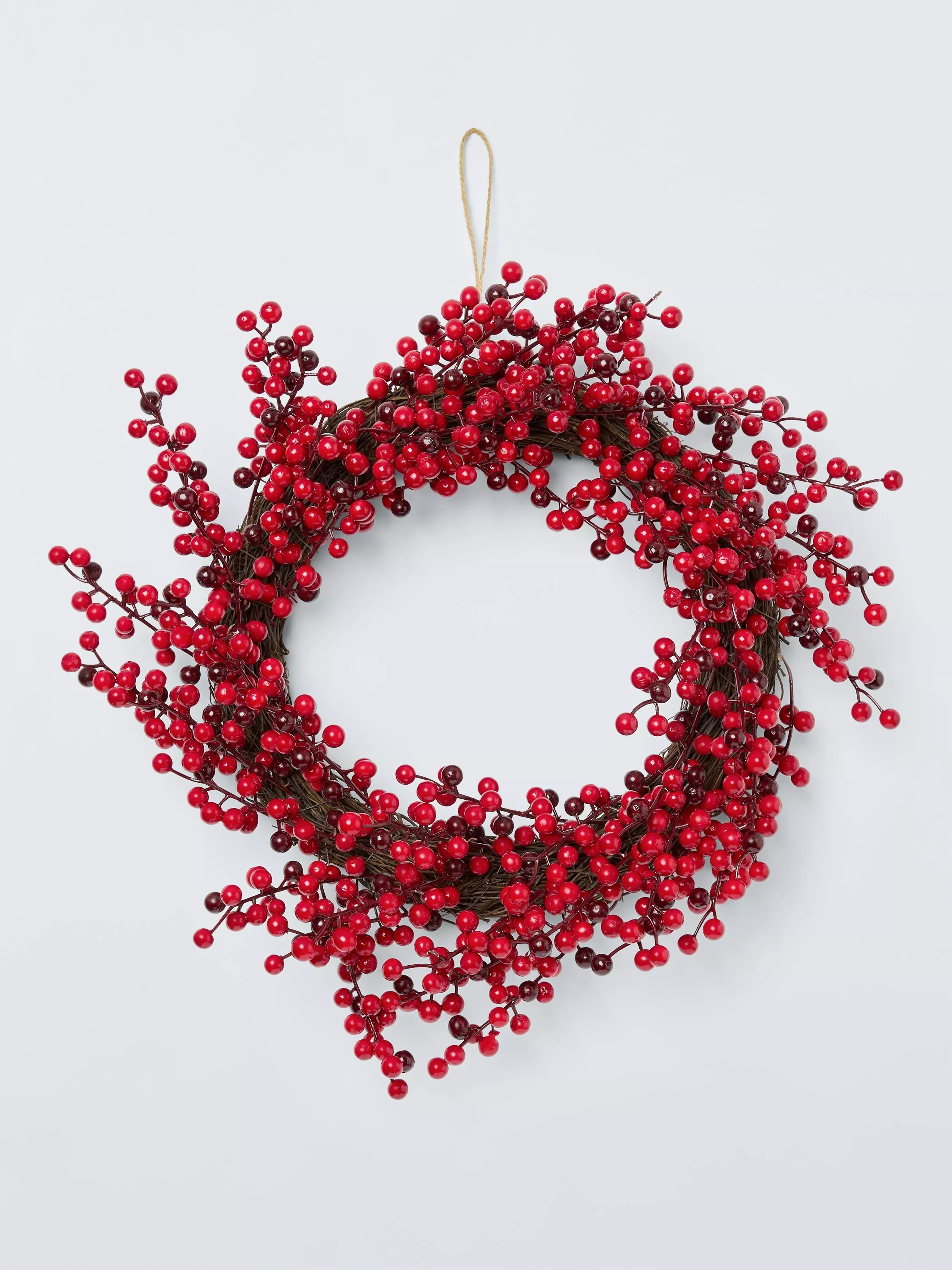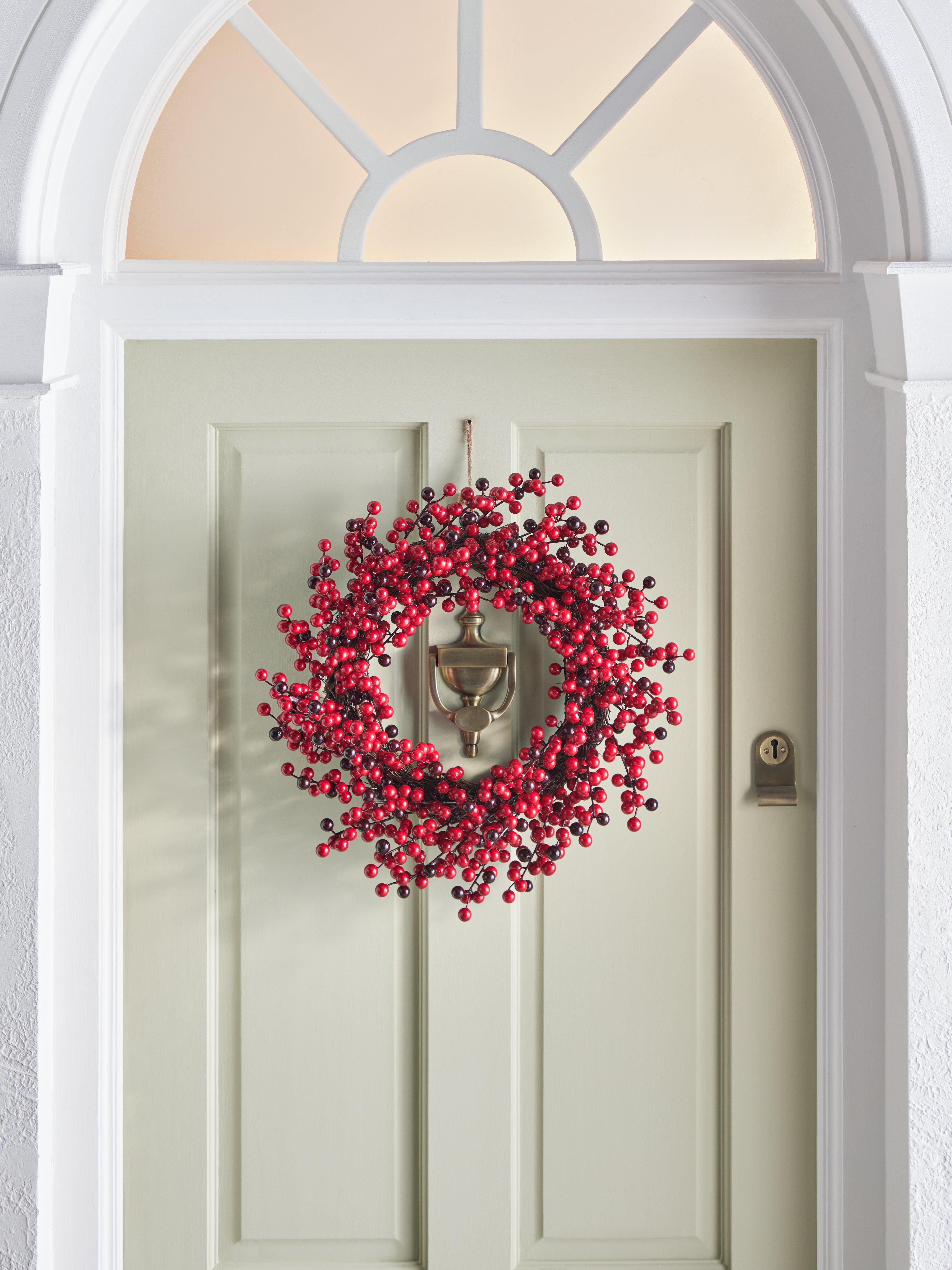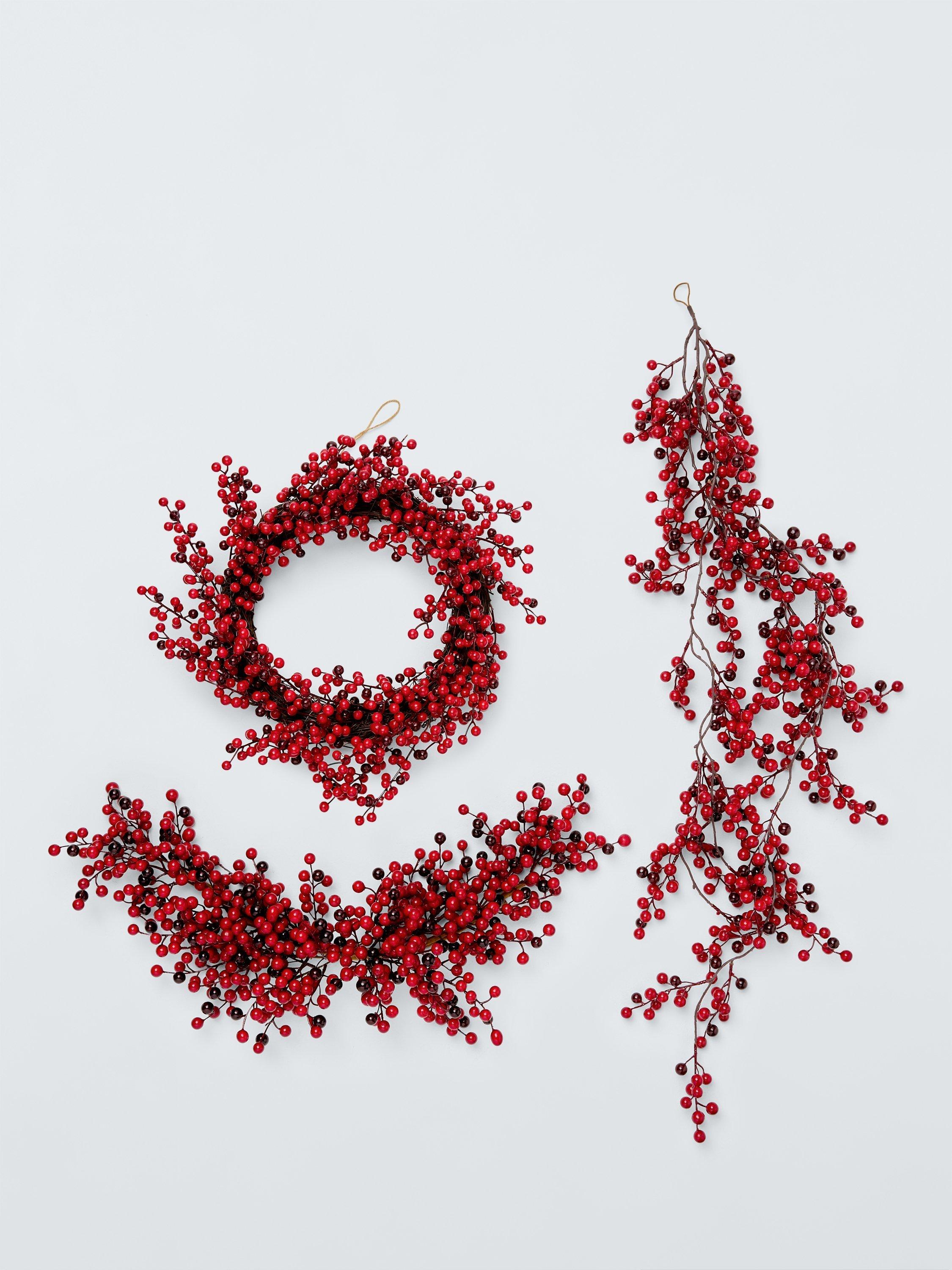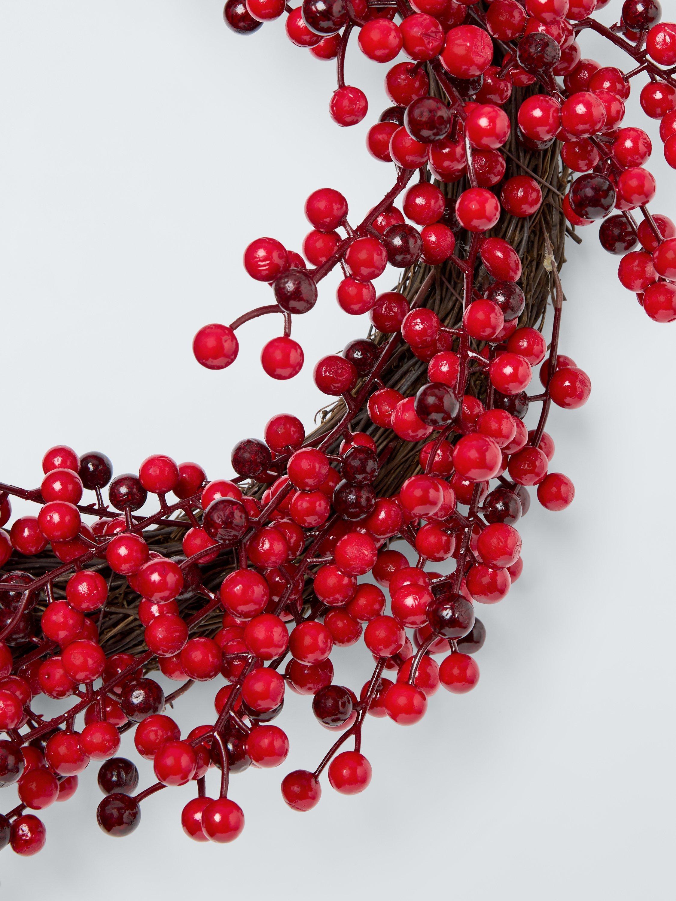 This simple twig wreath is festooned with hundreds of berries in bright and deep shades of red.