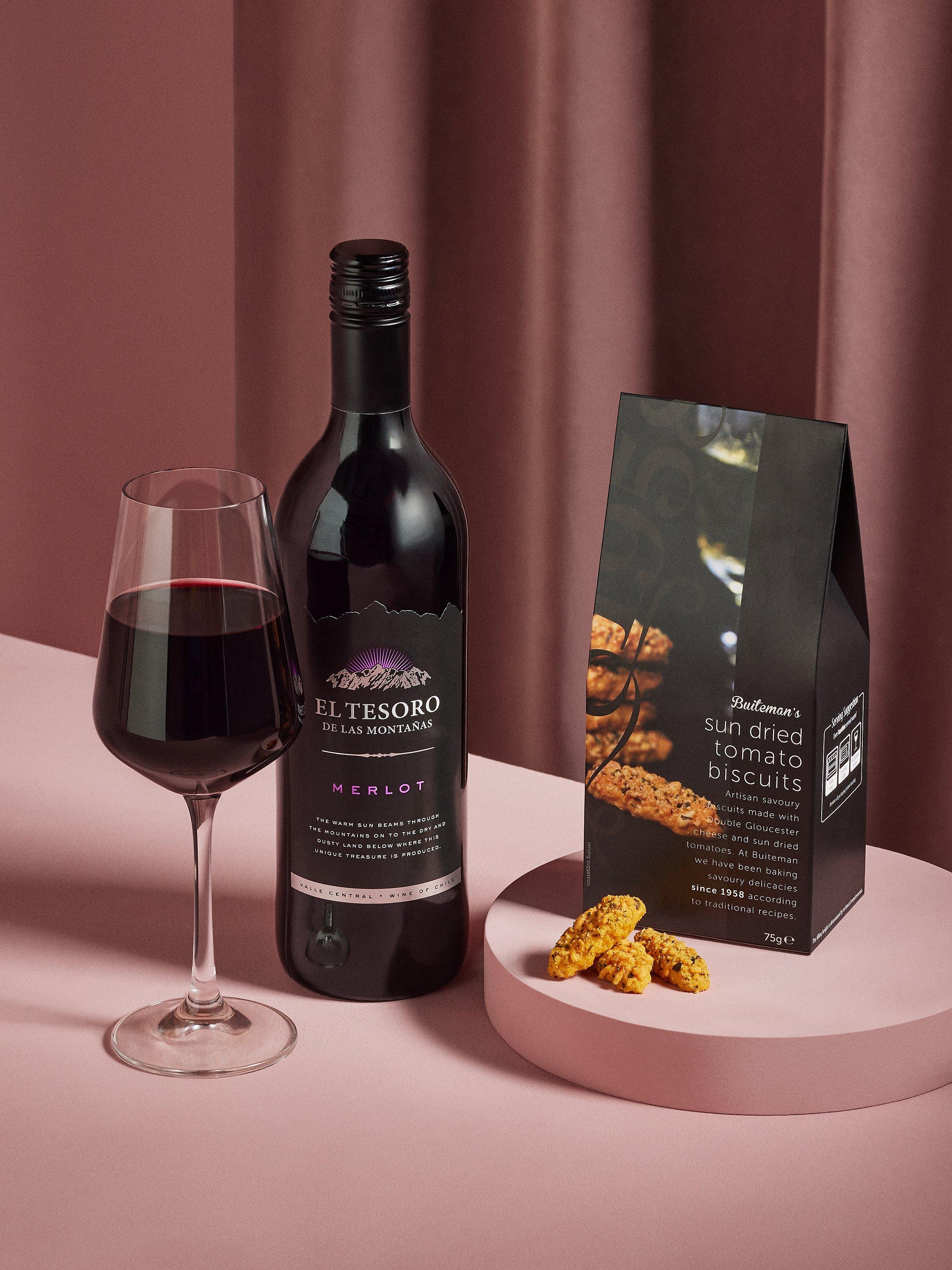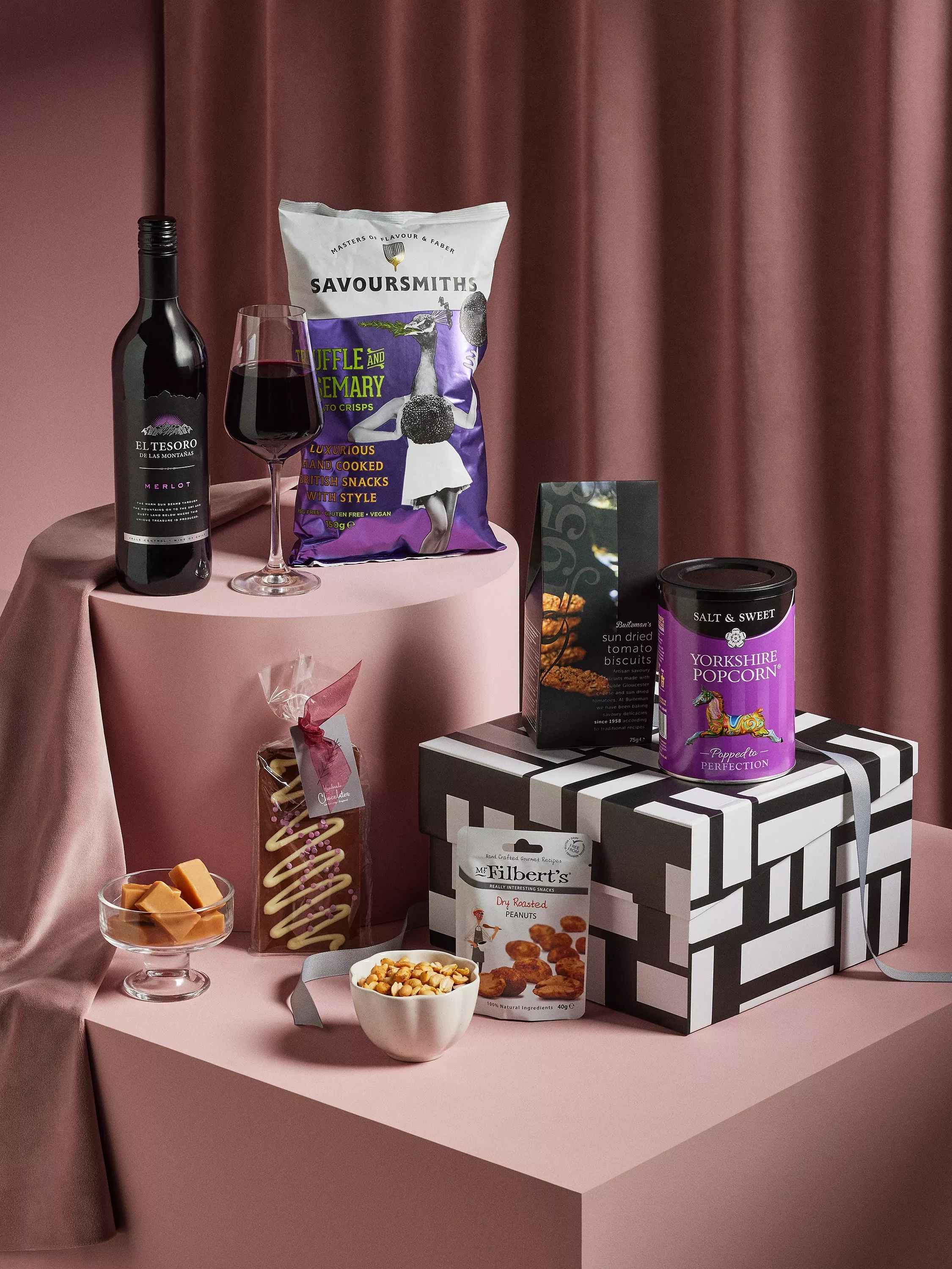 An elegant, rich and fruity Merlot, with a selection of flavoursome gourmet snacks including truffle & rosemary crisps and clotted cream fudge.