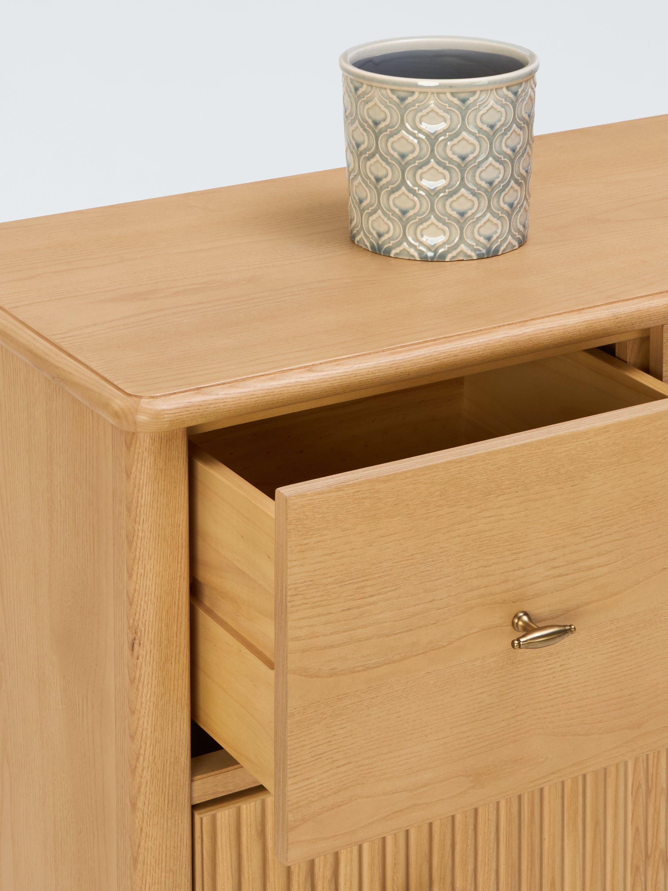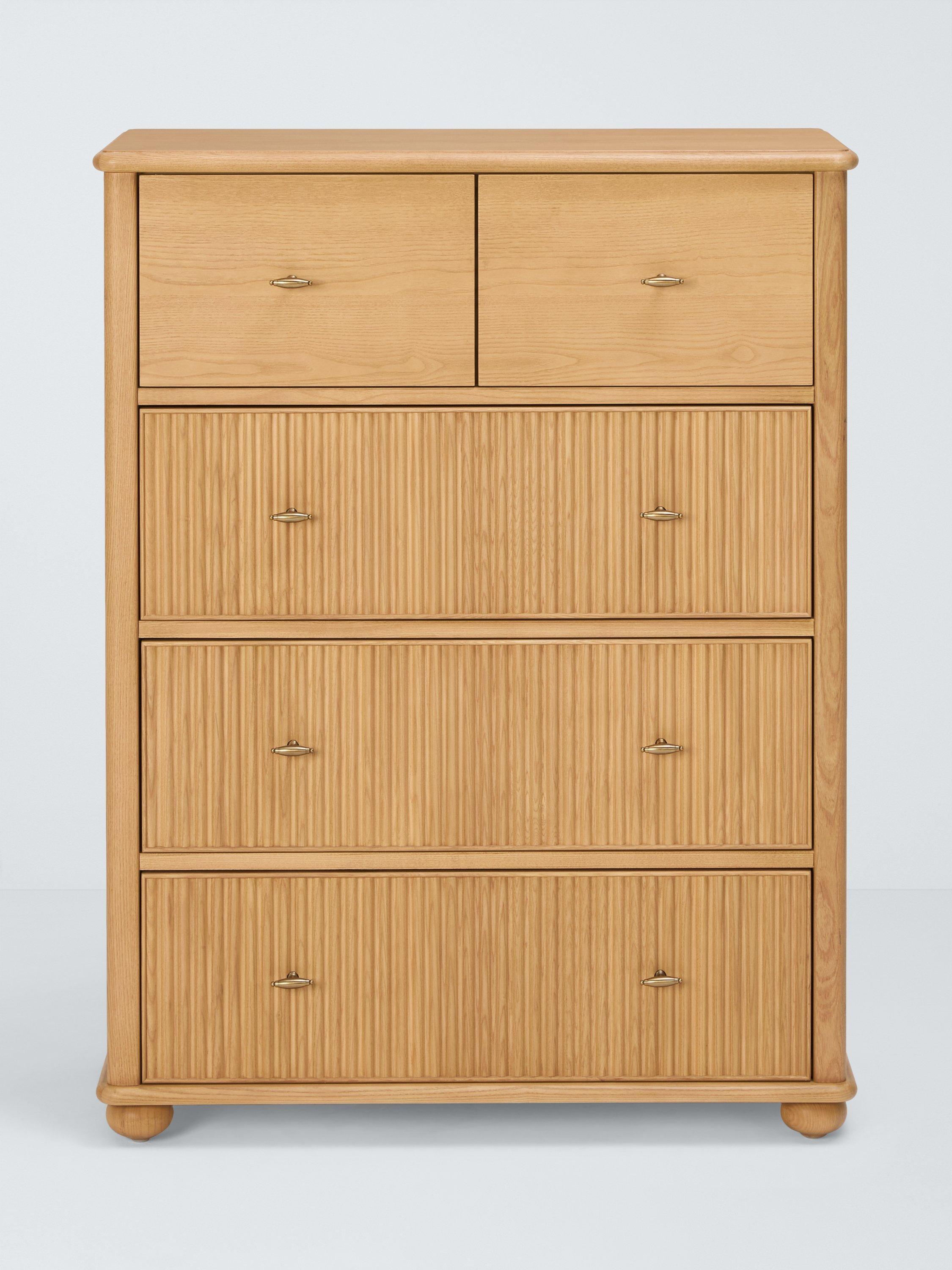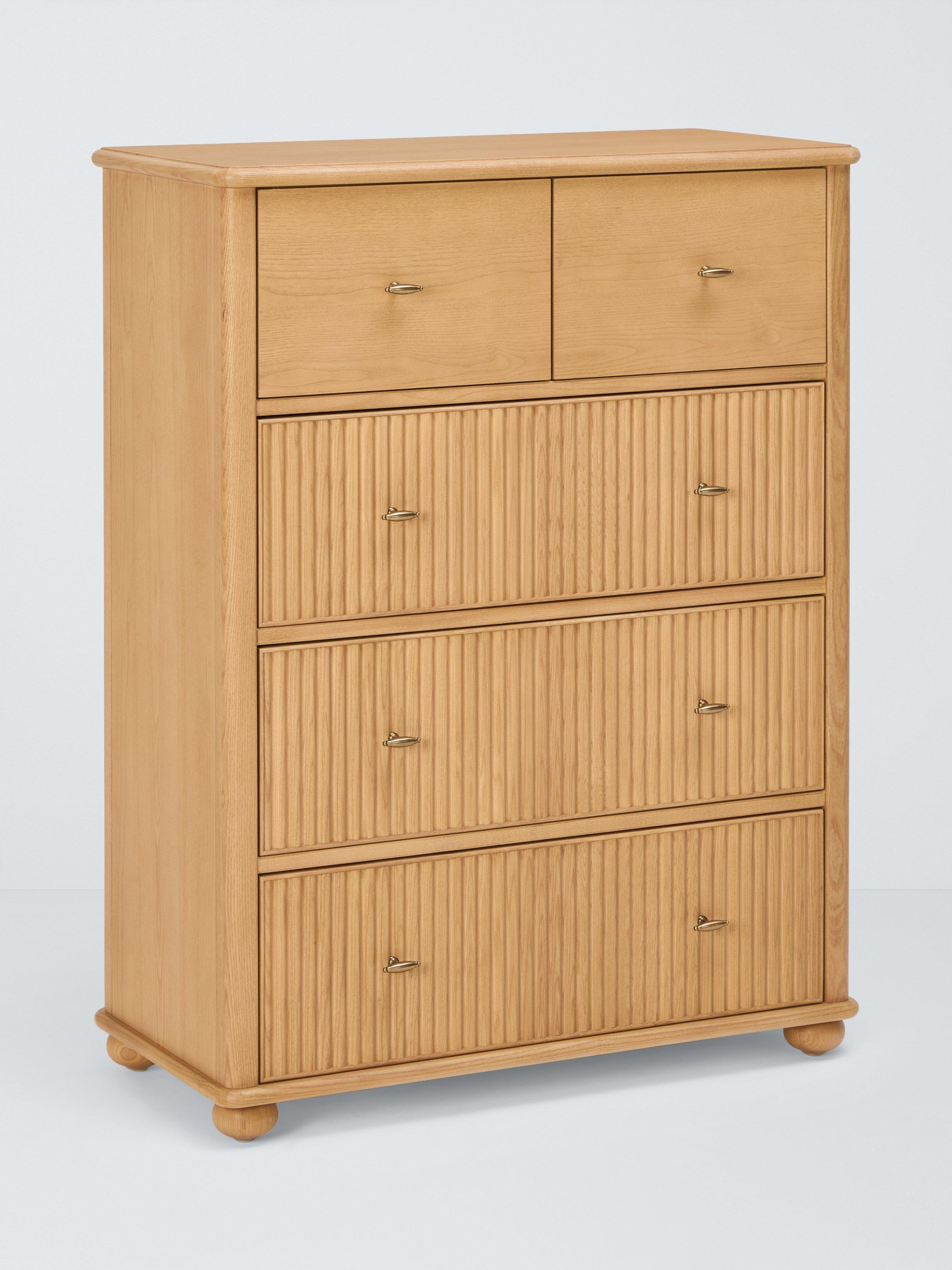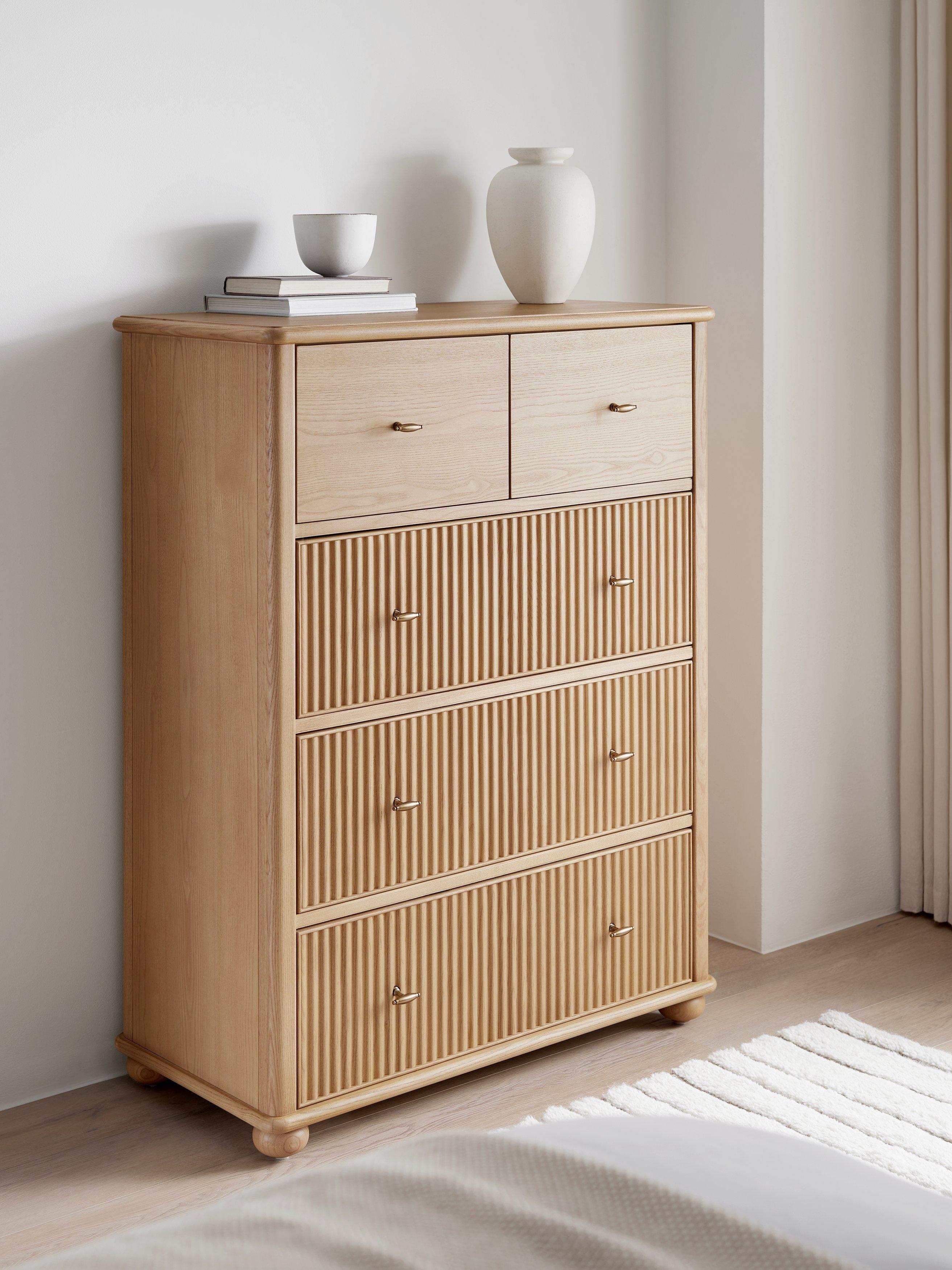 The Reed 5 drawer chest is styled with a twist on traditional design. Featuring solid feet, five drawers - with textured detailing and a quality finish.