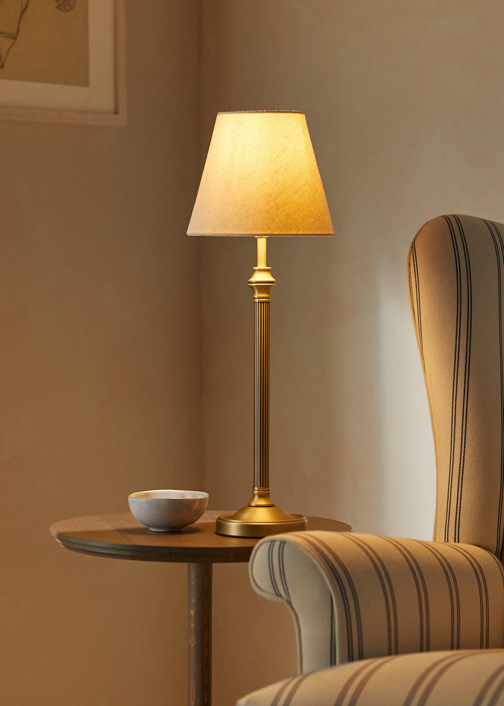 The Reeded Column floor lamp base adds a level of sophistication to any room. Crafted from steel with a matte antique brass metal finish and fine rib metal stem.