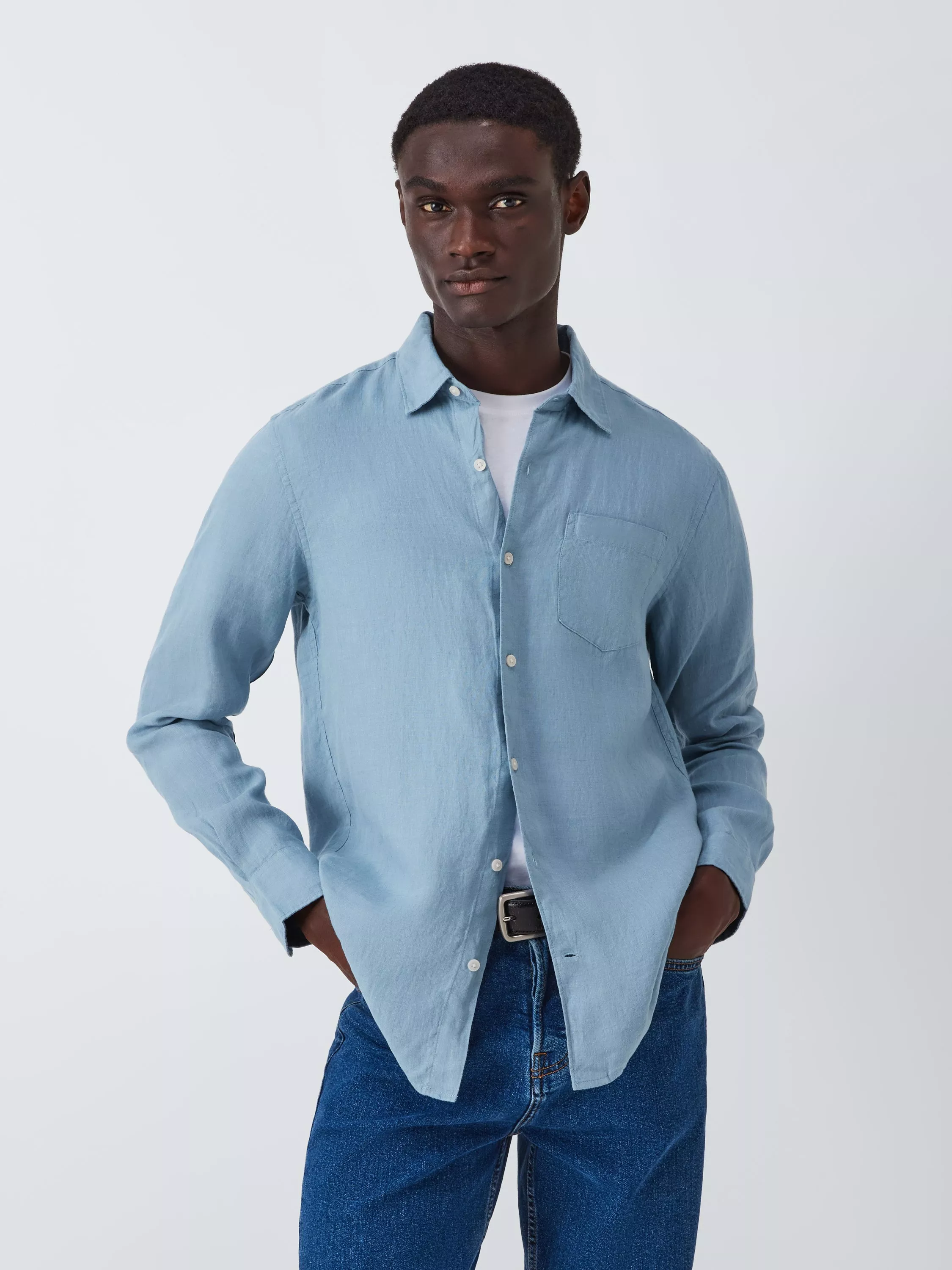 Breathable, lightweight linen shirt with imitation mother-of-pearl buttons for an elevated edge. A regular fit and topped with a point collar. Styling tips? More linen. Linen trousers. Linen shorts. Linen cap.