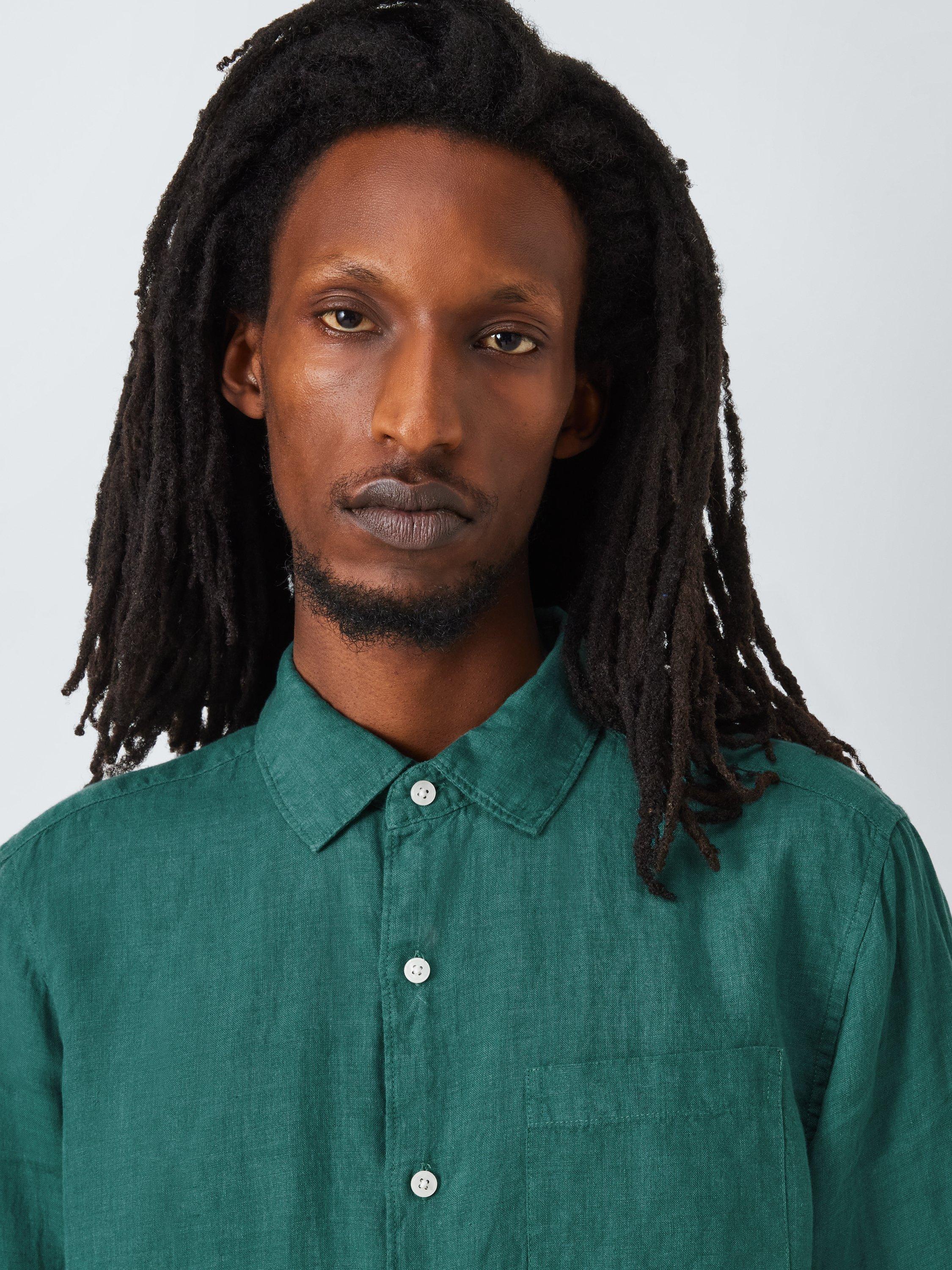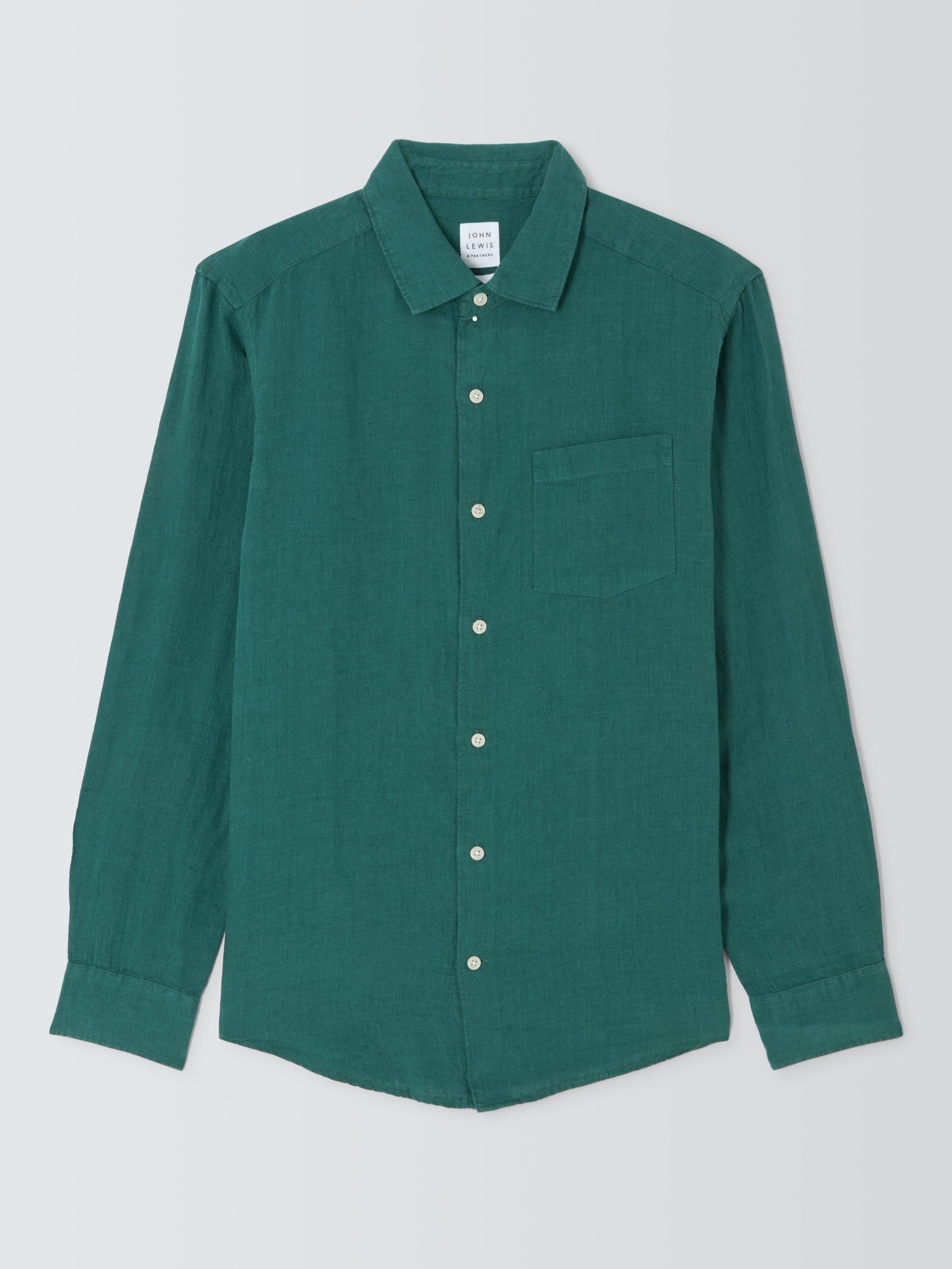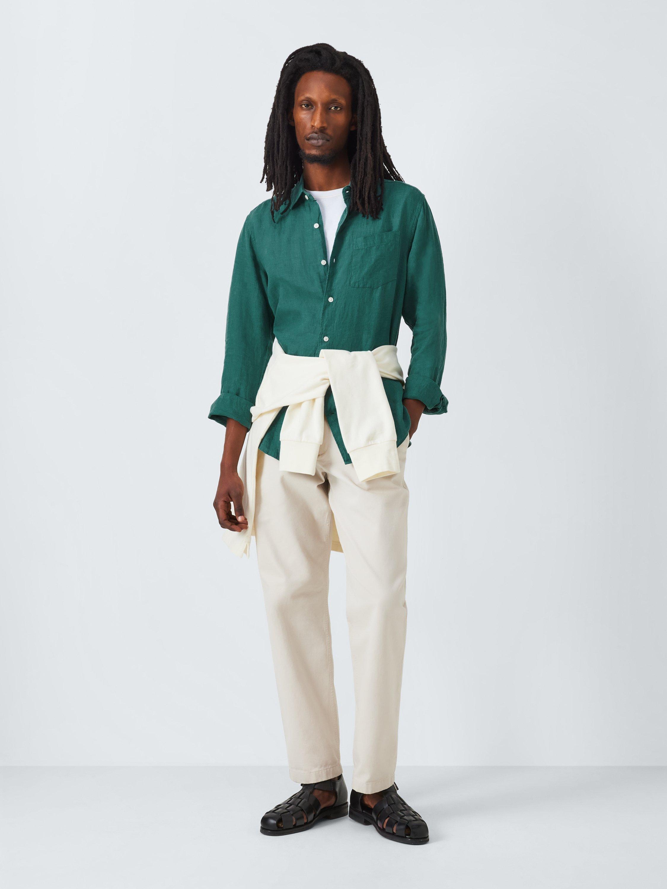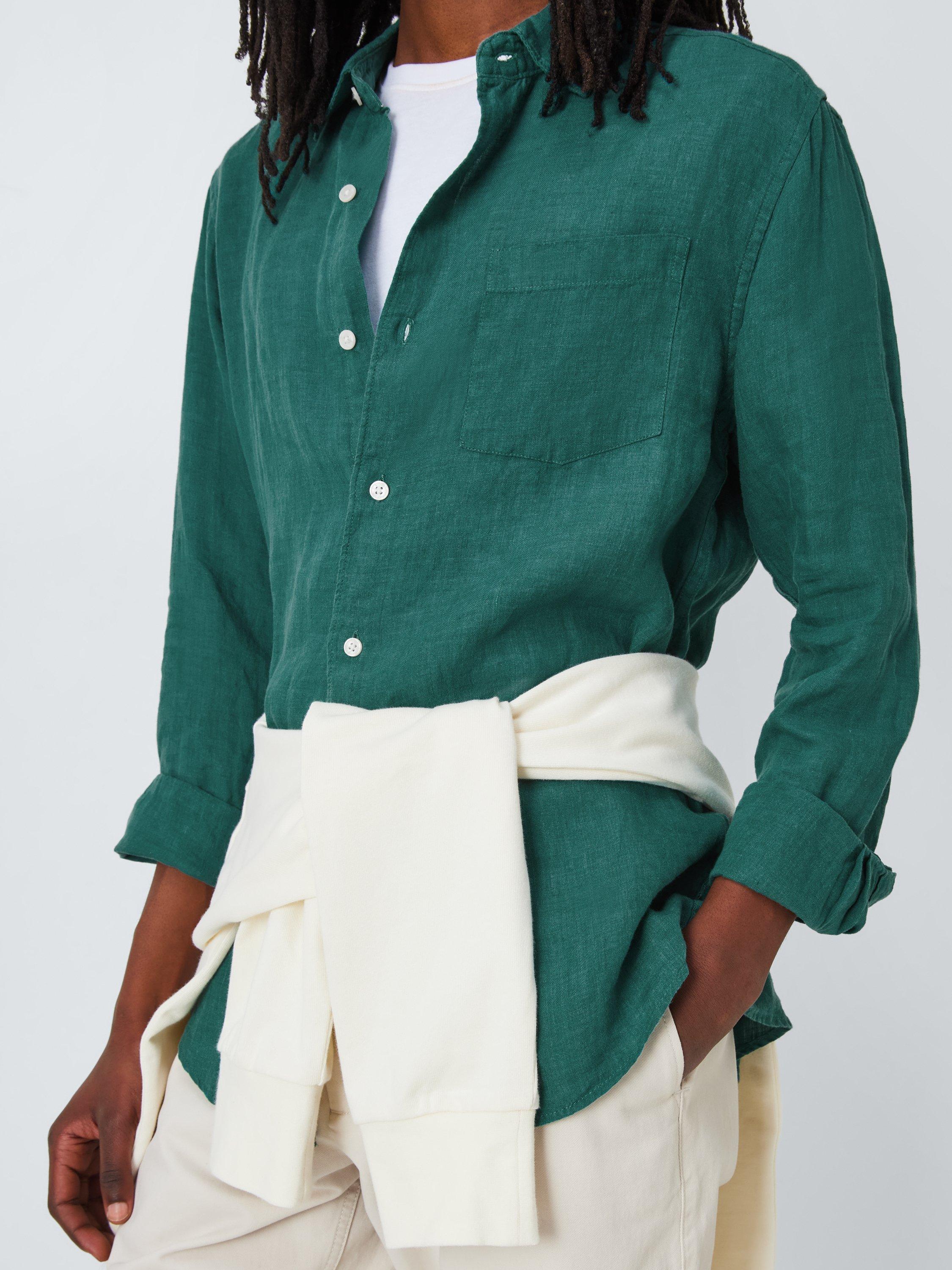 Breathable, lightweight linen shirt with imitation mother-of-pearl buttons for an elevated edge. A regular fit and topped with a point collar. Styling tips? More linen. Linen trousers. Linen shorts. Linen cap.