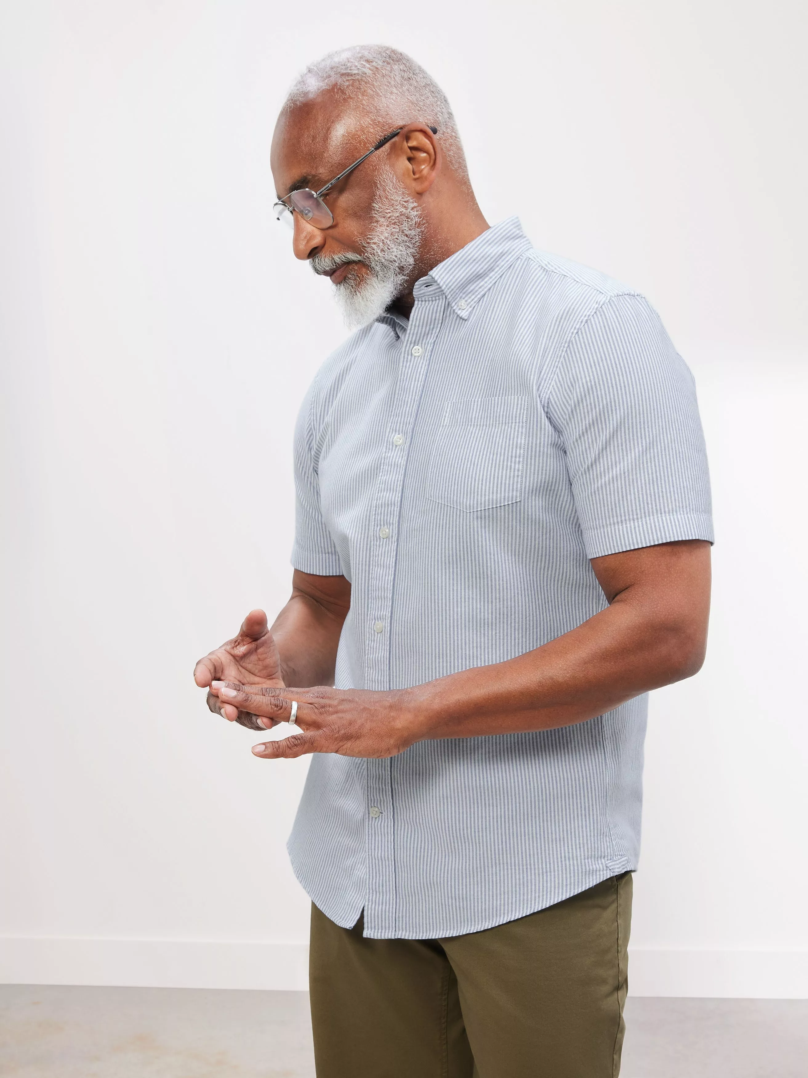 Made from pure cotton, this John Lewis & Partners shirt is framed by a classic button-down collar and stamped with pocket detailing at the chest. Cut to our redesigned regular fit, it offers flattering shaping through the waist yet is still generous enough in the back panel and box pleat to give you movement where you need it most.