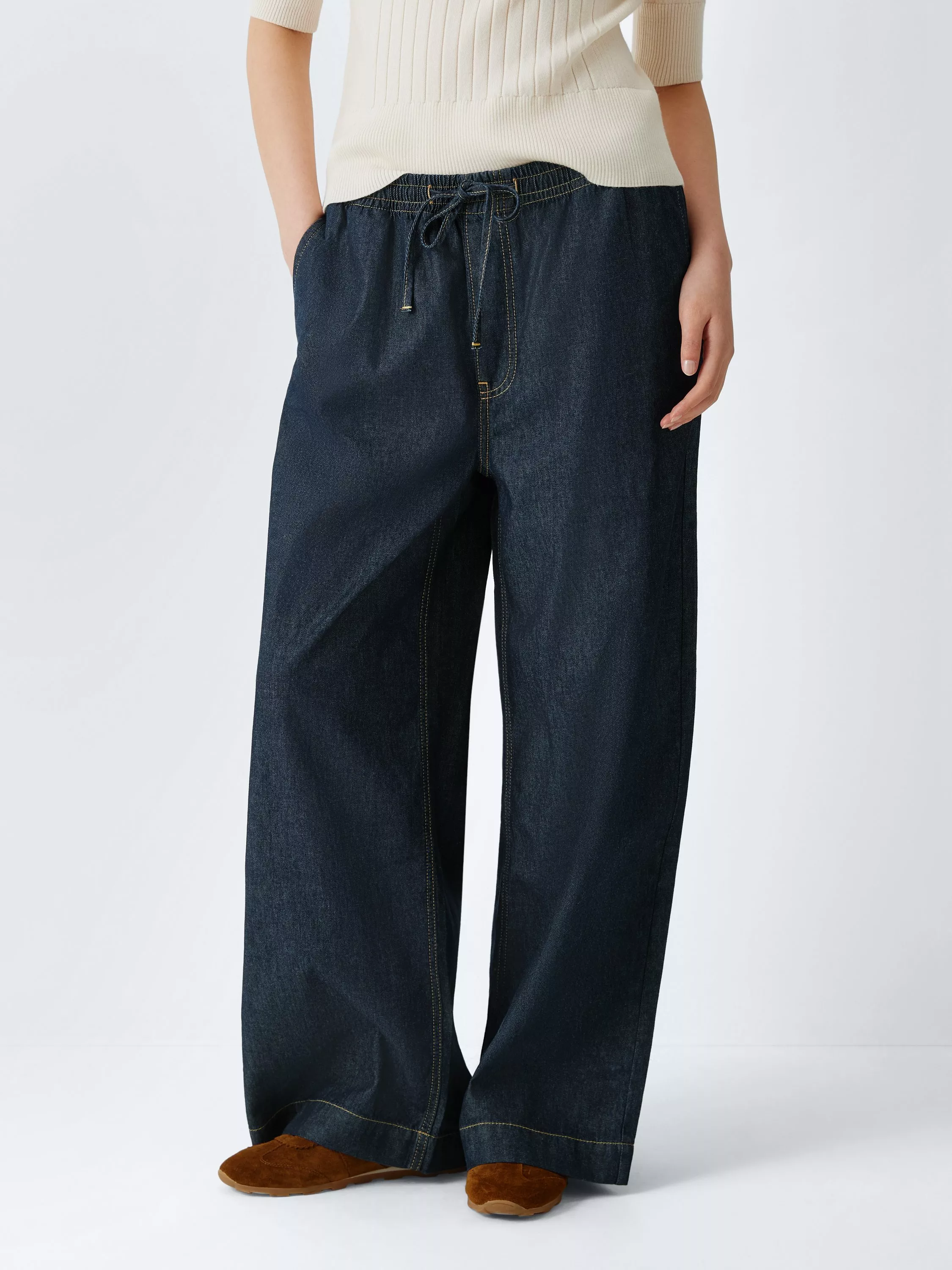 Drawstring waist jeans for a bespoke fit without the restriction of traditional denim. A sophisticated take on casual wear, they bridge the gap between regular denim jeans and your favourite off-duty joggers.