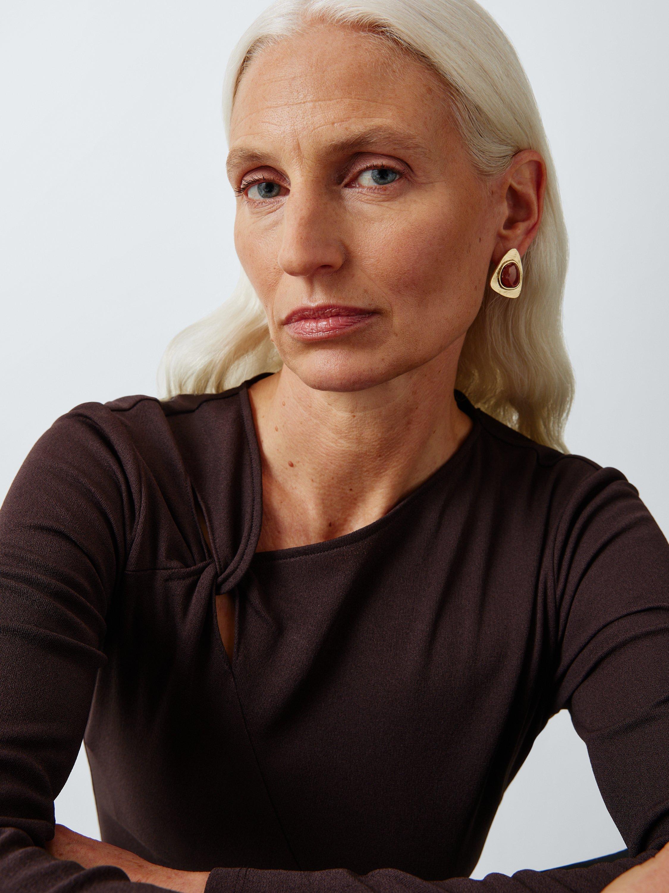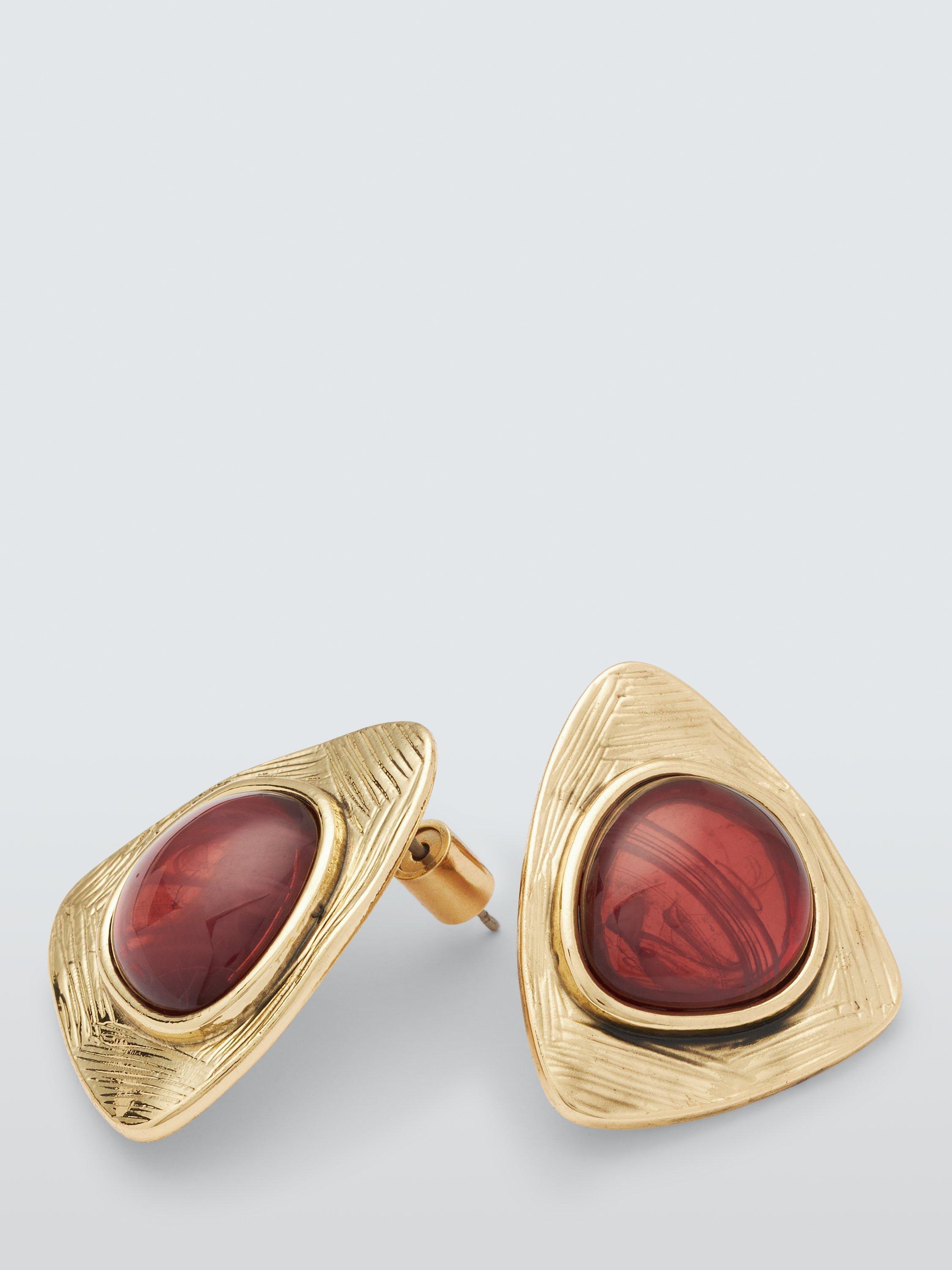 John LewisResin Semi Triangle Textured Stud Earrings, Gold/Brown
