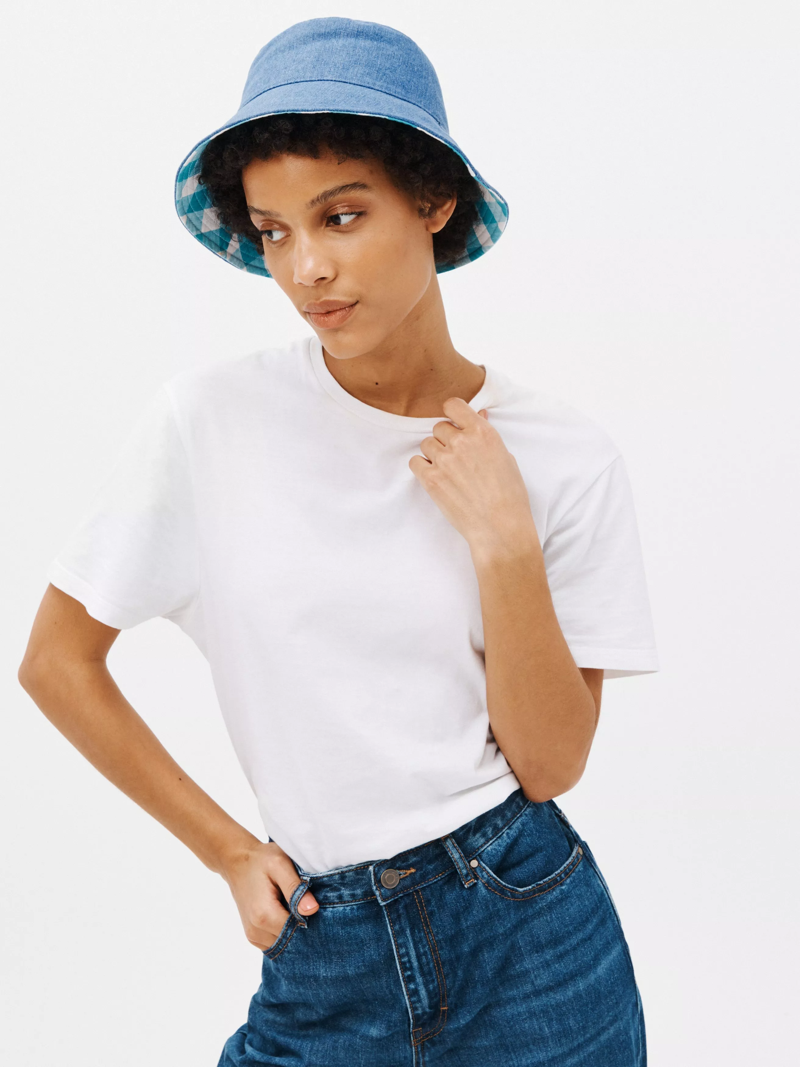 Get ready for the summer with our Reversible Denim Bucket Hat. Reversible for optimum versatility, this one's perfect for the beach or those glorious sunny days.