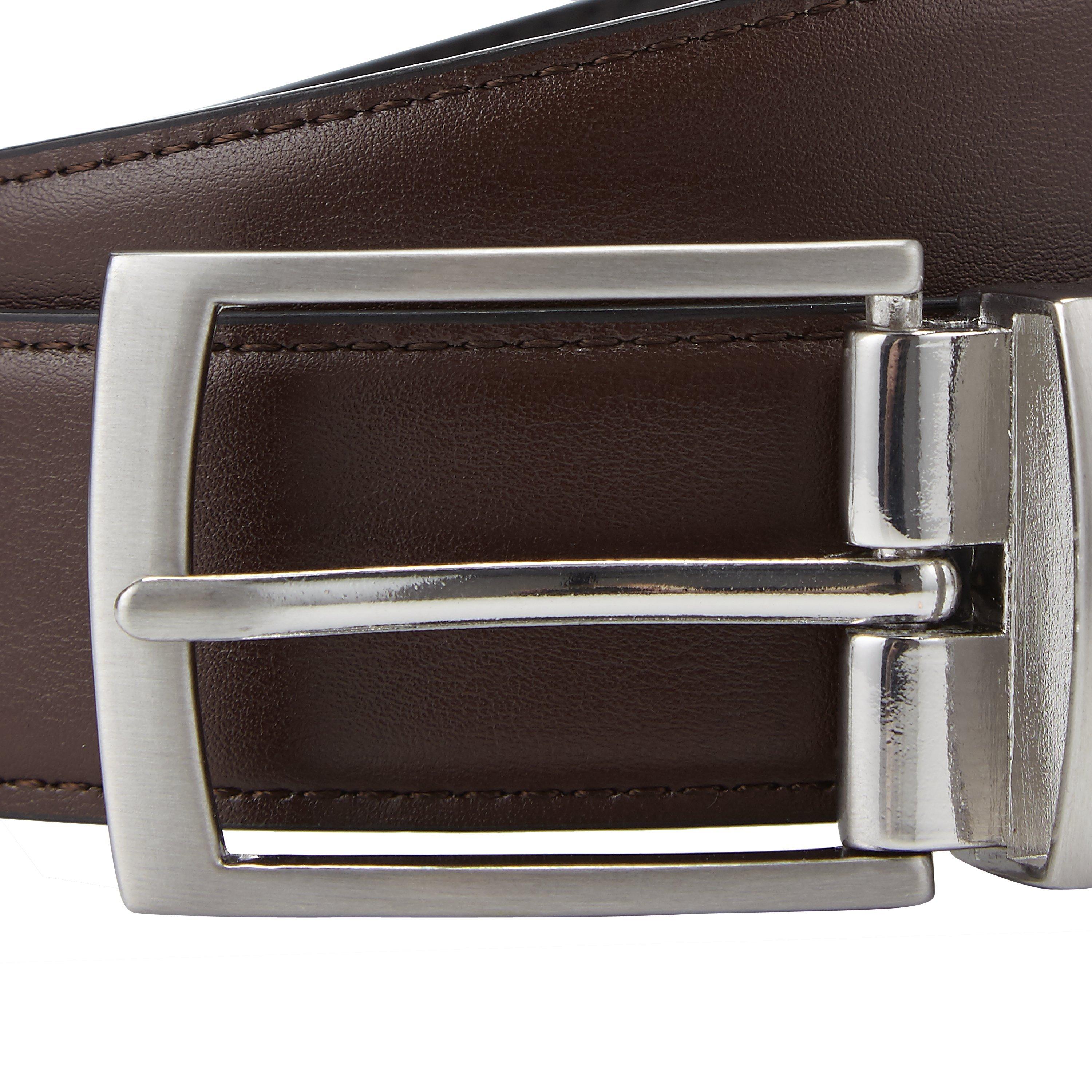 Finished with a lustrous metal buckle, it is brown to one side and black on the other - making it a versatile accompaniment to both casual jeans or your finest tailoring.