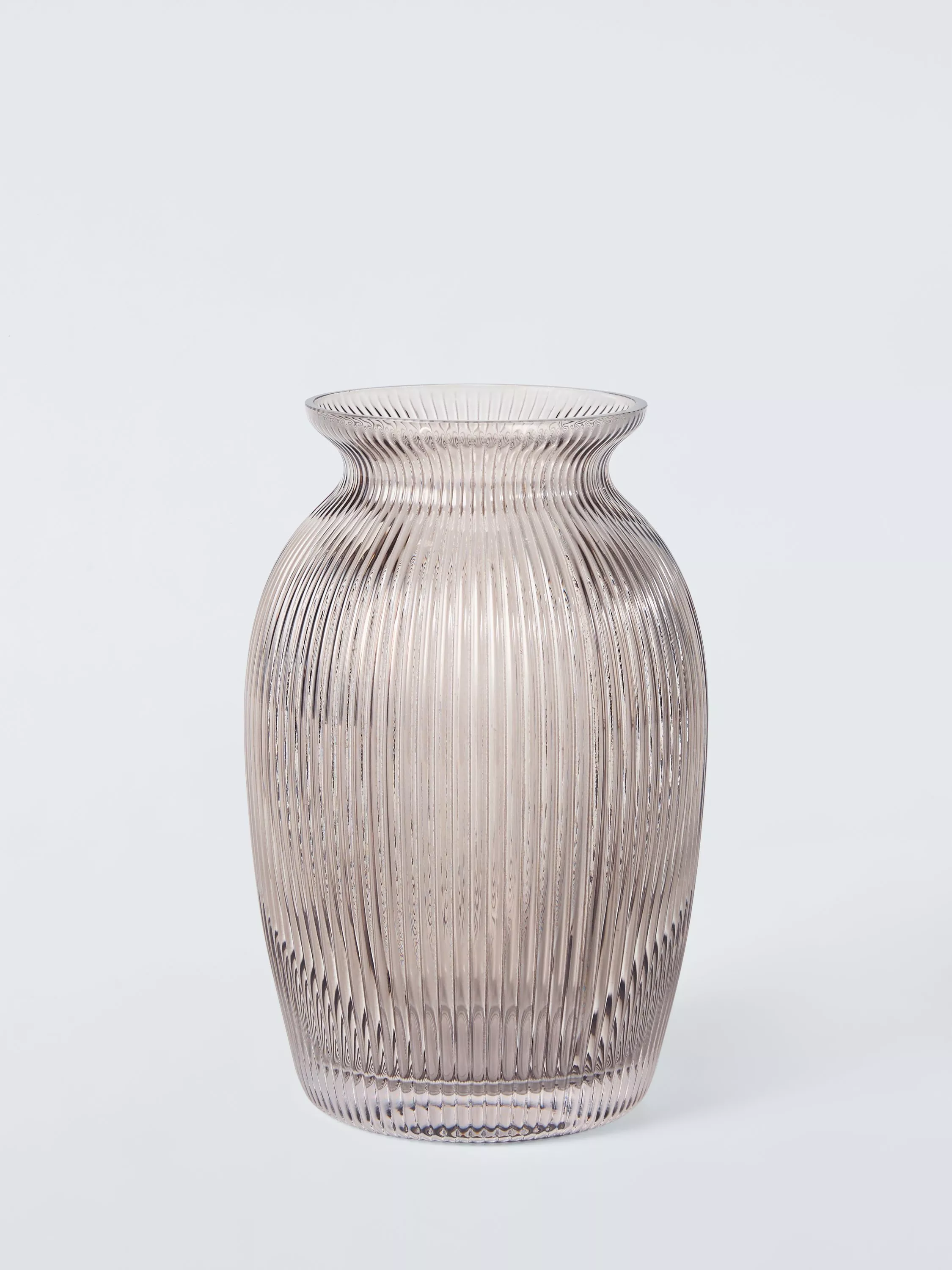 Ribbed glass vase in an urn shape for displaying small posy of flowers or foliage.