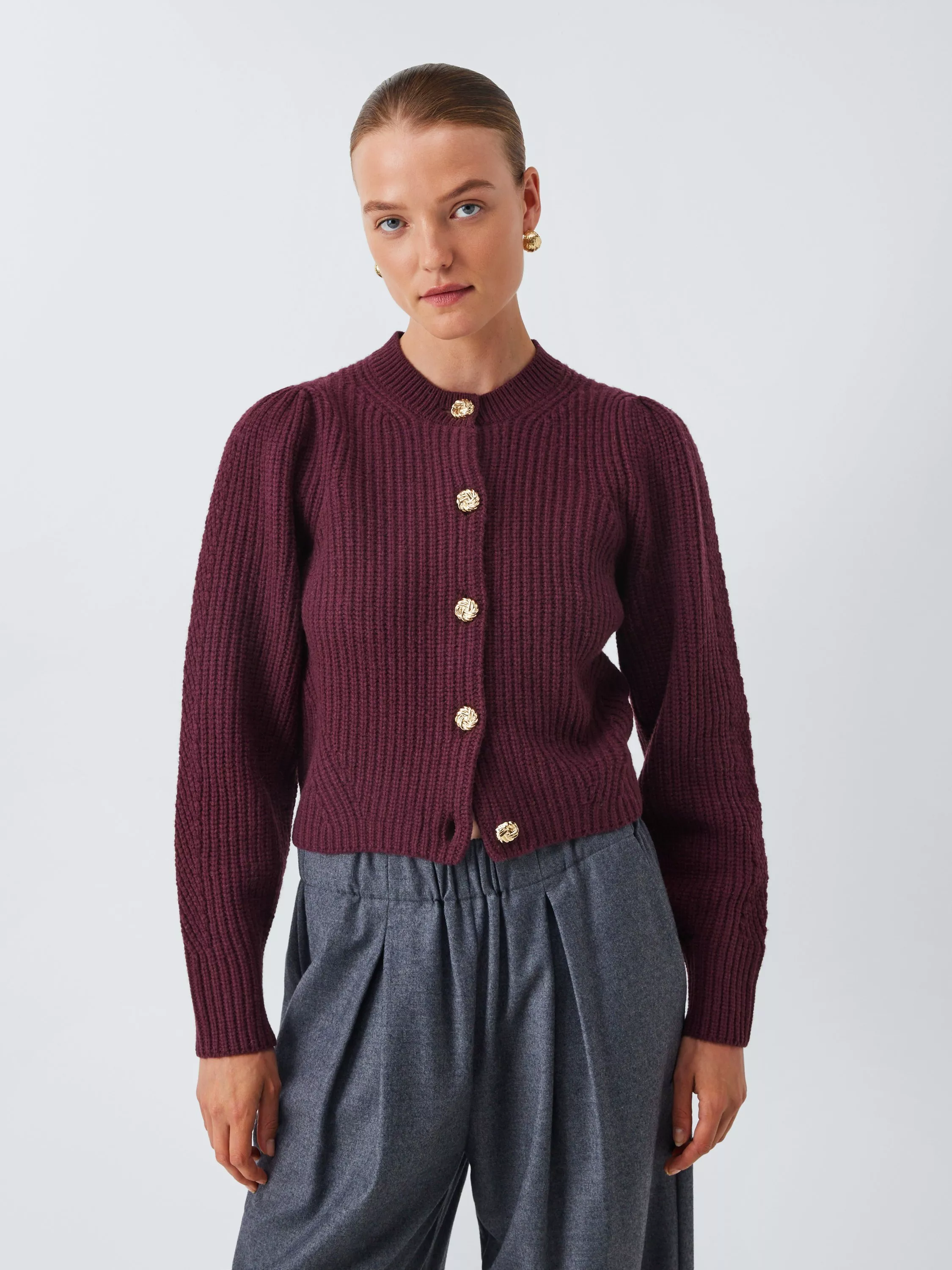 Discover the perfect blend of comfort and contemporary style with the John Lewis Ribbed Wool Blend Cardigan. This piece is designed to be a versatile and indispensable addition to your wardrobe, offering both warmth and a distinctive texture.
