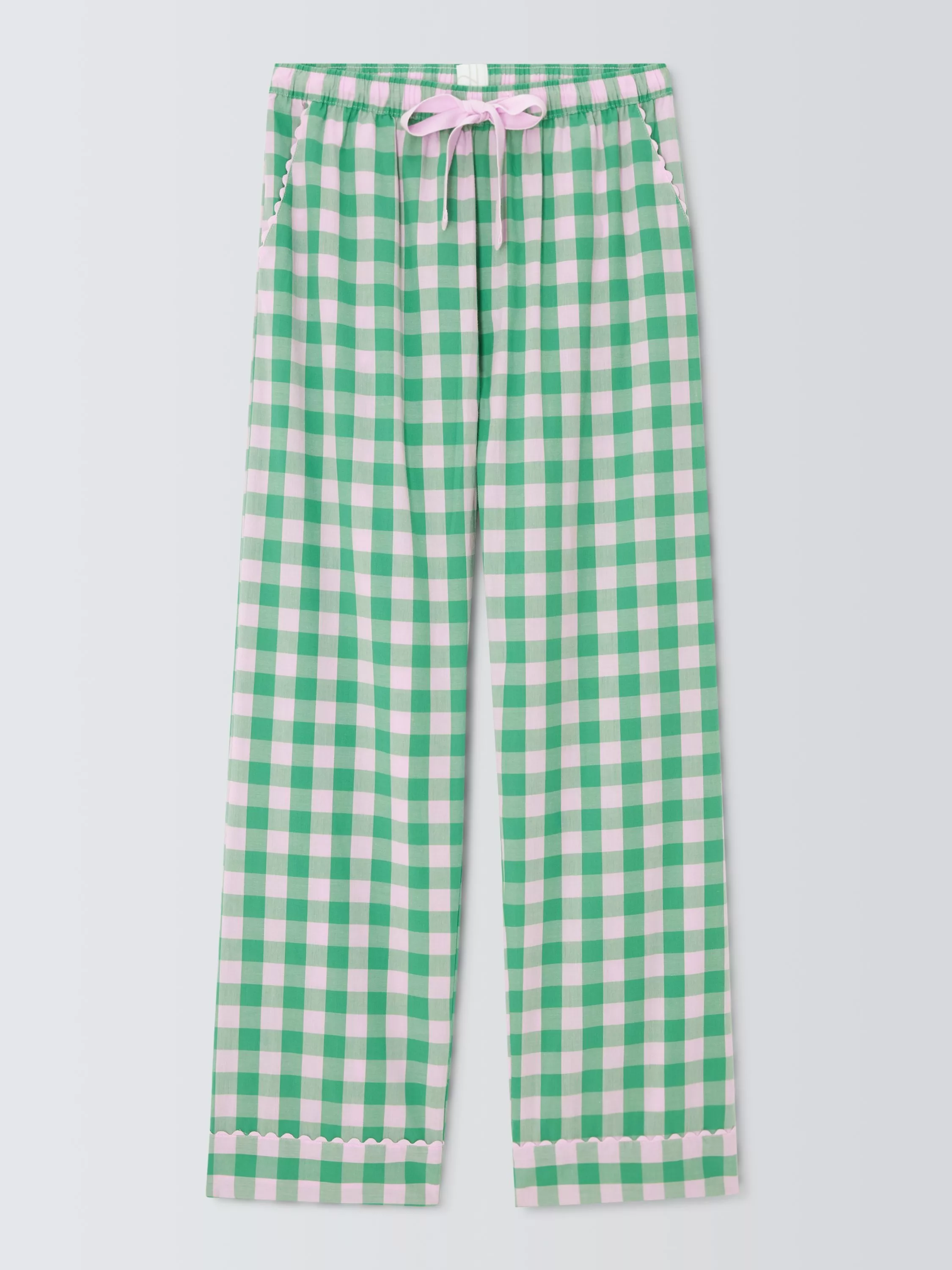 Ric rac trims throughout give a new twist to these classic gingham pyjama bottoms with an elasticated waistband and side pockets.