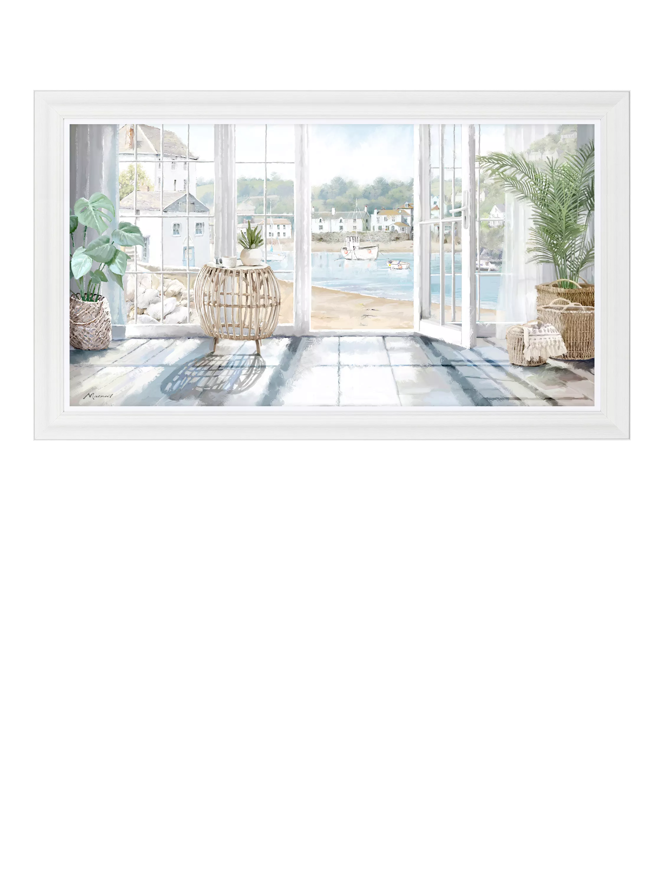 A harbour view offers the best vantage point in this framed coastal landscape by Richard Macneil. Made in the UK, it's finished with a hand-applied artist's texture gel and presented unglazed in a white frame, ready to hang on your wall.