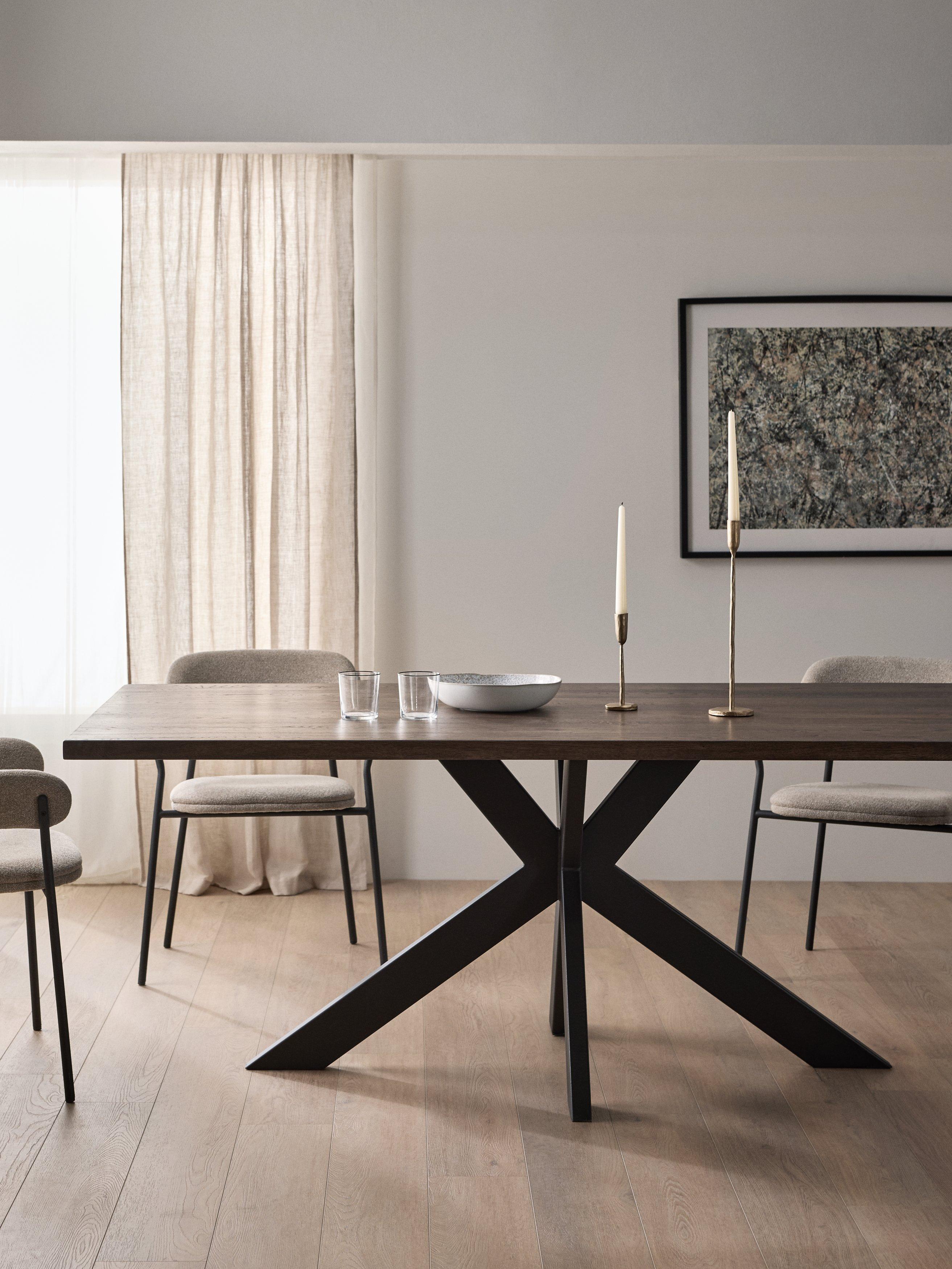 Ripley tables are produced in Europe, fusing the beauty and nature of wood and metal in a contemporary style. Ripley table tops are made of solid European oak with the option of straight or natural wavy edges and finishes available in either natural or black/brown oil.