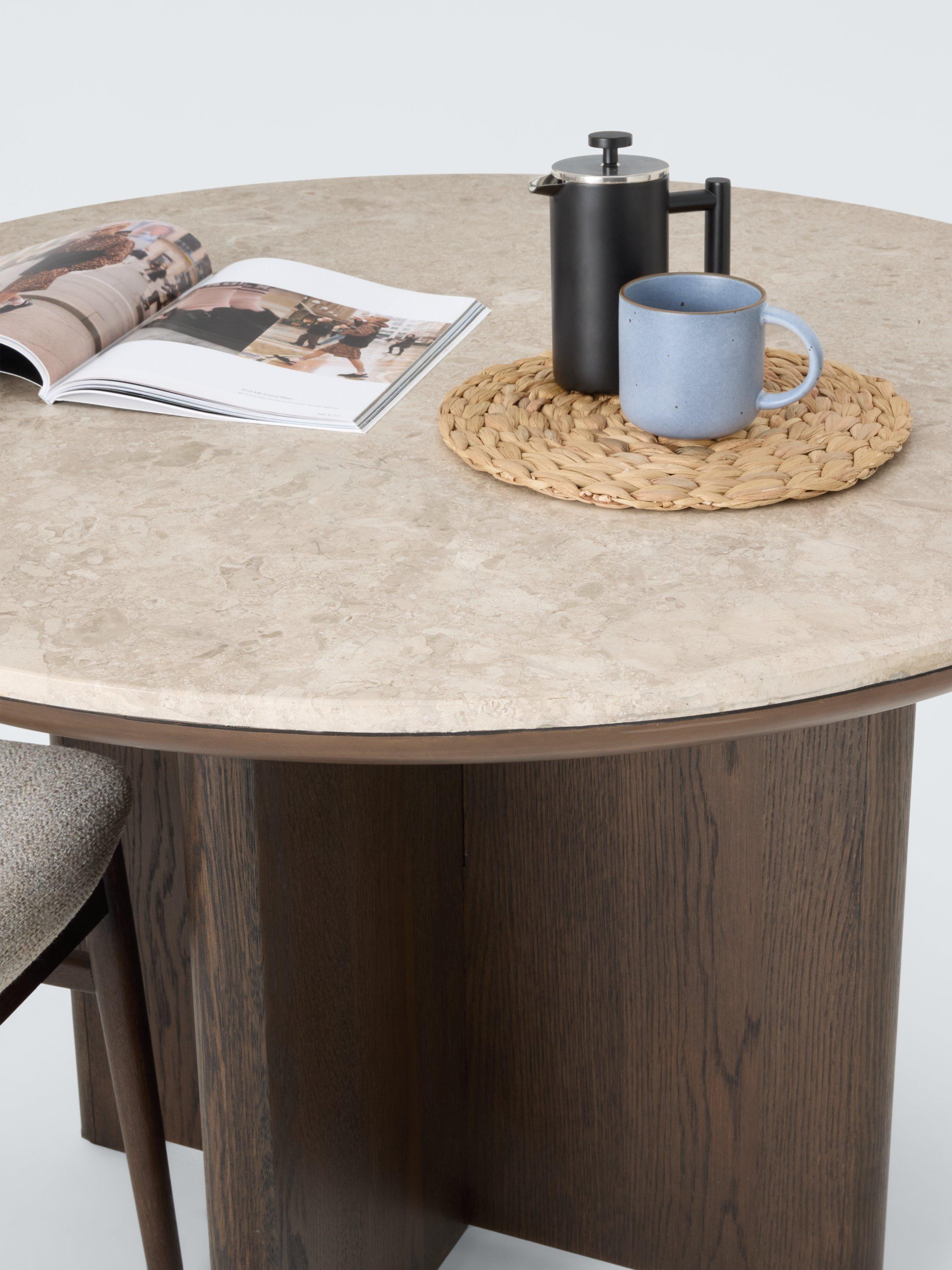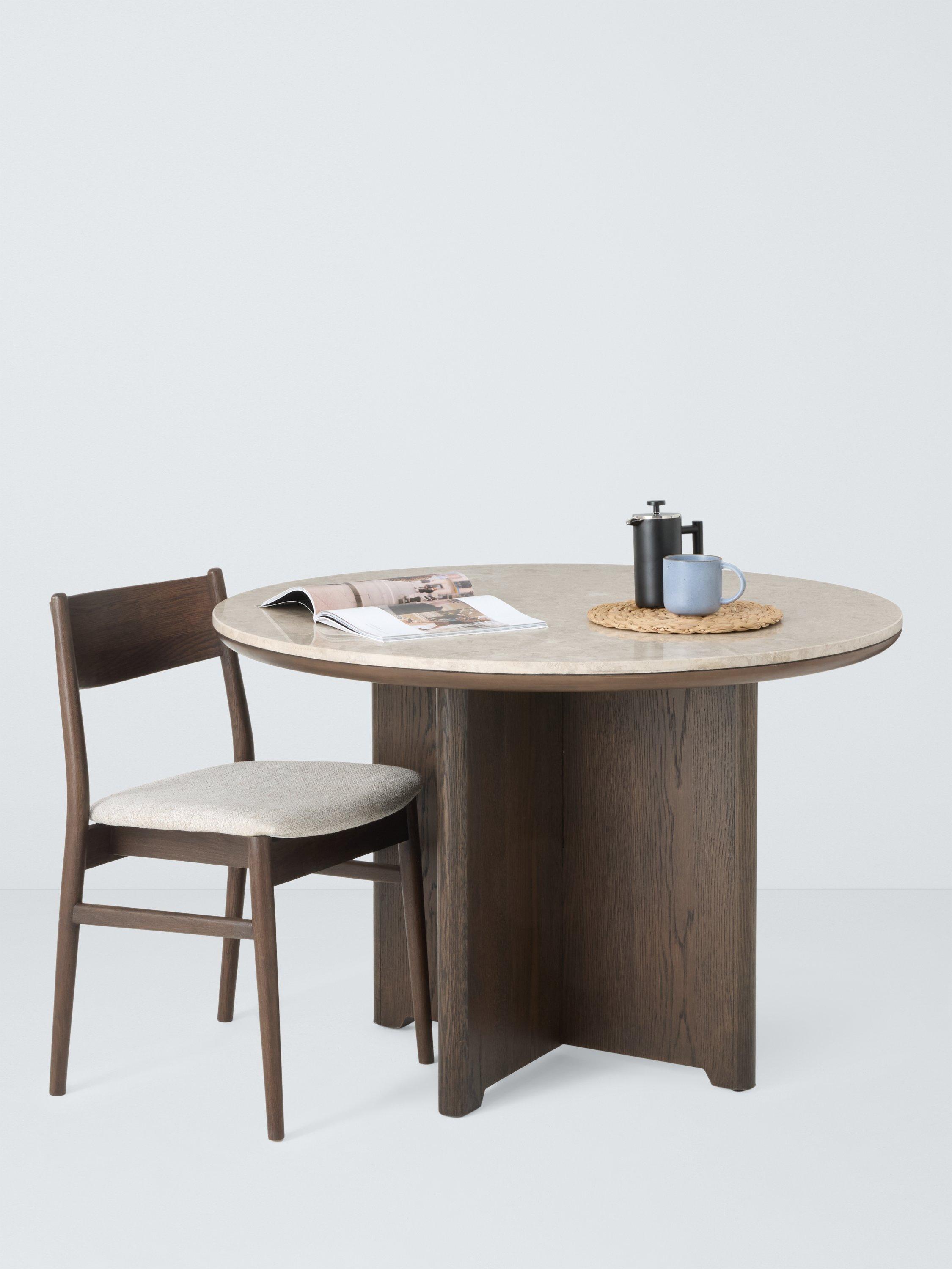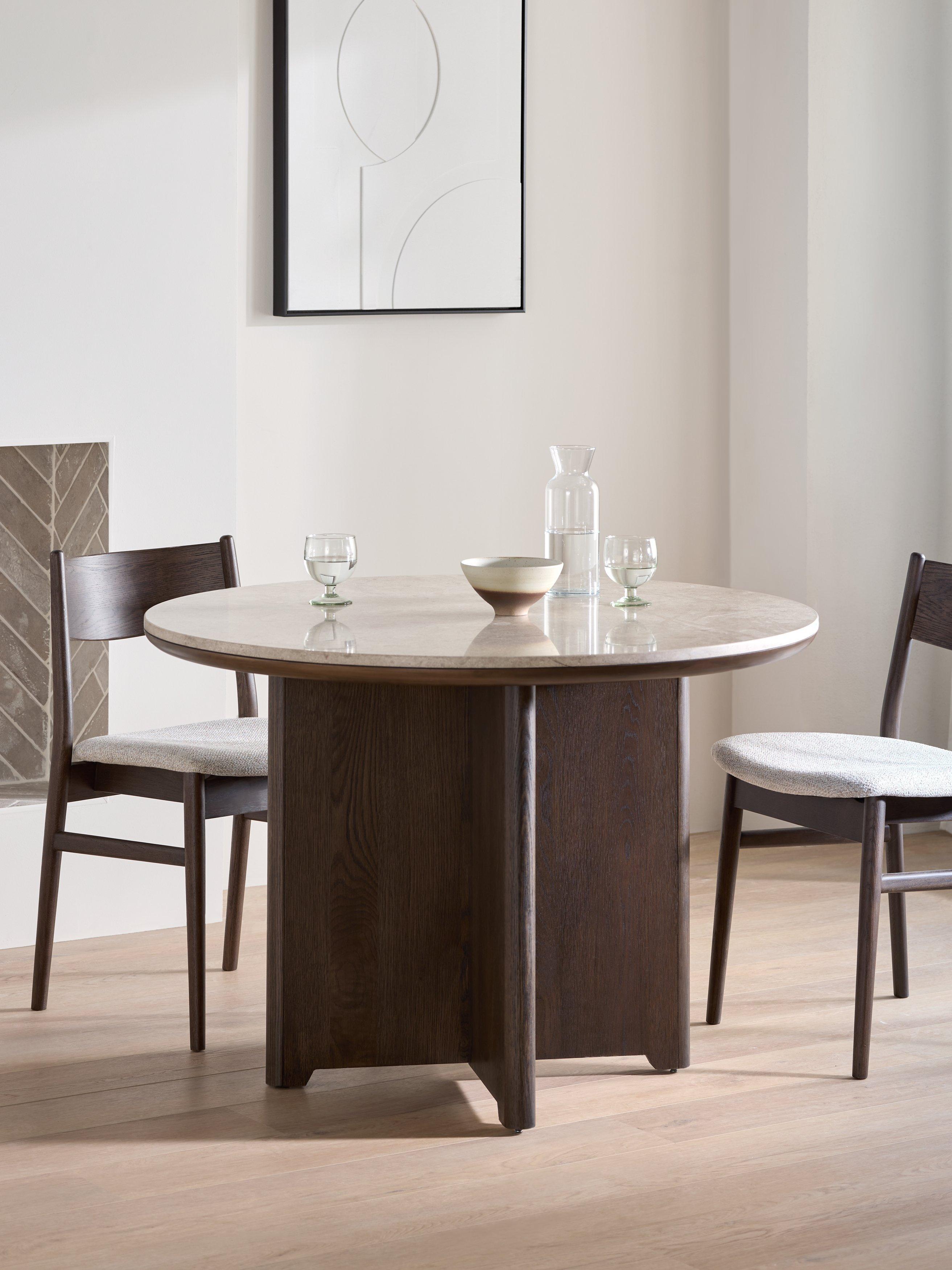 A beautiful round wooden dining table with a luxurious marble top, perfect for adding elegance to any space. The sturdy wooden base ensures durability, while the smooth marble top provides a timeless and sophisticated look.