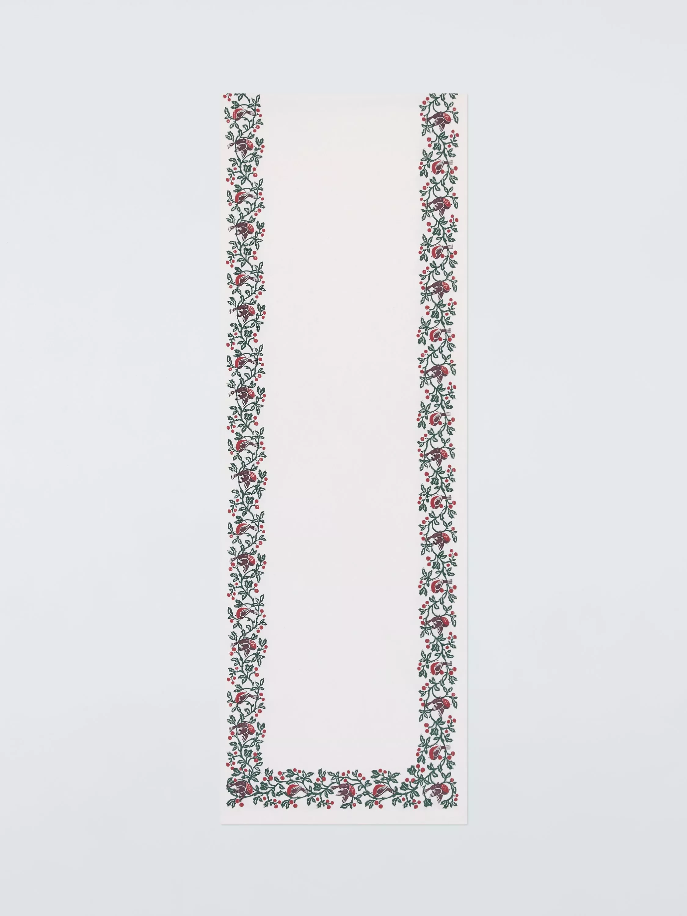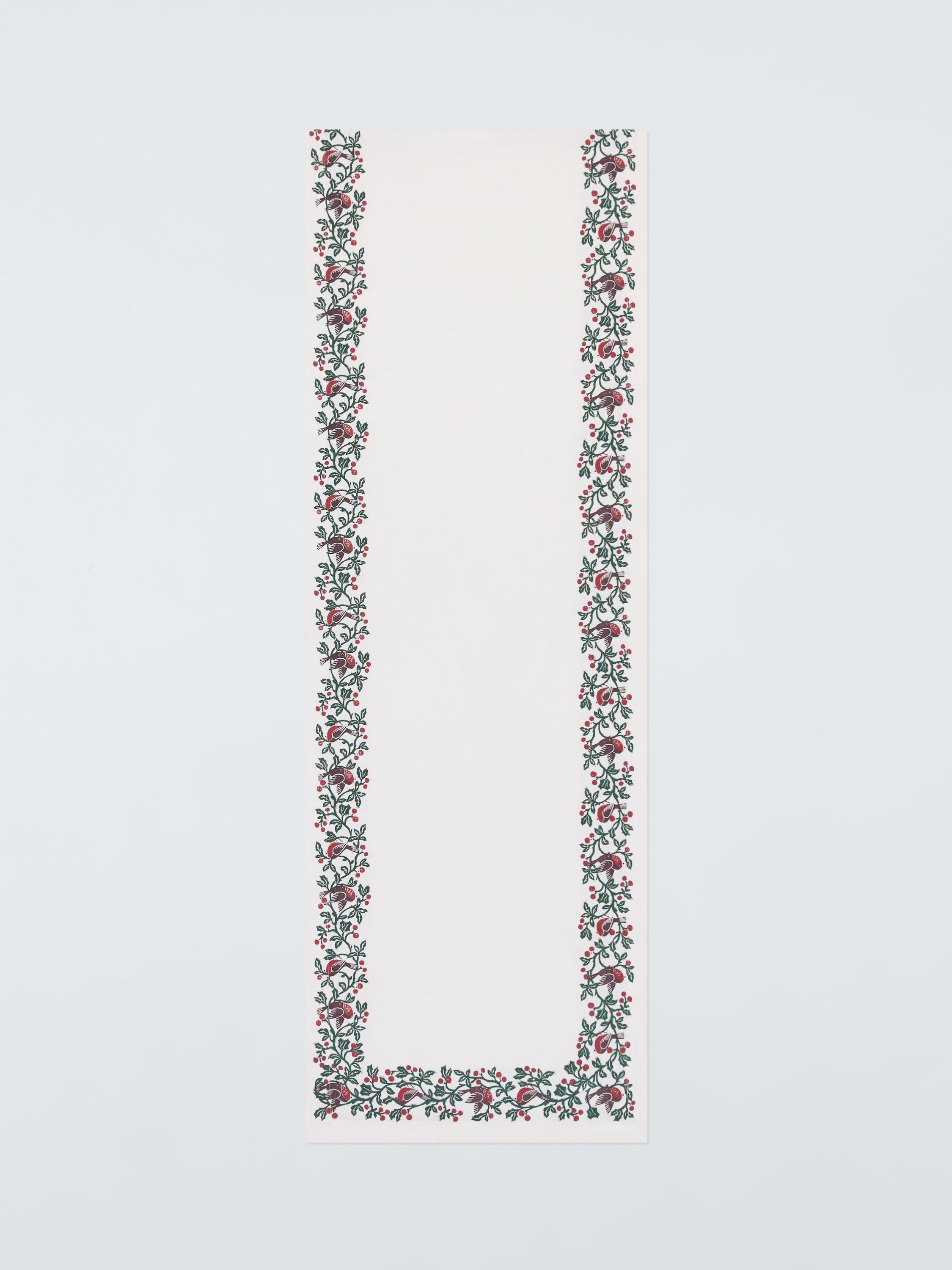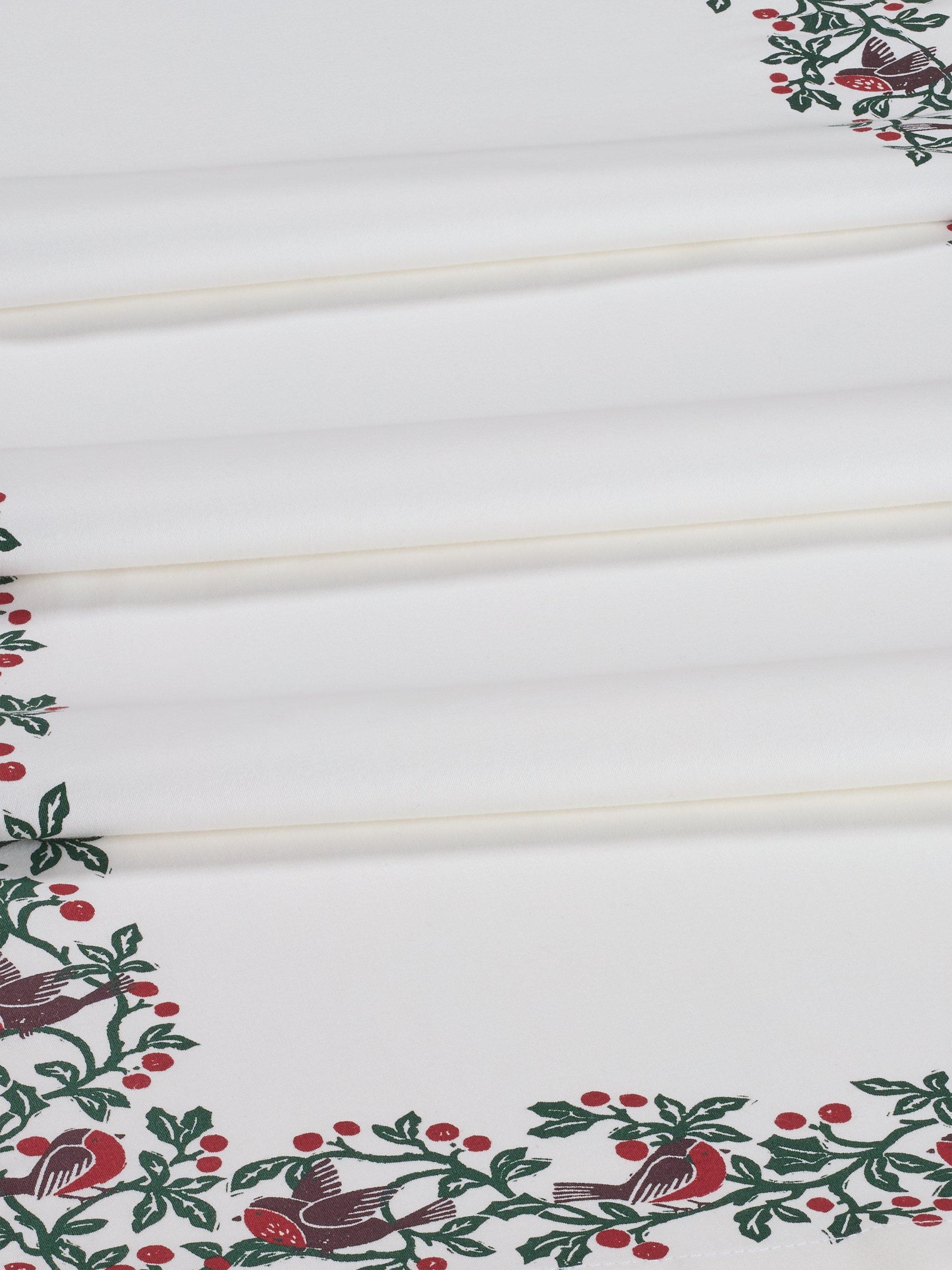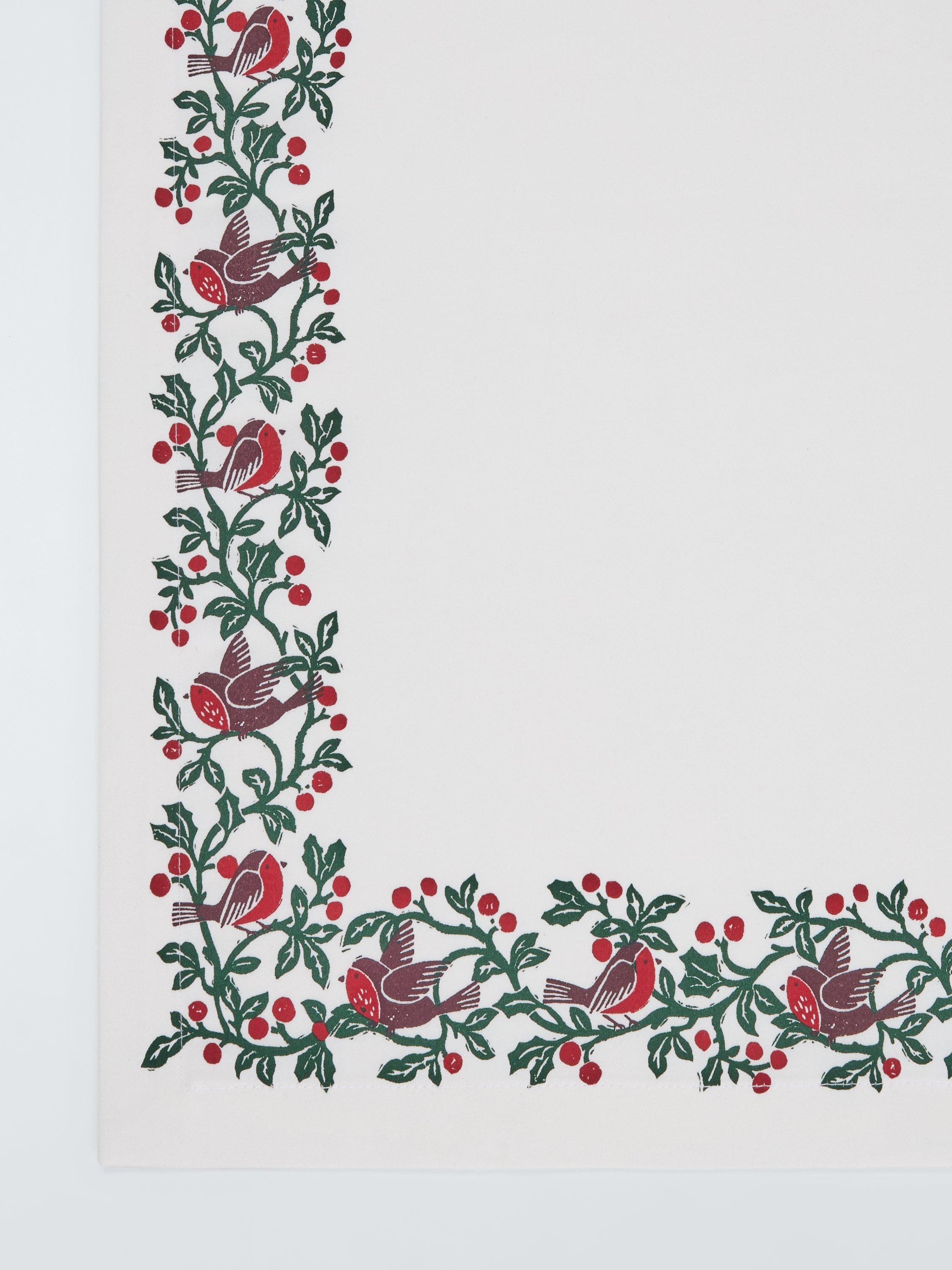 Festive table runner with a folk art-inspired robin design on the border. Made of cotton in Christmas colours, it's machine washable for easy cleaning. Team it with the matching napkins to complete the look for your table.