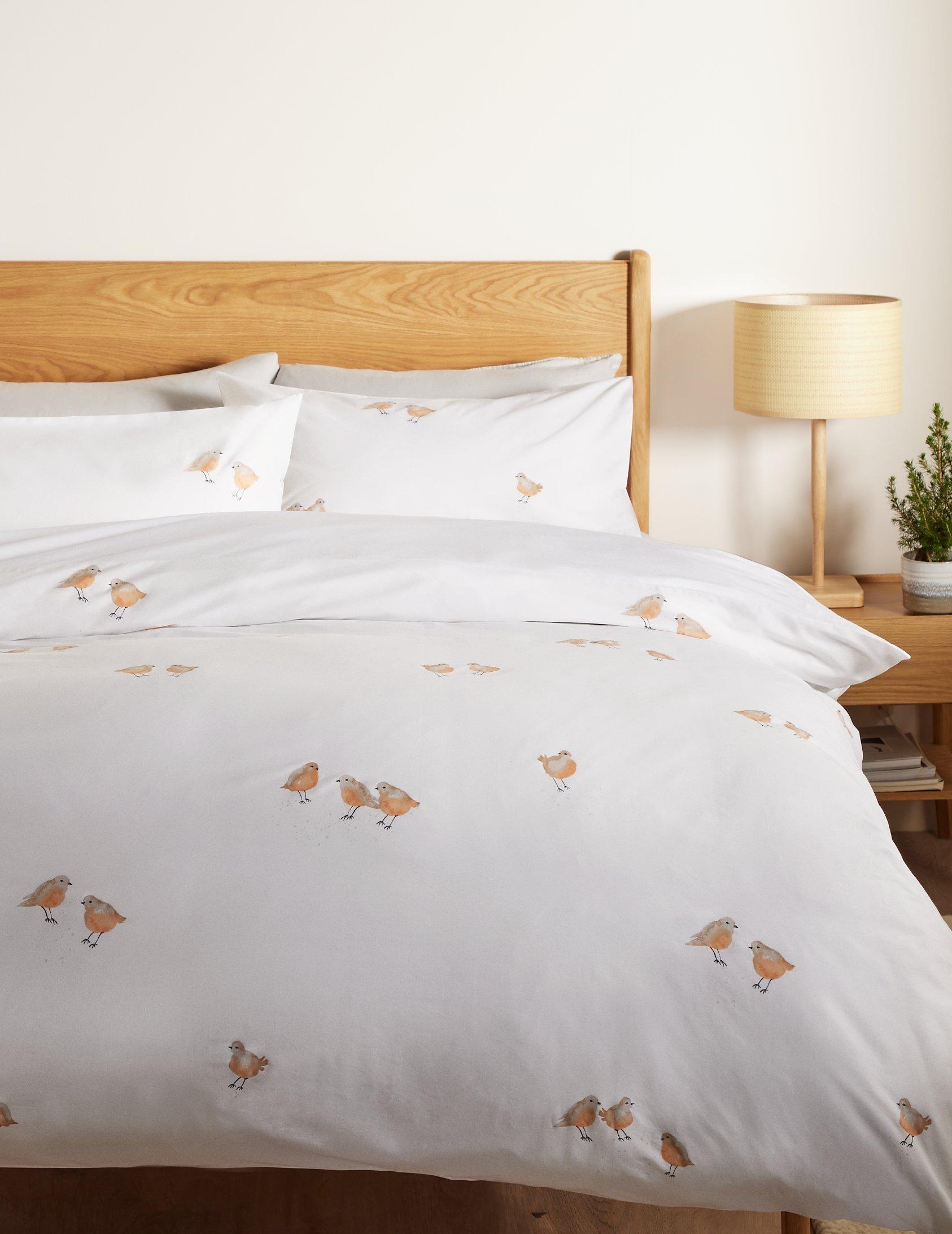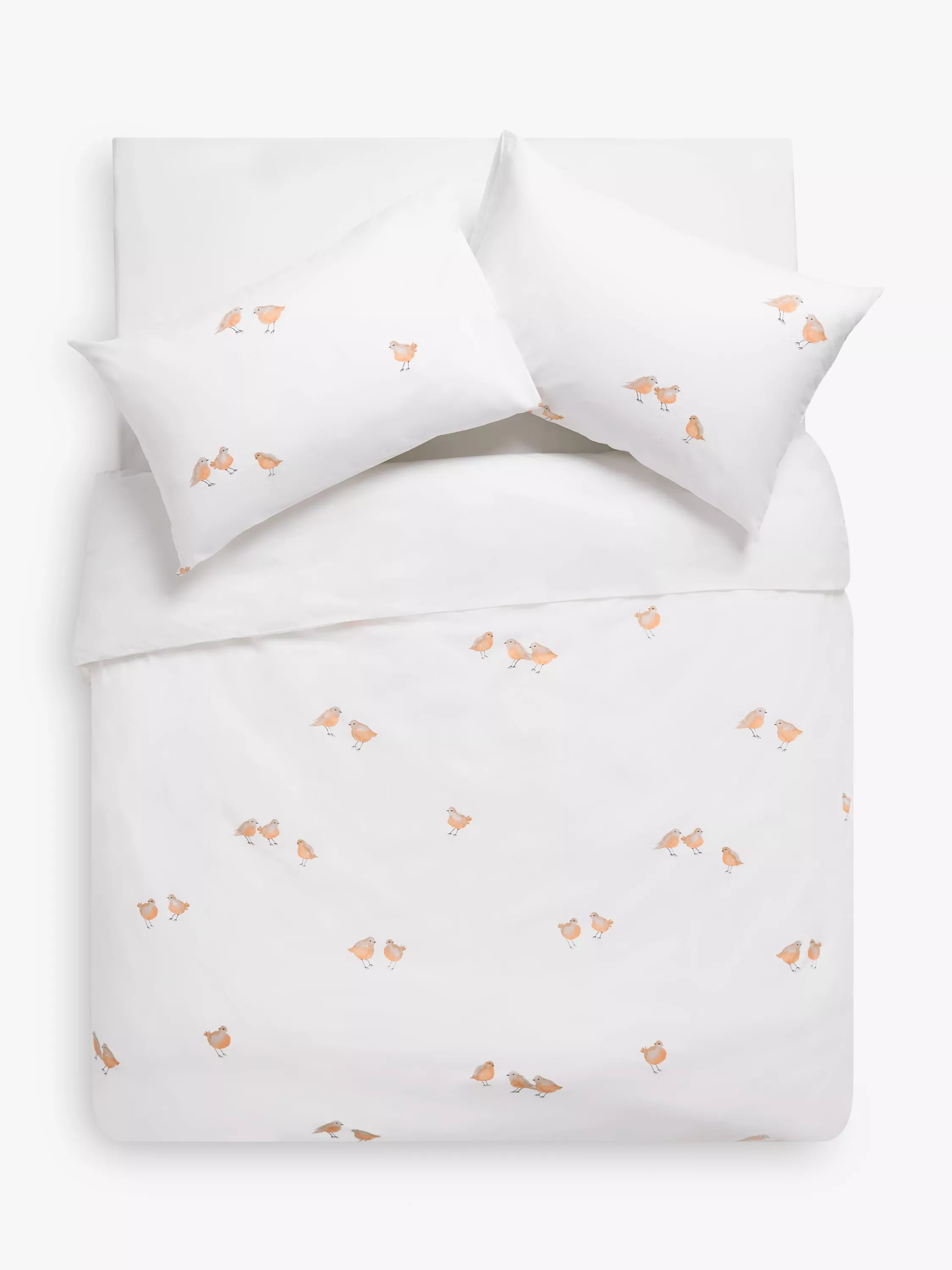 Give your bedroom or guest room a fun, festive makeover with this cute 100% cotton robins duvet cover set.