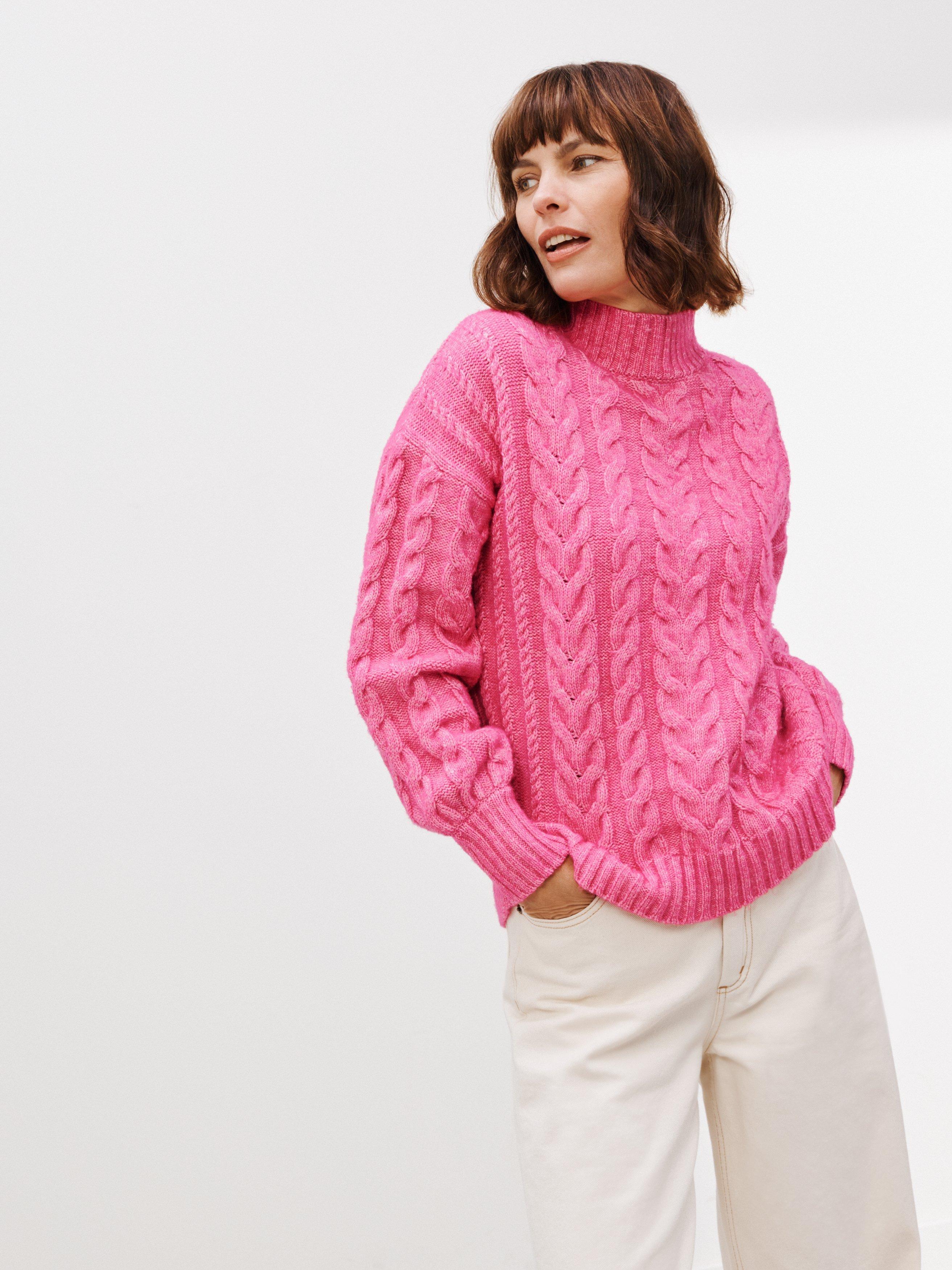 Ahoy there! Take a look at our update on the classic cable knit, a chunky knit that's not heavy to wear thanks to the lofty yarn we've used. We've THOUGHTFULLY DESIGNED this traditional knit with an elliptical hem at the front which is a little lifted and more flattering to wear.