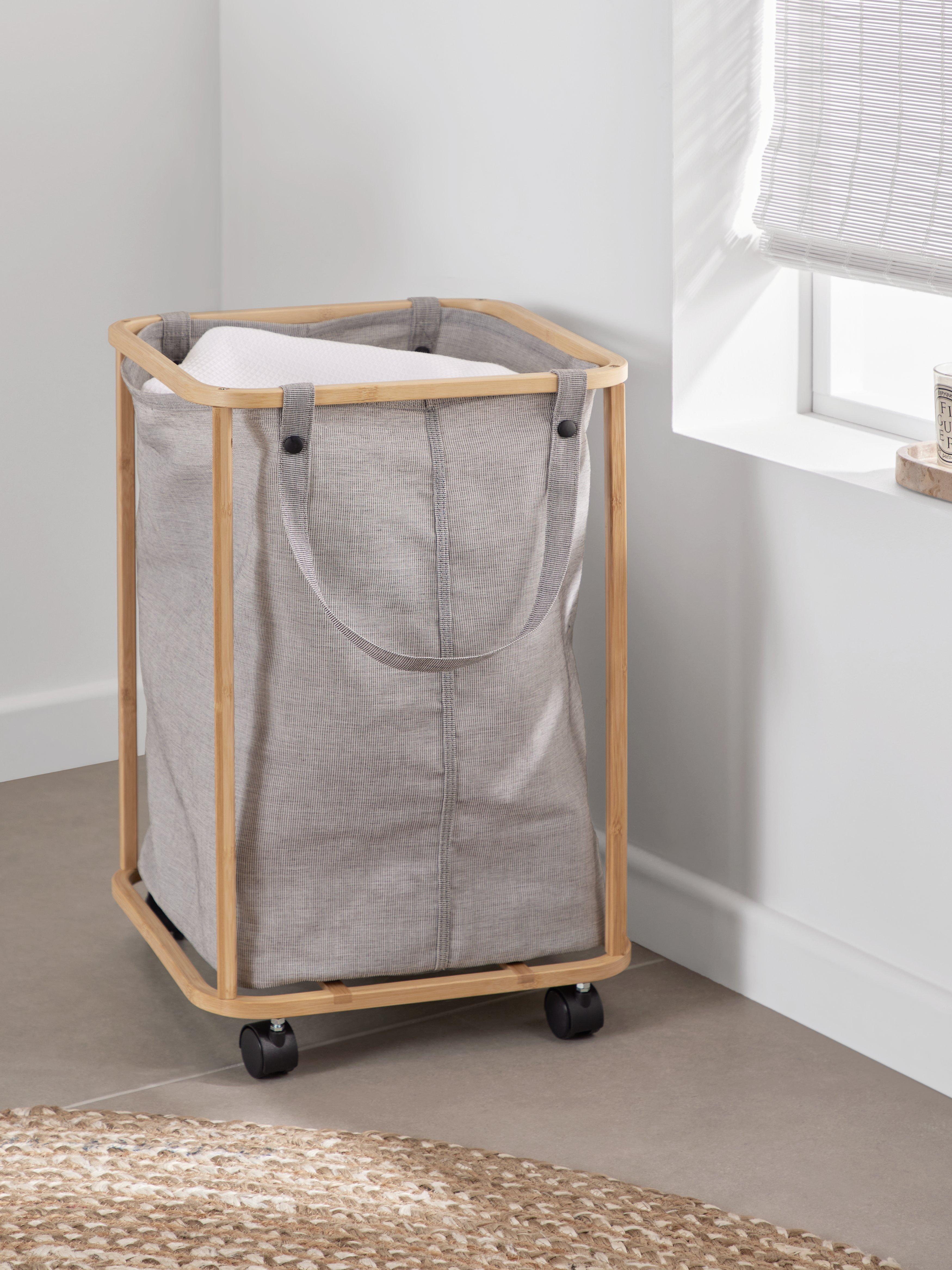 The rolling laundry hamper glides smoothly with built-in casters for effortless movement. Its cleverly designed handles double as shoulder straps, making it easy to carry and versatile in use. Laundry hamper has the capacity of 67L and can hold up to 6.5kg.
