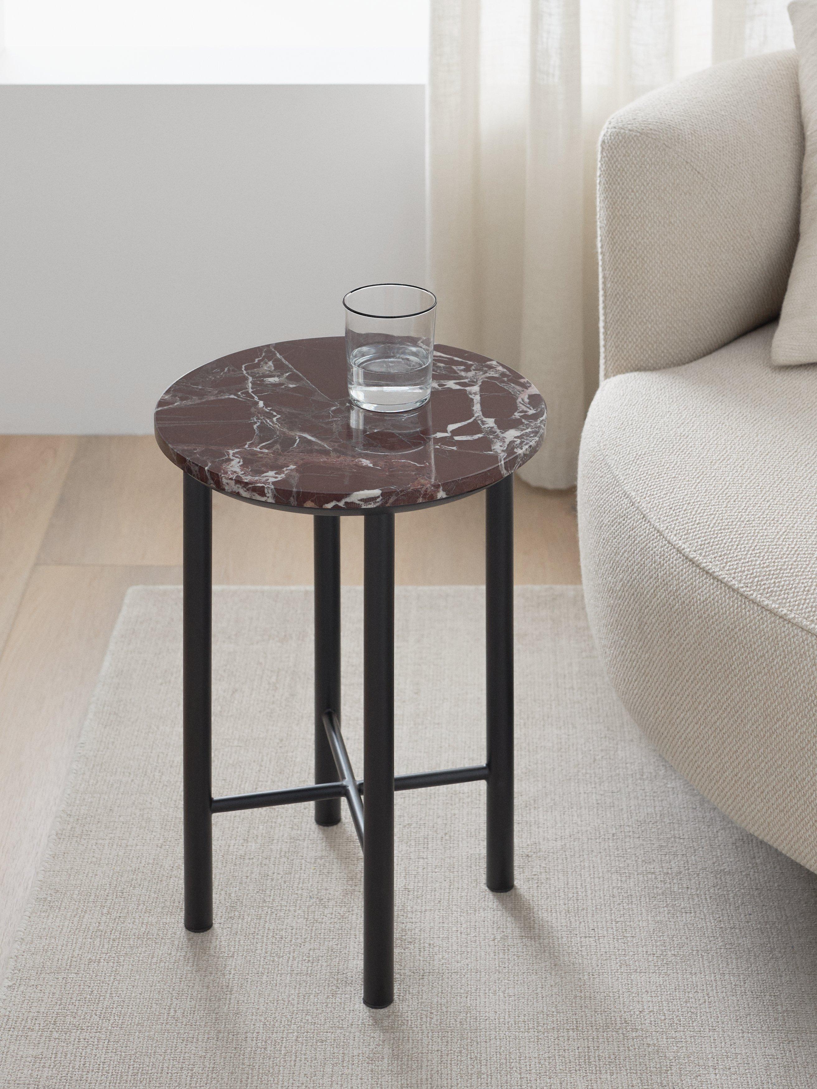 Elevate your space with the Rosso marble side table. Crafted from exquisite mulberry-coloured Italian marble it adds timeless elegance and sophistication to any room. The striking red hue and luxurious finish create a bold statement piece that's perfect for contemporary or classic decor.