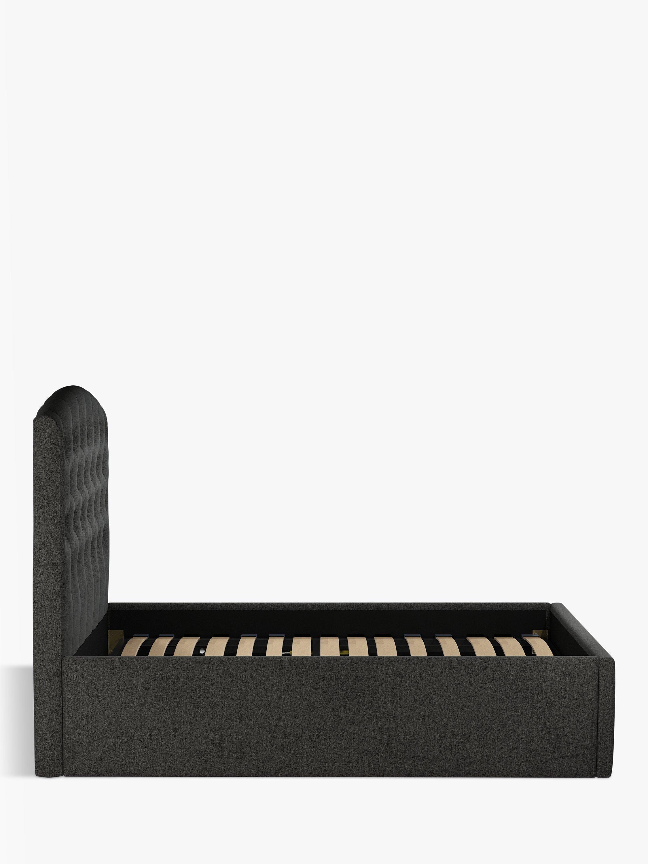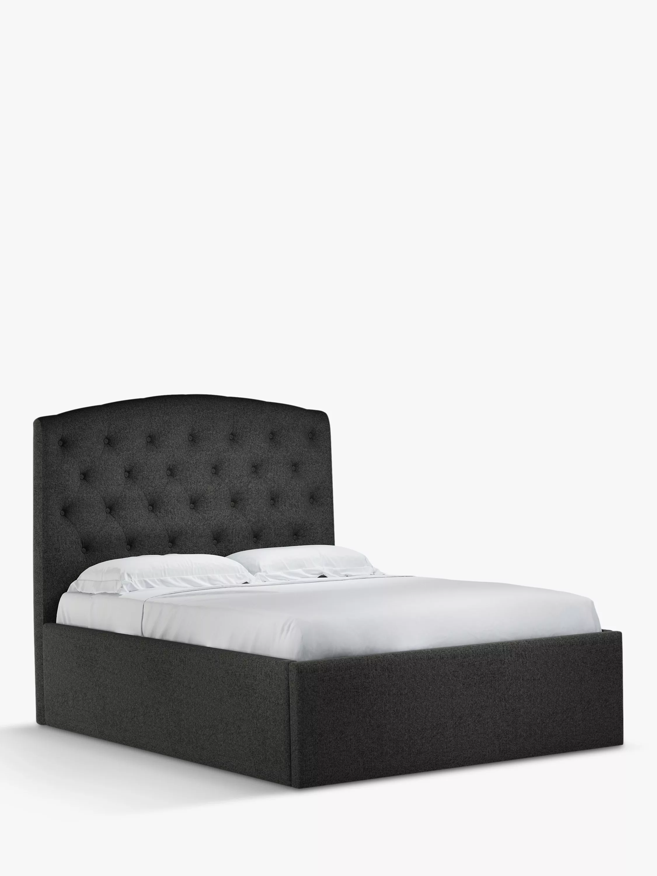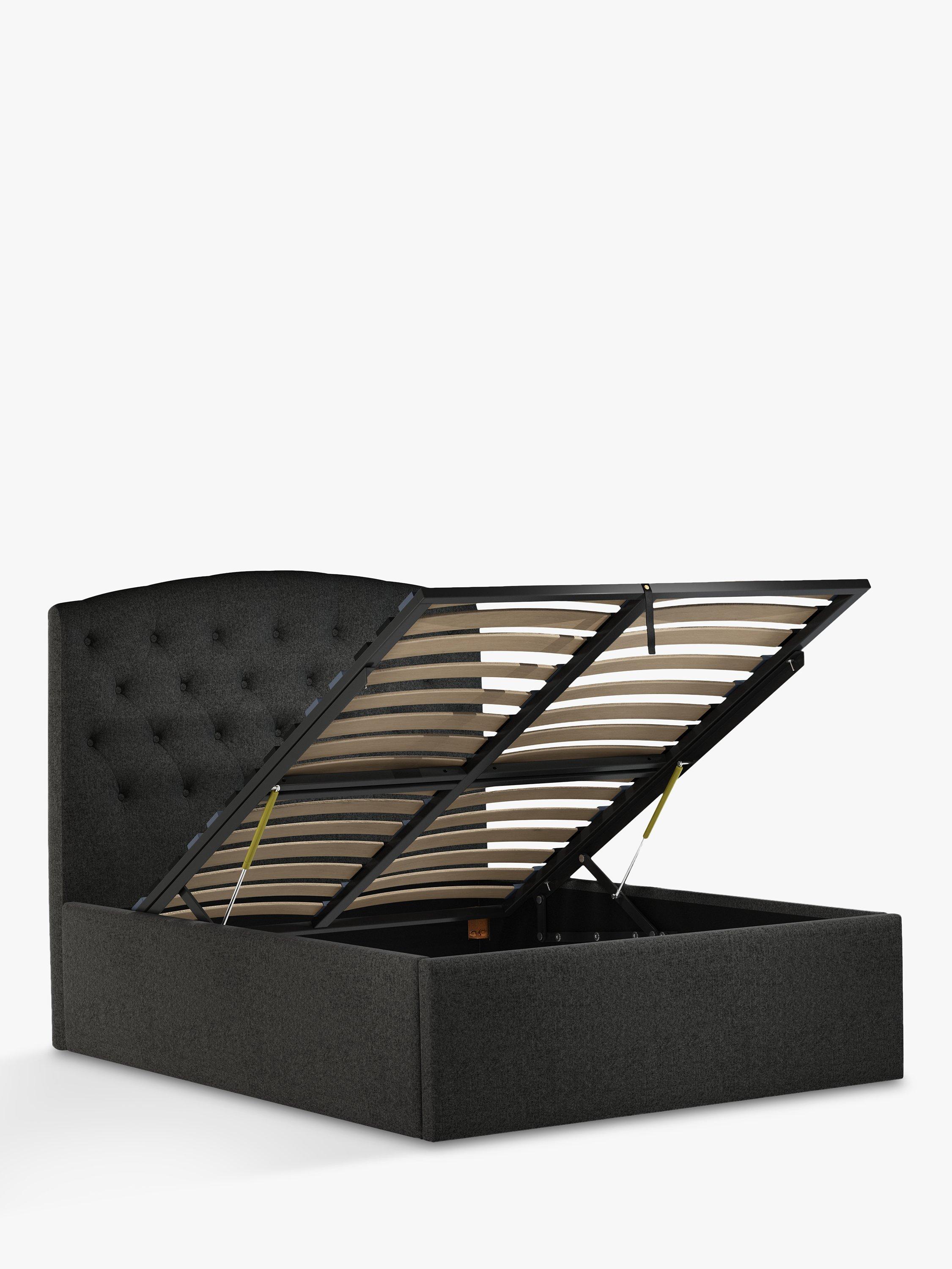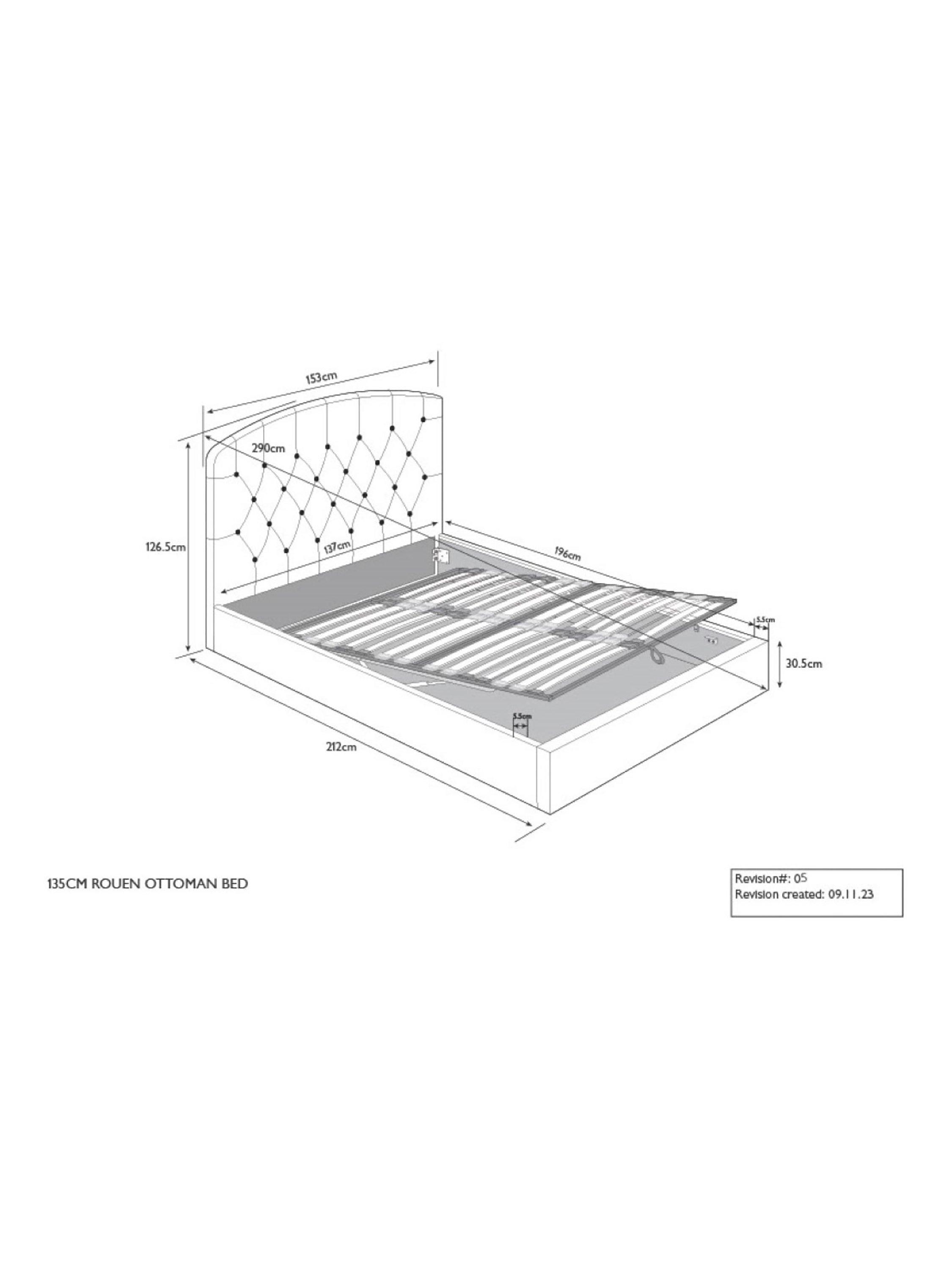 Our Rouen ottoman storage bed frame has a classic design that's enhanced with button detailing across the headboard. A handle and hydraulic arms facilitate an easy manual lift-up, revealing a functional and spacious storage space for spare linens. Sprung slats provide additional support for you and your mattress.