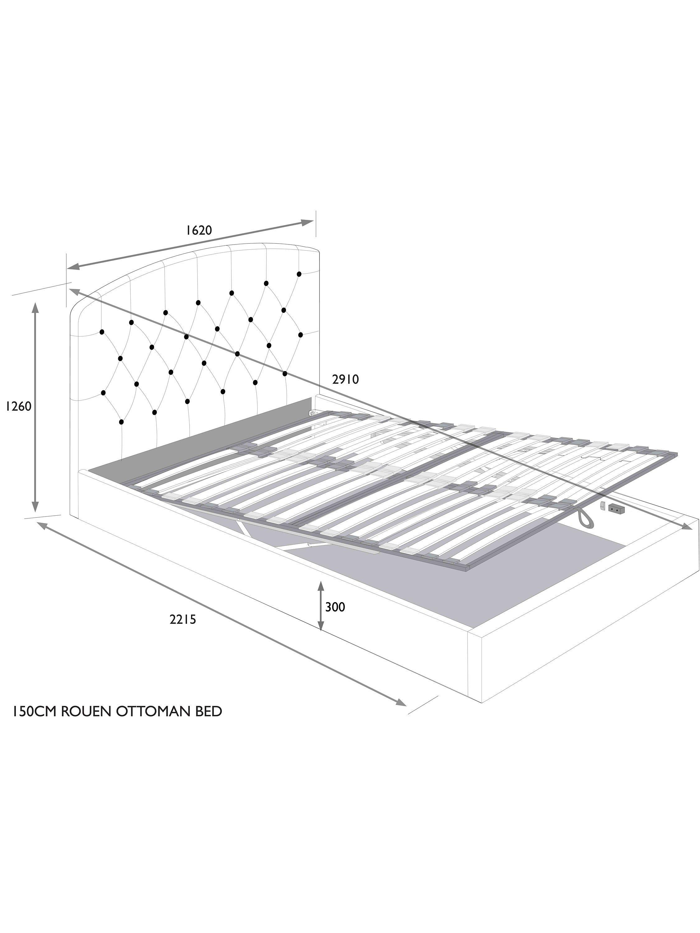Our Rouen ottoman storage bed frame has a classic design that's enhanced with button detailing across the headboard. A handle and hydraulic arms facilitate an easy manual lift-up, revealing a functional and spacious storage space for spare linens. Sprung slats provide additional support for you and your mattress.