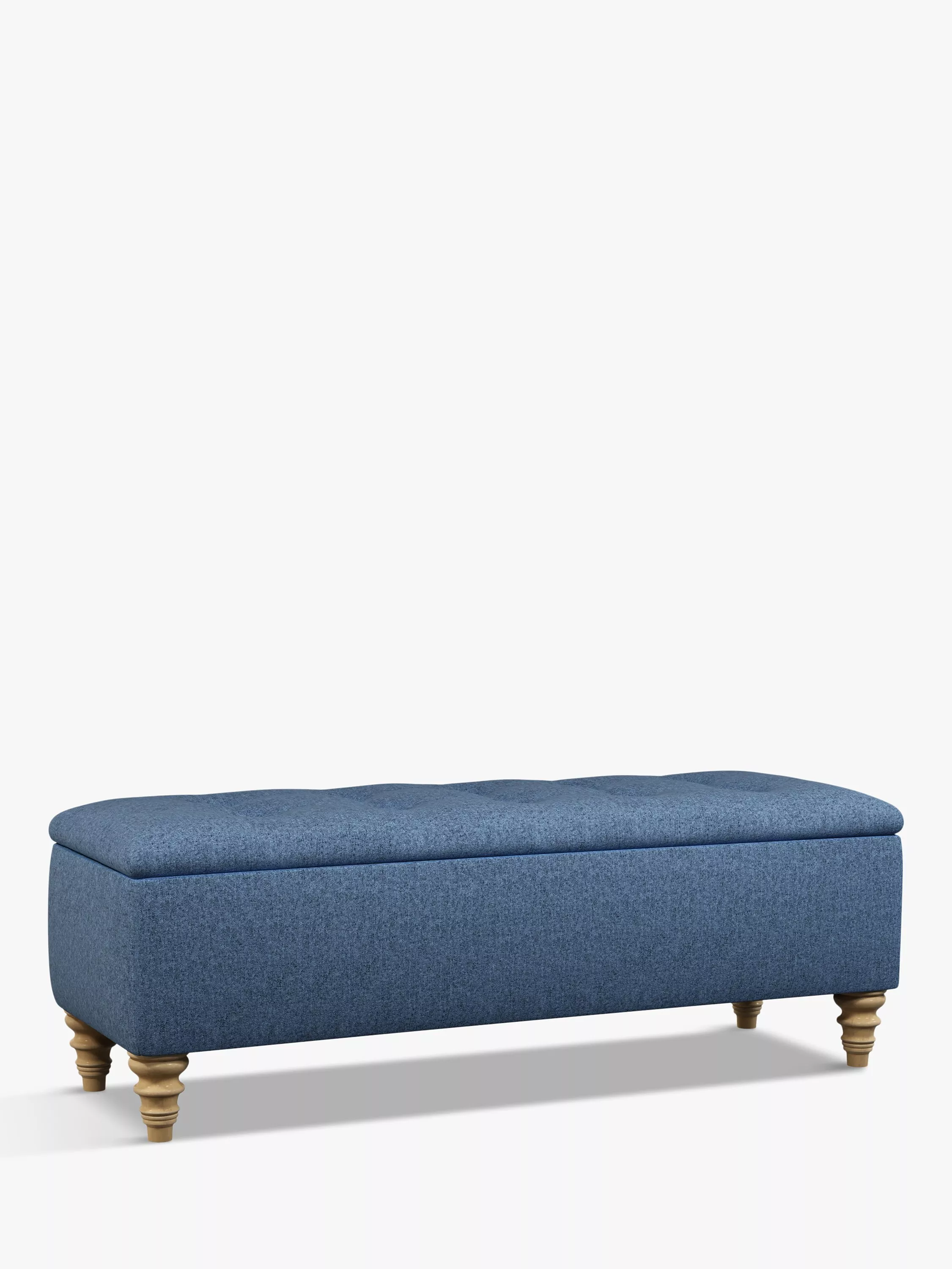 The lid of our Rouen ottoman storage box features button detailing for a traditional look. Style it at the foot of your bed frame and use it to store spare blankets, throws and linens.
