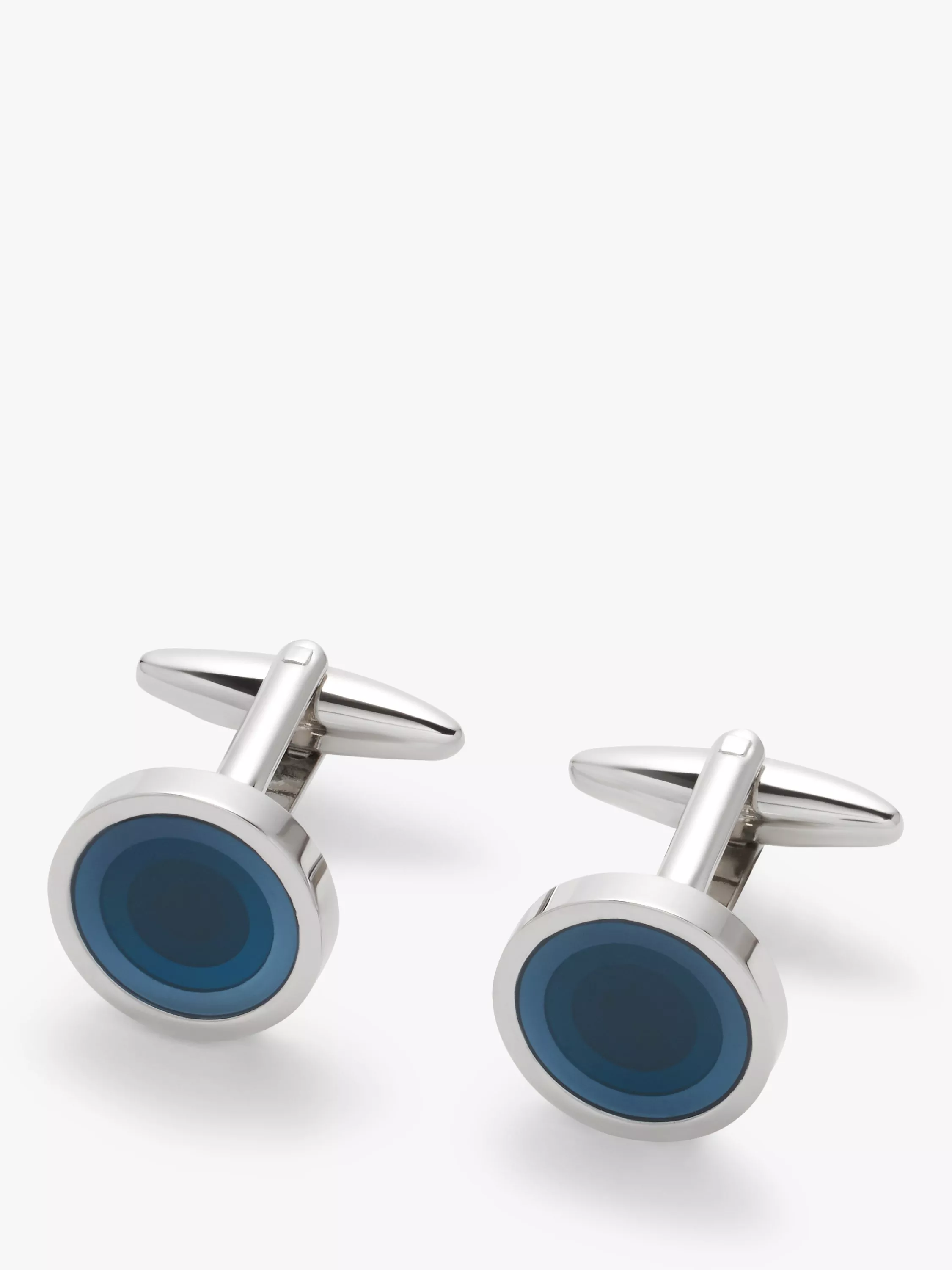 Complete your formal attire with our round enamel cufflinks, featuring elegant graded transparent blue enamel centres.