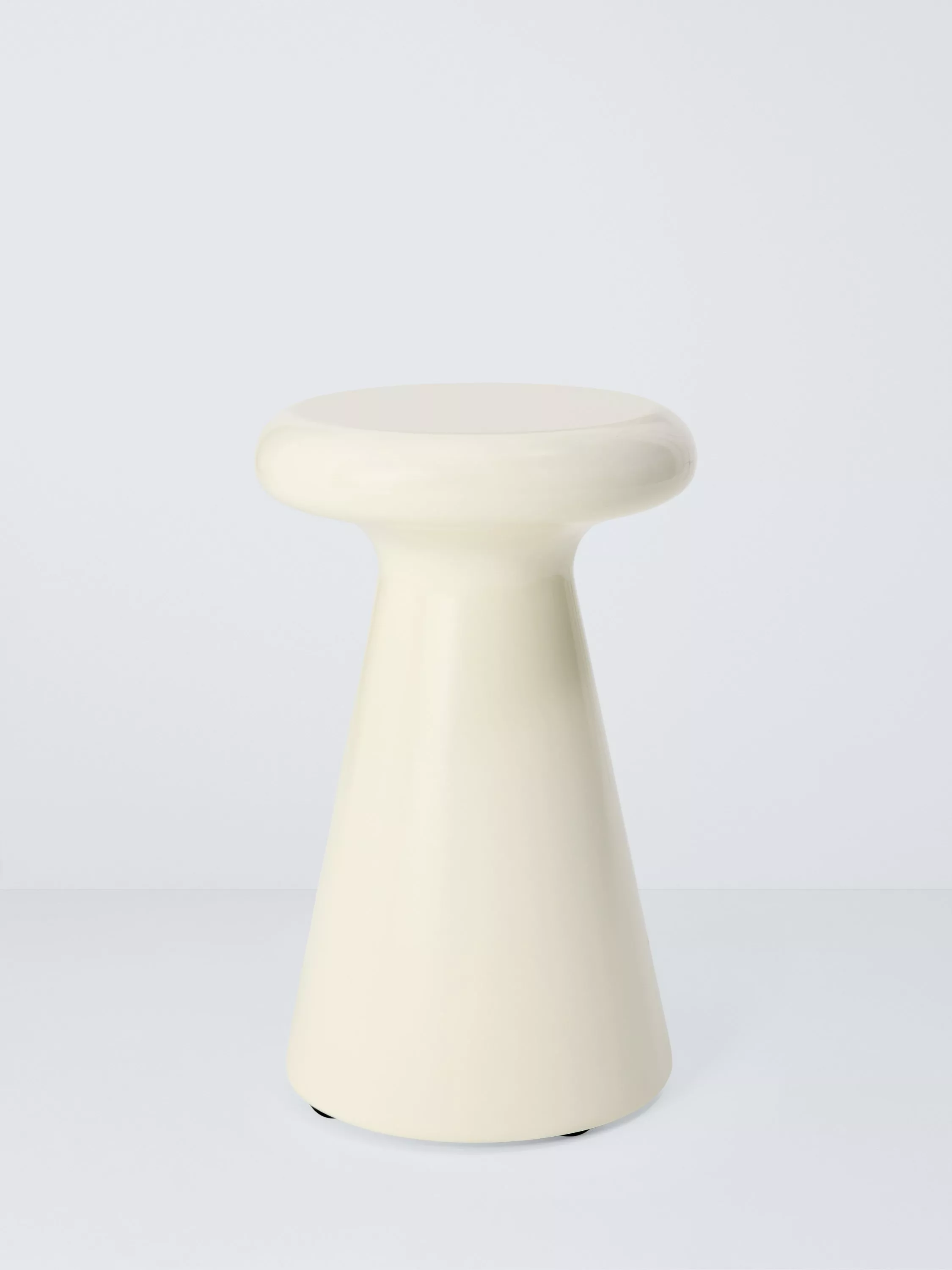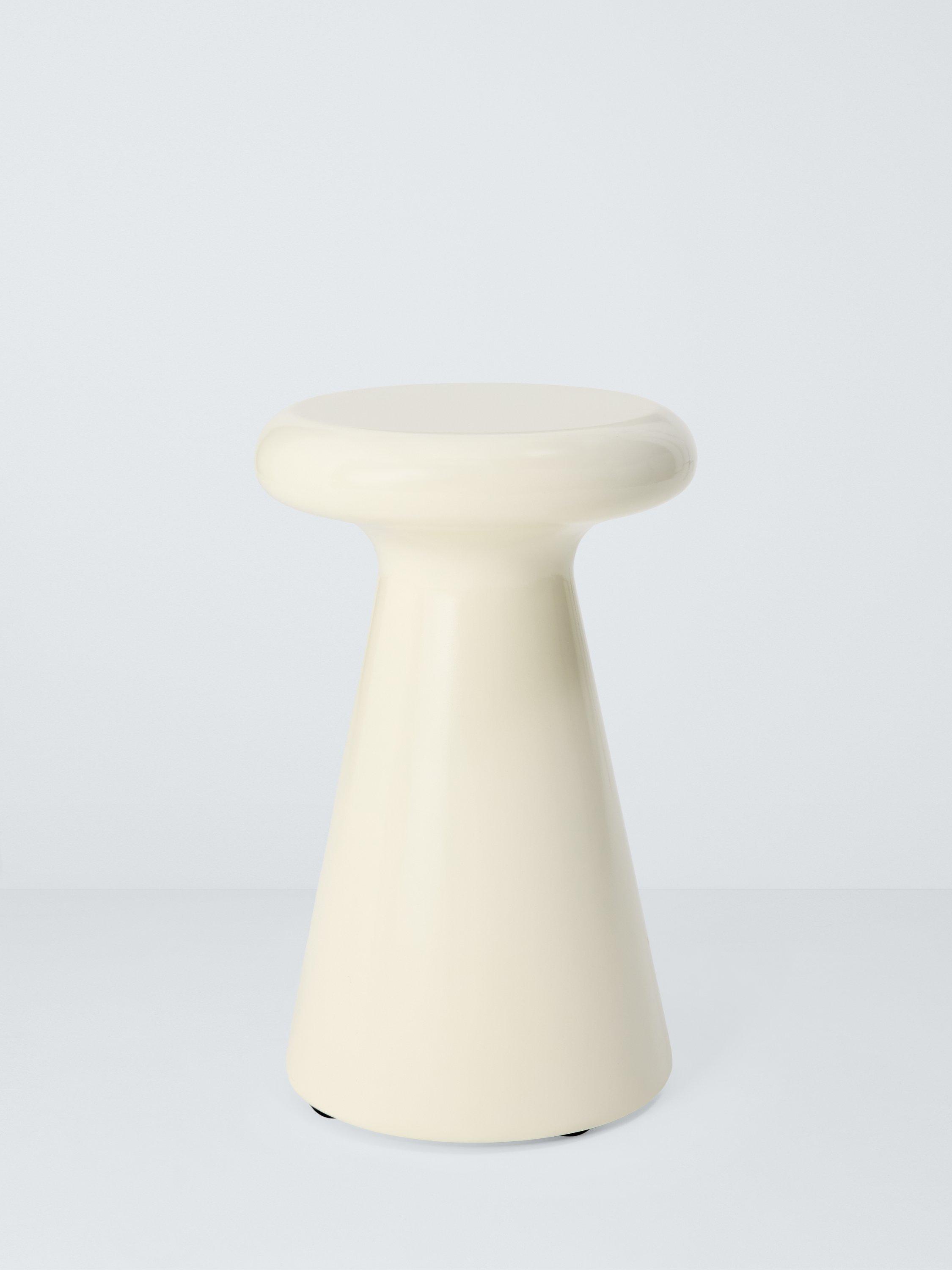 Contemporary garden side table made using concrete-like material to create a fluid shape. A solid-looking design that's relatively light in weight compared to standard concrete and much easier to move. The material is robust, durable and corrosion-resistant, making it ideal for use in the garden.