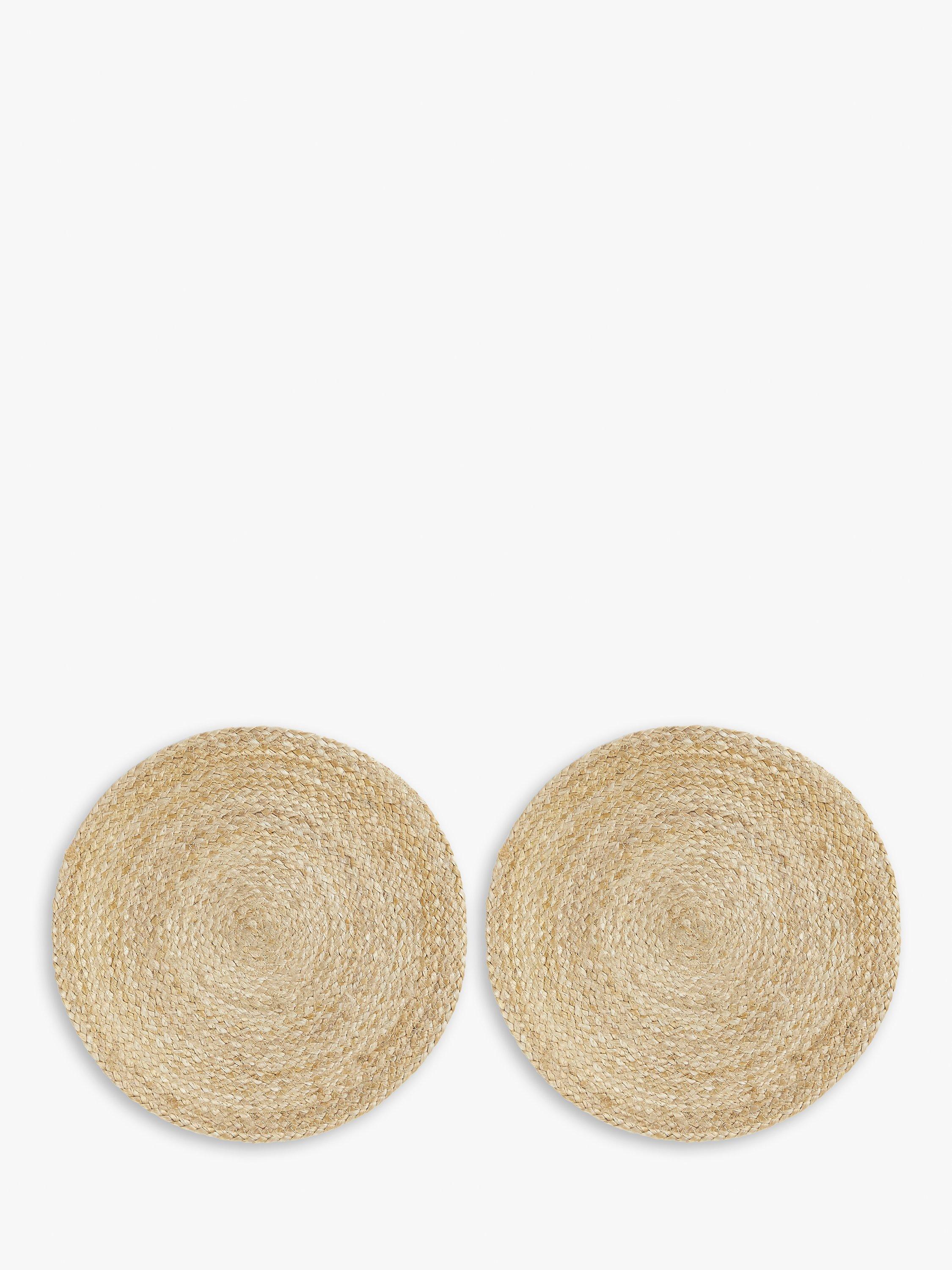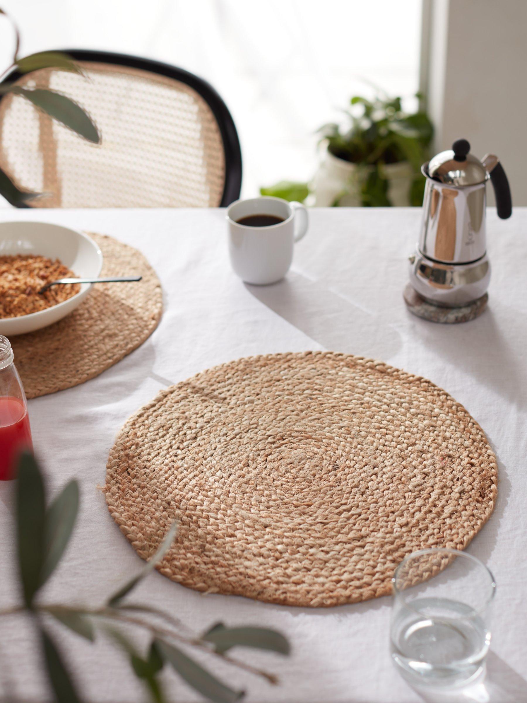 Made of woven jute, this pair of placemats protect your table and add a rustic touch to table settings.