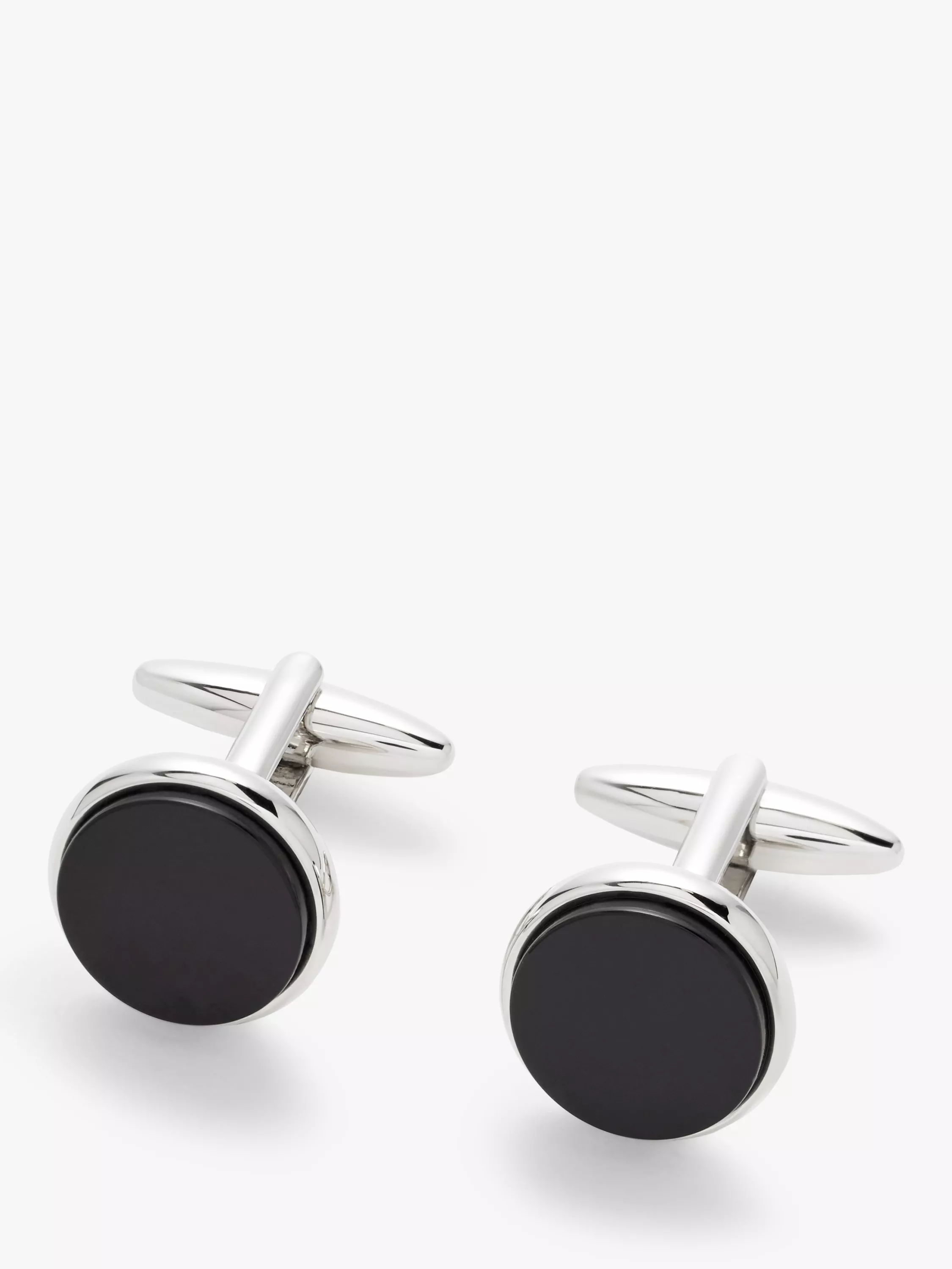 Complete your formal attire with these handsome cufflinks, featuring a beautiful disc centre crafted from the semi-precious stone onyx.