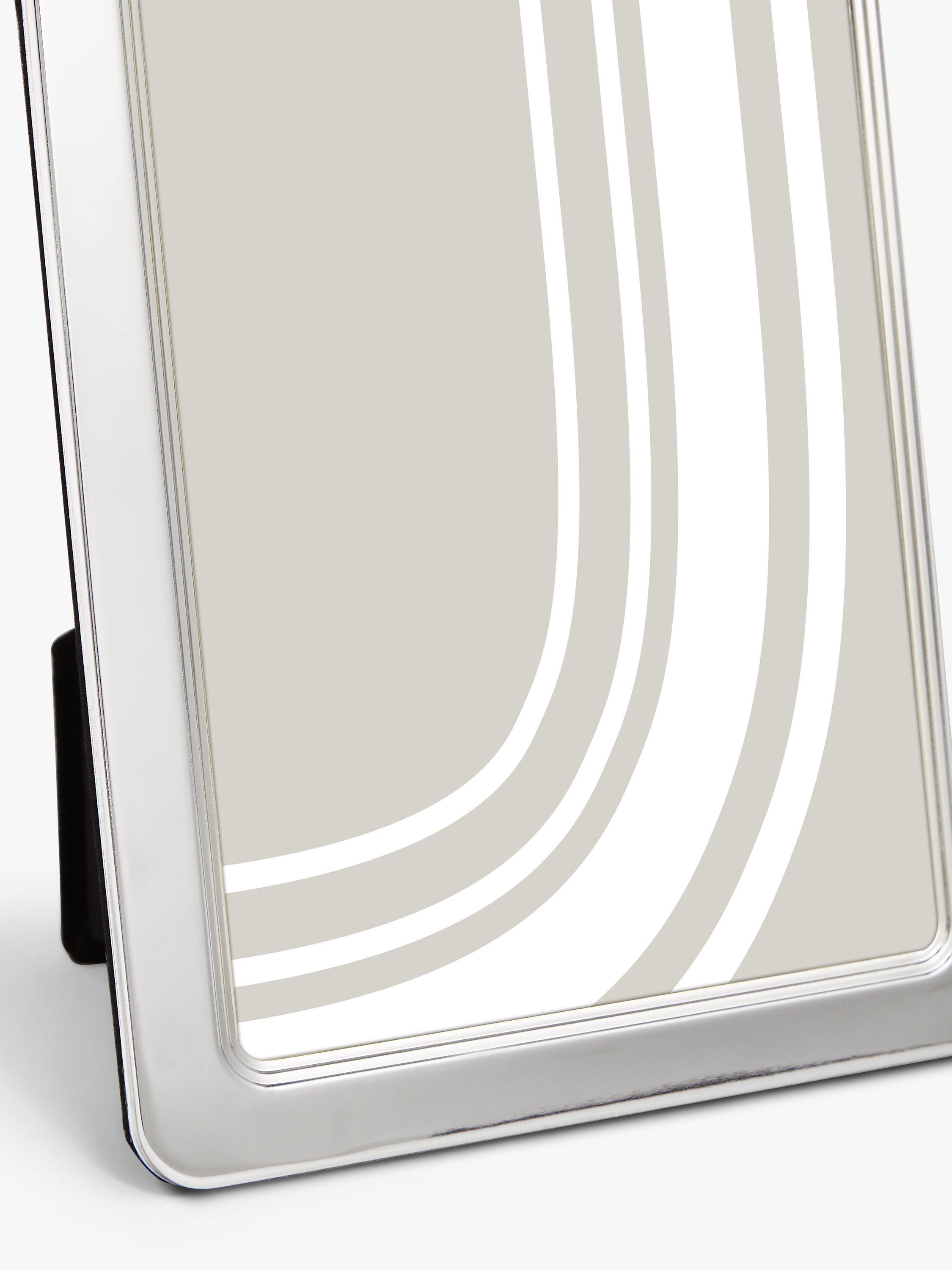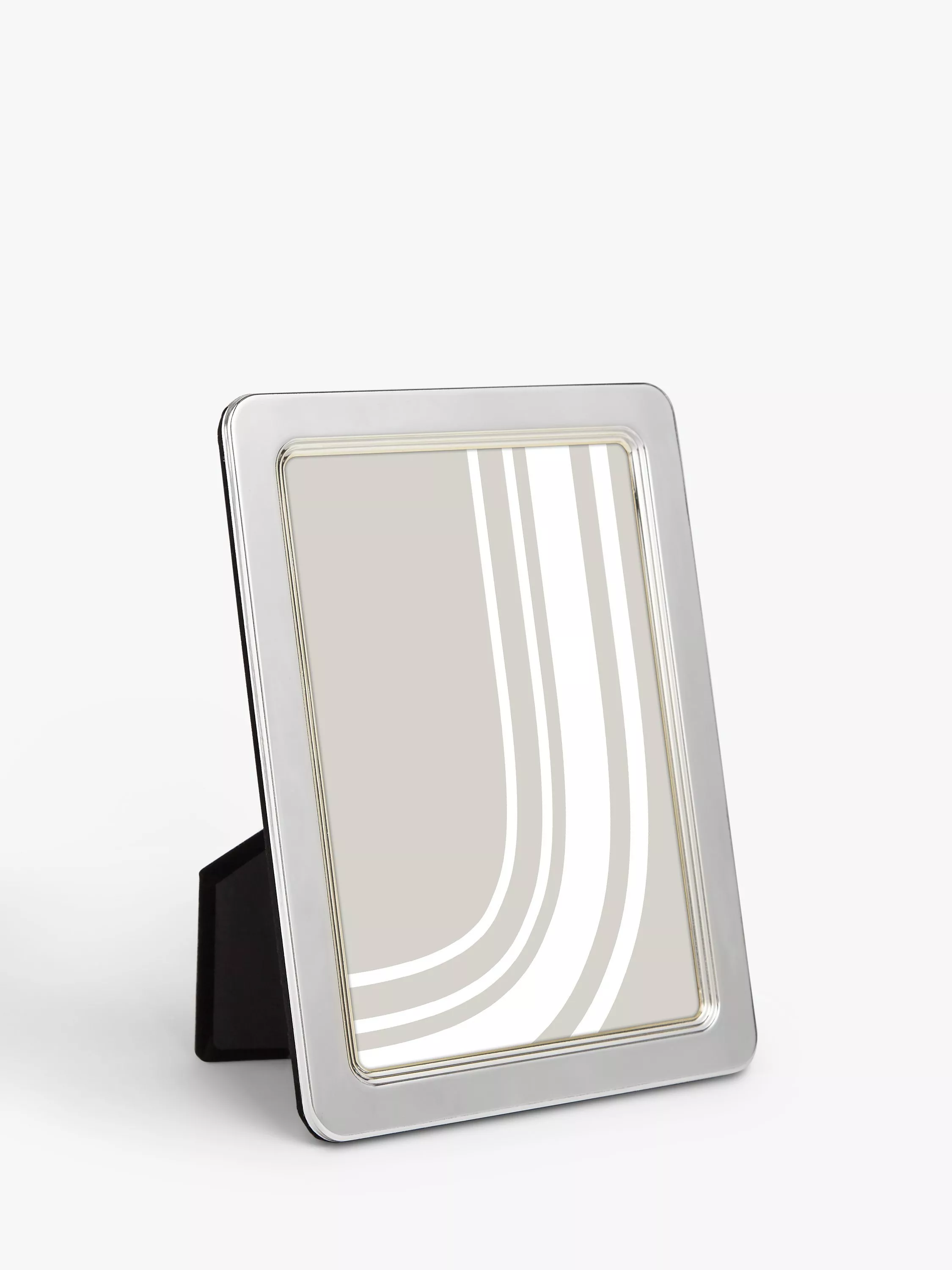 Designed with rounded corners, this metal photo frame can be displayed freestanding, horizontally or vertically. It comes with a flocked backing.