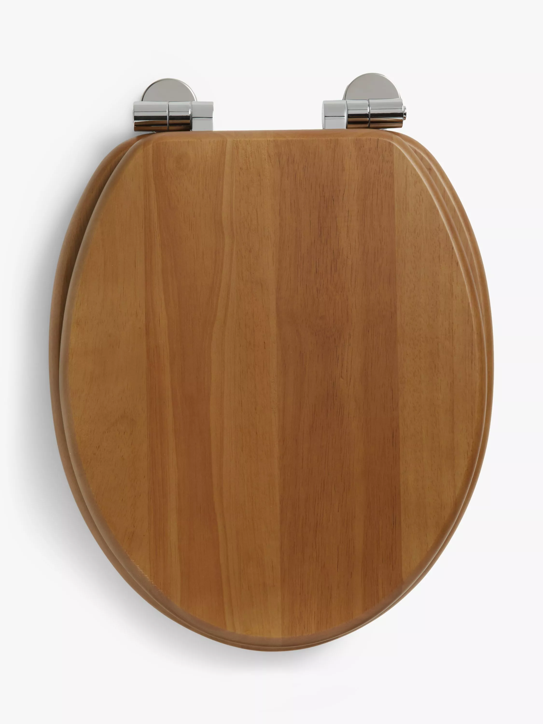 Made from solid rubberwood this toilet seat has a warm natural finish.