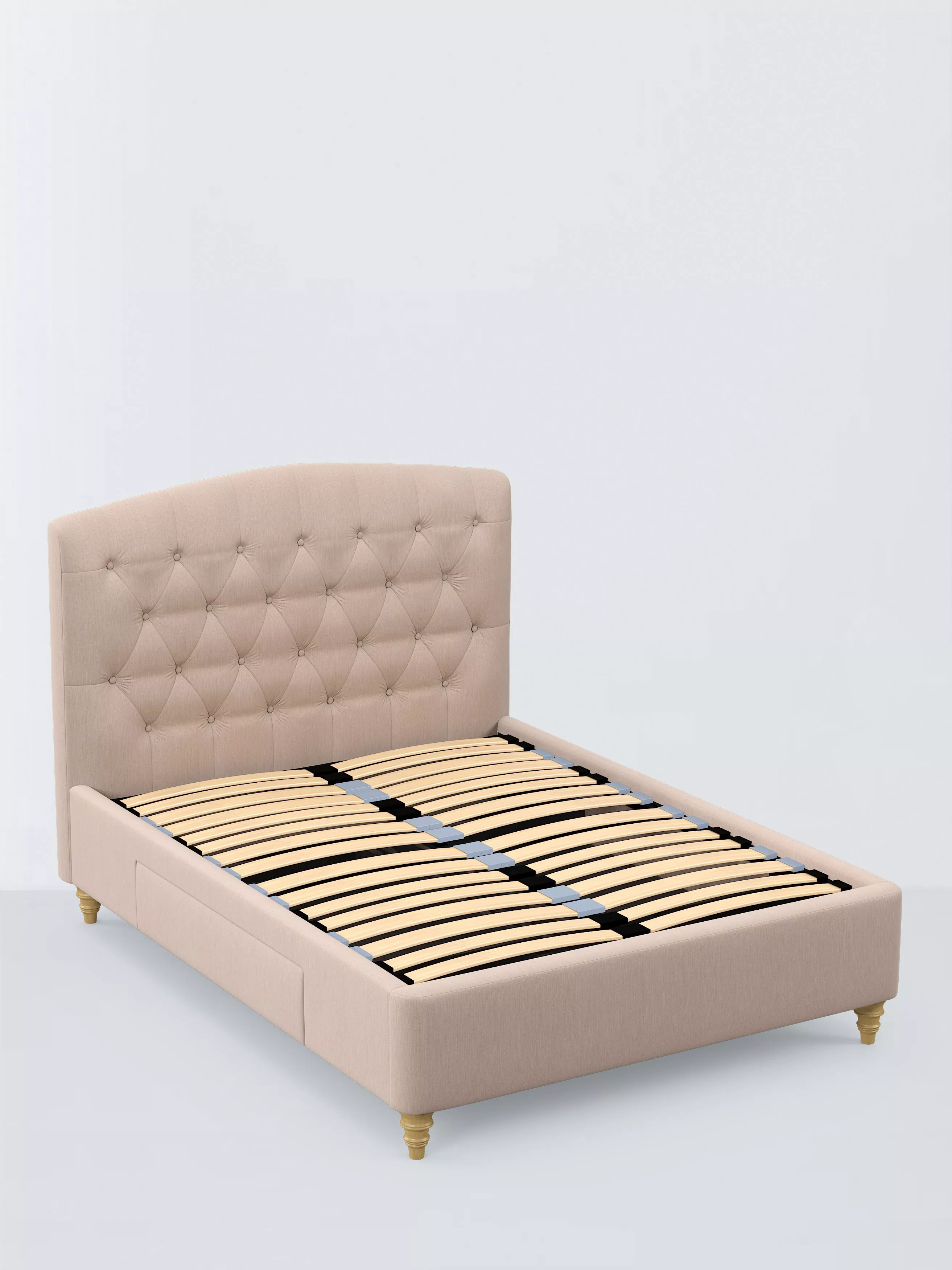 The design of our Rue bed frame is timeless and sophisticated. We've included button detailing to the headboard and two spacious drawers that are ideal for extra storage. We've added sprung Smart Slats to the base which provide enhanced support where you need it most.